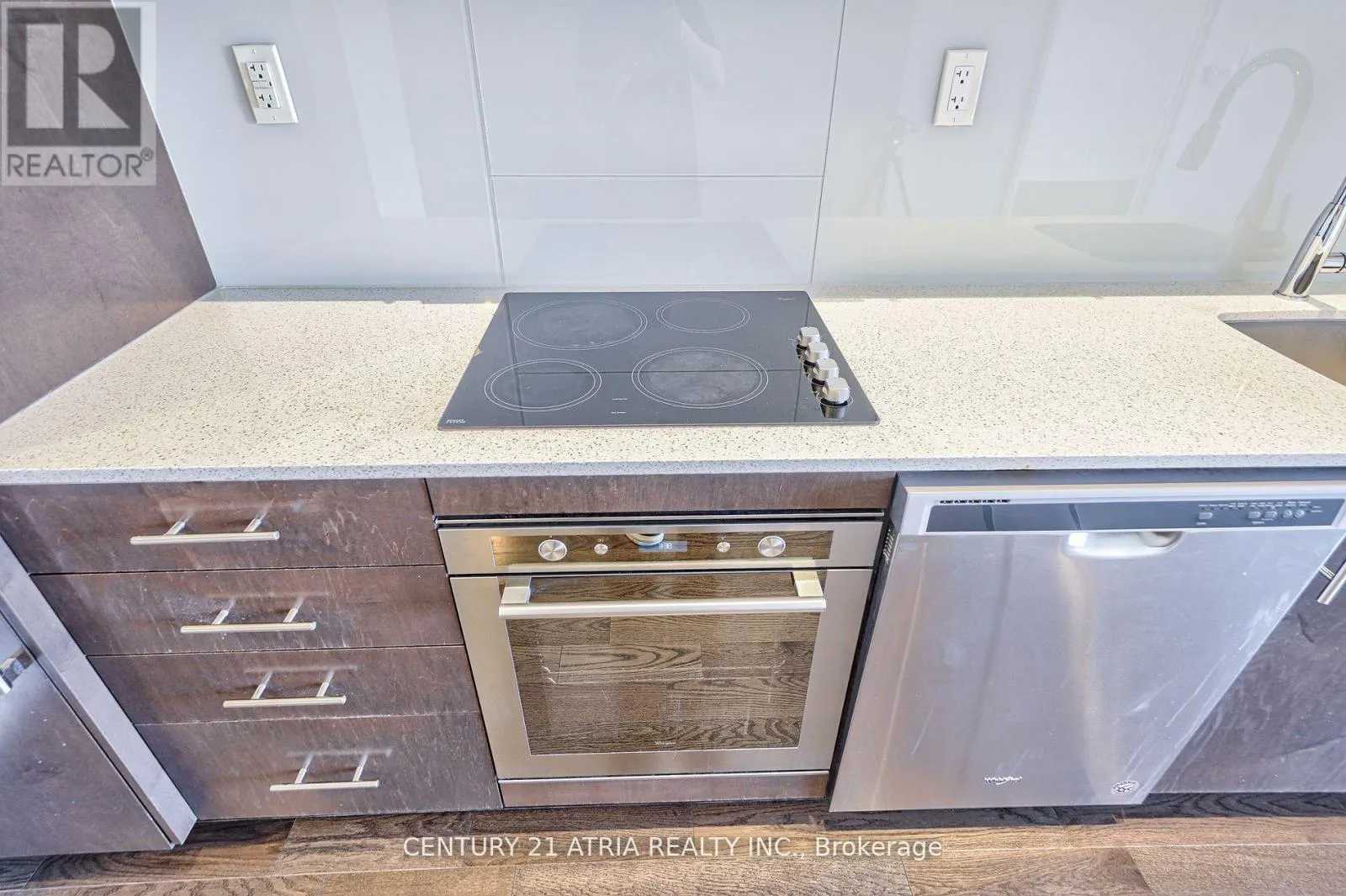 Cross Streets: Adelaide & Sherbourne. ** Directions: as per google map. Welcome to Axiom Condo! This stunning corner suite features one bedroom plus a den, complete with parking and a locker for added convenience. Boasting 10' ceilings and elegant hardwood floors throughout, the residence exudes sophistication and style. The Euro-style kitchen is equipped with quartz countertops and a sleek backsplash, perfect for culinary enthusiasts. The grand living room opens to a spacious balcony, ideal for relaxing or entertaining. The generously sized den offers flexibility as a home office or even a second bedroom. Residents enjoy 24-hour concierge service and unparalleled access to the best of downtown living. Just steps from St. Lawrence Market, TTC, Ryerson University, George Brown College, shopping, Sugar Beach, and a variety of cafes and restaurants, this location combines convenience with vibrant city life. With an exceptional walk score and transit score of 99, this is urban living at its finest. (id:27476)