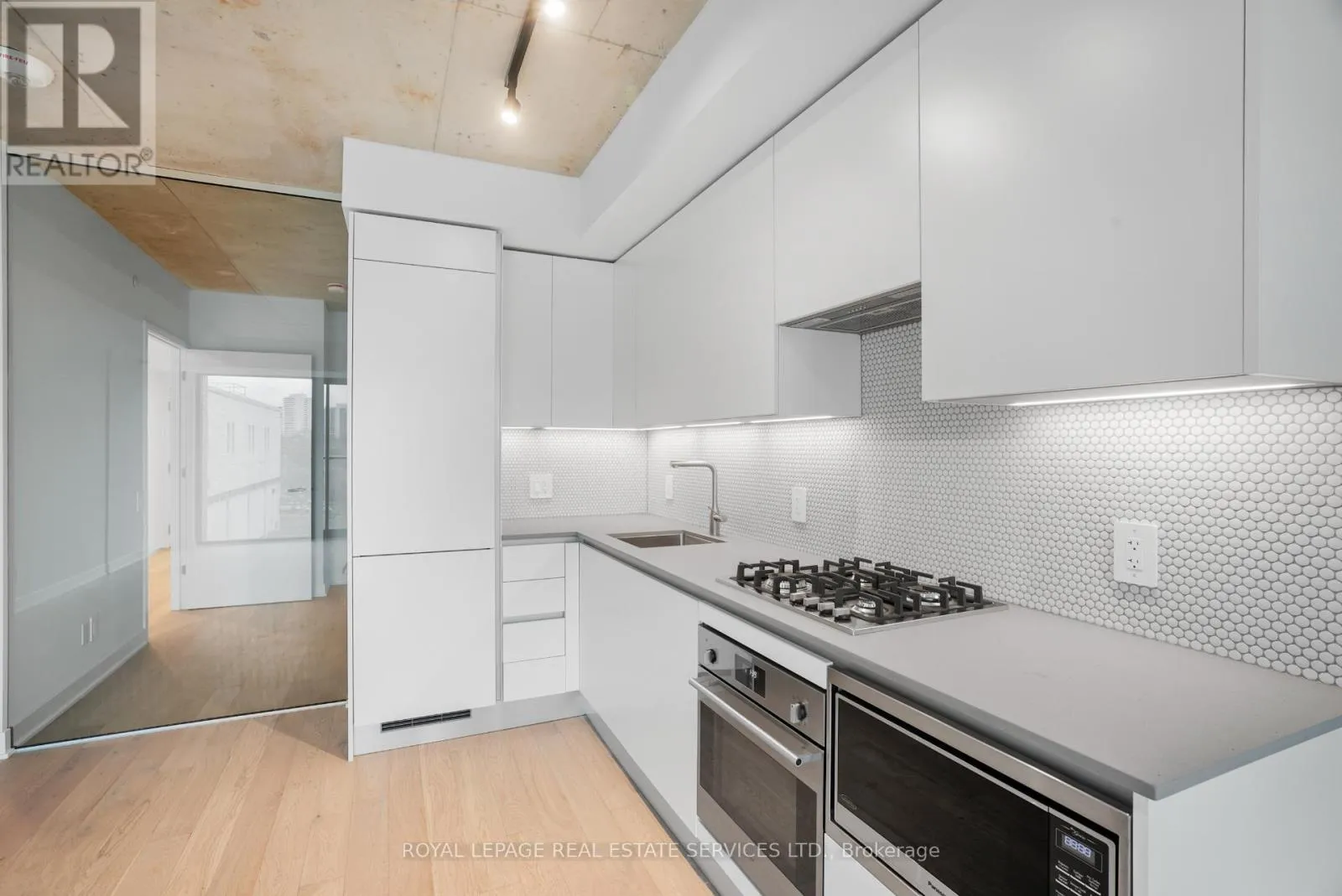Dundas & Dupont Urban living in the heart of the Junction! Step inside Superkul's award winning boutique condominium project - the Junction House. This thoughtfully designed and spacious, almost 700 sqft, one bedroom unit features exposed 9ft ceilings, floor to ceiling windows, contemporary materials and finishes for both entertaining & ease of living. Well appointed modern Scavolini kitchen includes integrated appliances, porcelain tile backsplash & gas cooktop. There's plenty of room for a dining table or island or both. The open concept living room is flooded with natural light - functional and inviting, an area you'll want to spend time in. Enough space to easily set up your home office. Spa-like bathroom includes a double door vanity, porcelain tiles & large soaker tub. Premium white oak hardwood flooring throughout. Steps from the best restaurants, cafes, charming local shops, breweries, farmer's markets, transit (15 min walk to GO Train, UP Express, subway) providing every convenience. The unique building includes a dynamic co-working/ social space, reliable concierge, well-equipped gym, yoga studio, visitor parking, 4000 sqft landscaped rooftop terrace with BBQs, fire pits and stunning city skyline views. One large storage locker included. Available rental parking in the building. Freshly painted. Don't miss the opportunity to own in one of Toronto's most vibrant and sought after neighbourhoods. (id:27476)