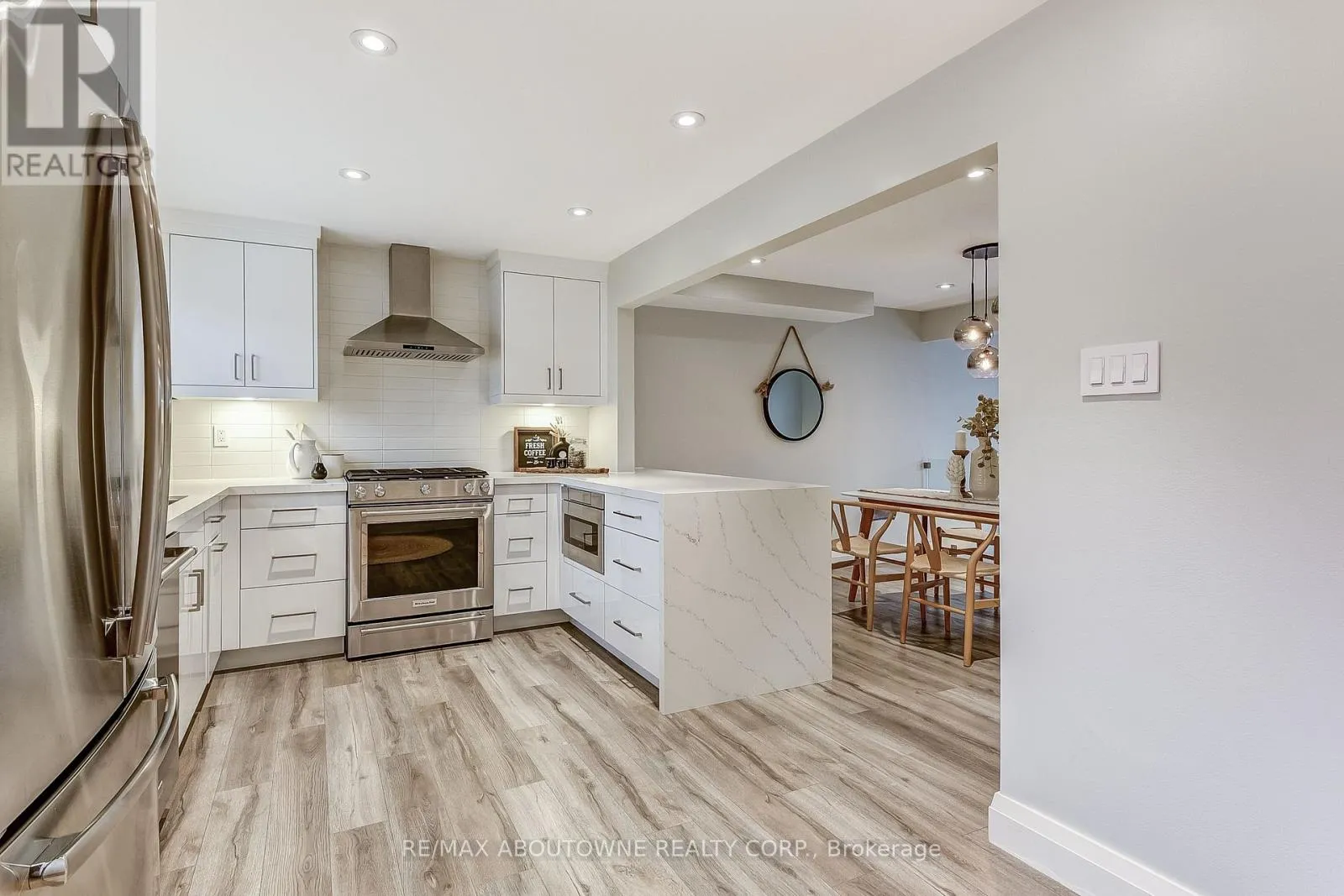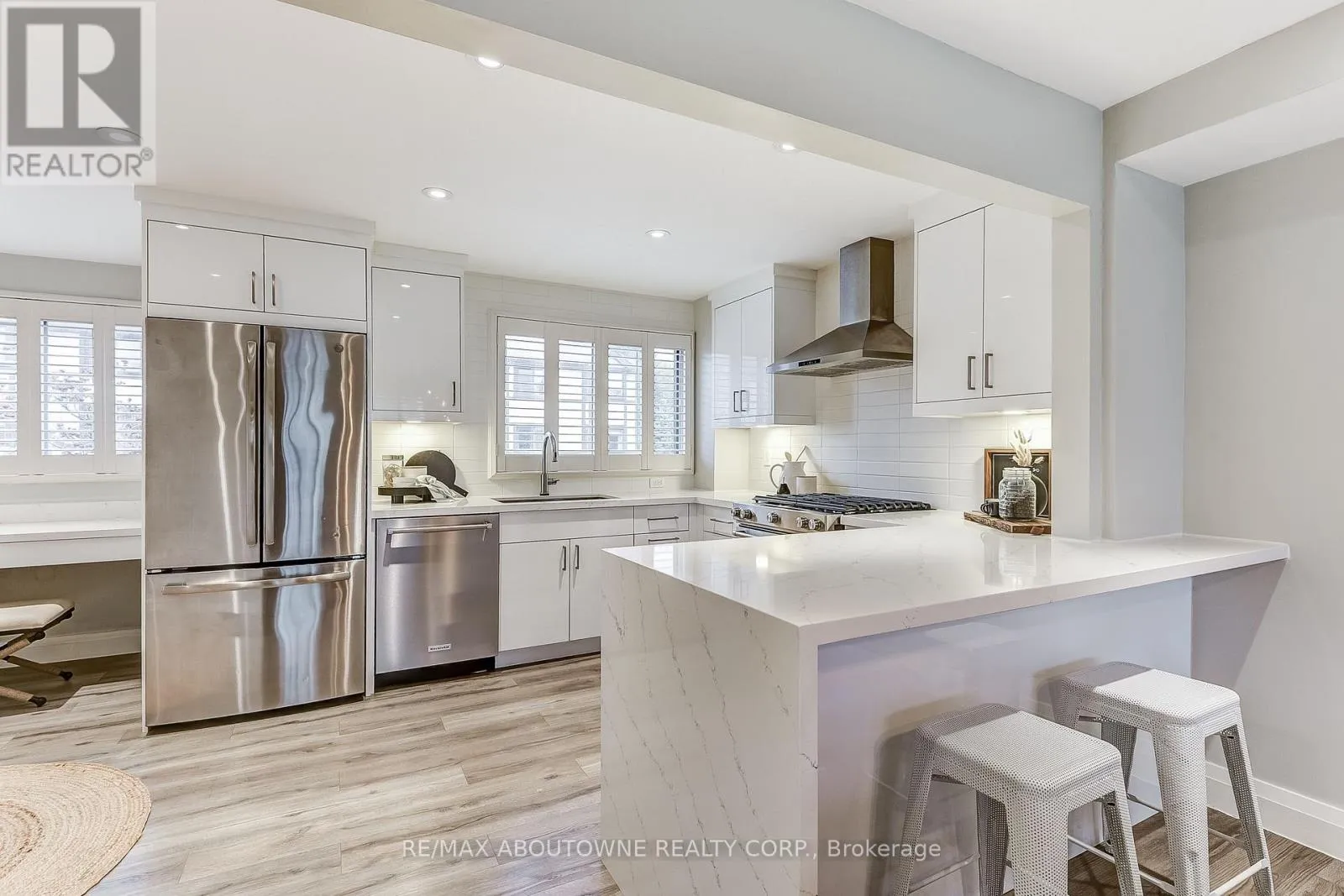 Islington Ave/The Queensway Welcome to Bradbrook Square. This stunning multi-level townhouse has been renovated and offers over 1500 square feet of luxurious finished living space across 5 levels. The functional and newly tiled entryway has a warm and welcoming feel and boasts a new powder room. New wide plank hardwood floors throughout add a modern touch and a seamless flow making this home a perfect place to entertain and unwind alike. The new kitchen is a chefs dream with high end stainless steel appliances, gorgeous countertops with waterfall feature and a wall of pantry cupboards maximizing storage space. The kitchen is open to the dining room which overlooks the spacious family room with vaulted ceilings and double glass sliding doors that open to a private patio that is surrounded by mature trees and fully landscaped making it the perfect outdoor oasis. On the third floor, you'll find the generous primary bedroom which is large enough for a king sized bed and has his and hers built-in closets. 2 other good sized bedrooms and a new 4-piece bathroom finish off the upper level. The lower level has a large rec room, perfect for a home office, kids playroom, or to watch movies. Additional updates include the furnace (2024), hot water tank that is owned (2024) and washer a dryer (2023). Located just steps to the TTC, minutes to the Queensway TTC and Mimico GO station as well as the Gardiner Expressway, commuting is made easy, while you can easily walk to shops, grocery stores, high ranking schools, and parks. Truly a must see! (id:27476)