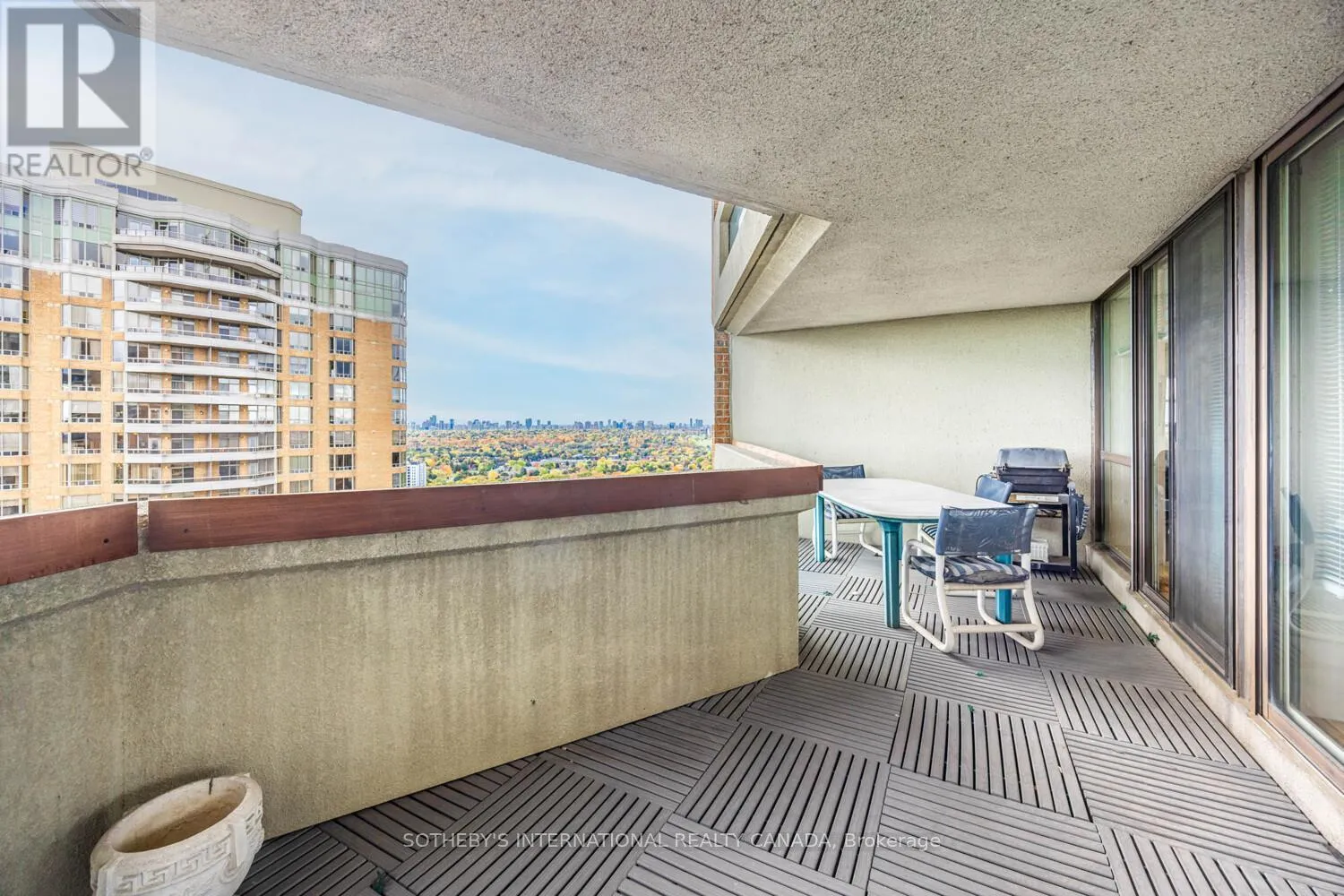 Cross Streets: Don Mills / Finch Avenue. ** Directions: Use GPS. Have you been searching for a residence that blends expansive indoor living with outstanding outdoor space in a full-service luxury building? This approx. 2,725 sq.ft. suite at The Classic offers a refined 3 bedroom plus family room and 3 full bathroom layout with extraordinary scale, natural light and flow. It is enhanced by two impressive balconies - an open 211 sq.ft. west facing terrace off the living and dining area, primary bedroom and second bedroom, and a second 180 sq.ft. outdoor space off the breakfast room and third bedroom.The living and dining rooms span nearly thirty feet with floor to ceiling windows and sweeping west views, ideal for both entertaining and everyday living. The well appointed kitchen features granite counters, generous storage and a breakfast area with direct walk out. A separate family room with French doors provides a private retreat or media lounge.The primary bedroom is a serene escape with walk in closets, vanity, five piece ensuite and balcony access. The second bedroom features its own ensuite, also opening to the main balcony. The third bedroom with private entry enjoys its own ensuite, access to the second balcony, offering excellent flexibility for guests or multi generational living. Ensuite laundry, two owned parking spaces and an out-of-suite locker (approx. 6'10" x 10'7") add convenience. Residents enjoy 24 hour concierge, indoor and outdoor pools, hot tub, saunas, gym, tennis and squash courts, A golf simulator, party room w/billiards, & a library. and visitor parking. Maintenance fees include all utilities such as heat, hydro, water, cable, air conditioning and parking. Located within minutes to TTC, groceries, parks, schools, Fairview Mall, North York General Hospital, Seneca College and Highway 404 and 401, this residence is a rare opportunity to enjoy scale, luxury and convenience in the city. (id:27476)