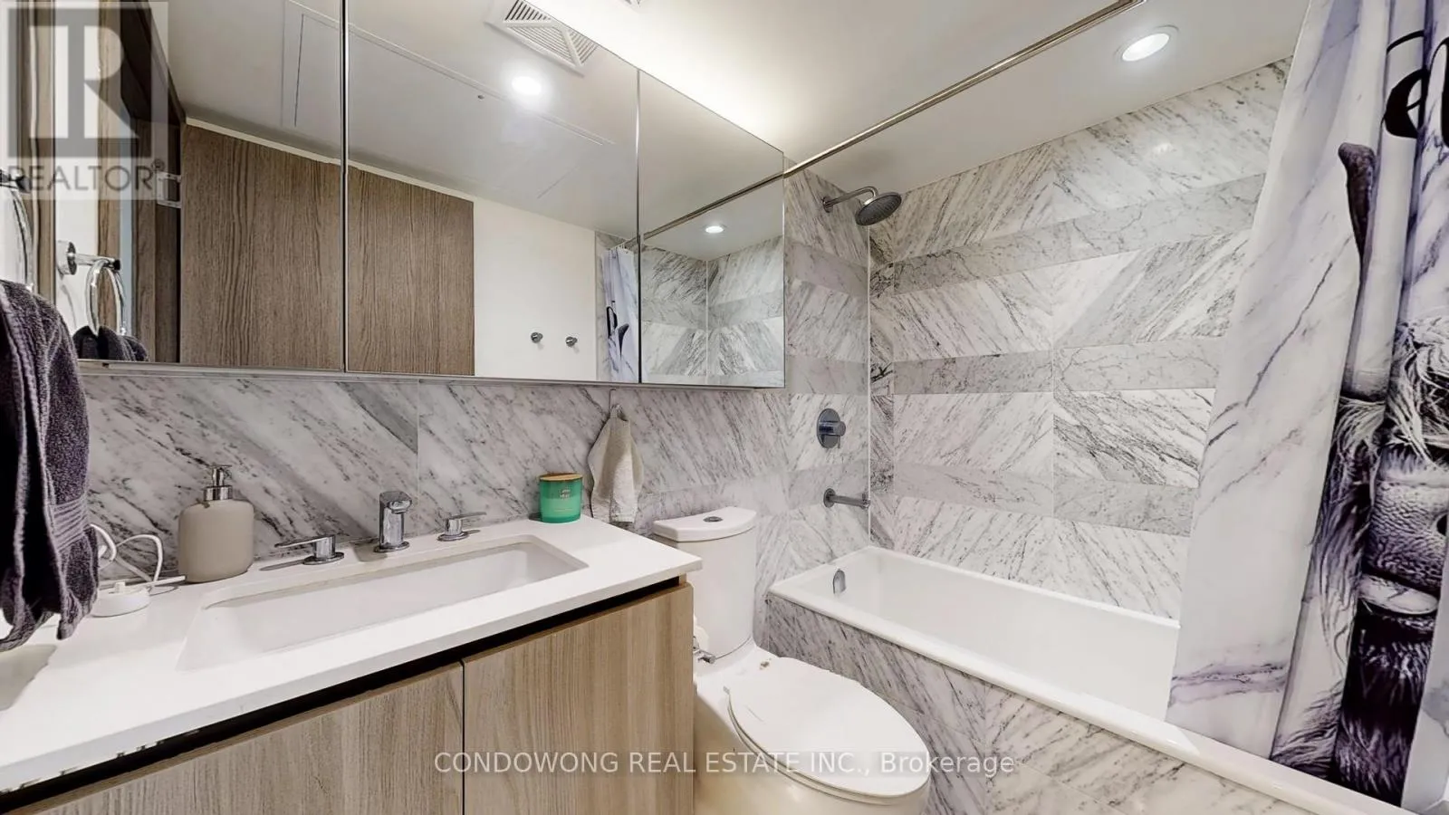 Cross Streets: Bathurst / Lake Shore. ** Directions: Northeast Corner of Bathurst & Lake Shore. Wake up every morning to the most iconic view in the city. From your private balcony, enjoy a full, unobstructed sightline of the CN Tower, a postcard-perfect backdrop that never gets old. This beautifully designed 1+Den suite offers 550 square feet of modern elegance and practical comfort. The den features sleek sliding doors, creating a fully enclosed space perfect for a home office, guest room, or quiet retreat. Inside, natural light floods the home through floor-to-ceiling windows in both the living room and the bedroom. Whether you're sipping coffee at sunrise or watching the city glow at night, this unit offers the perfect perch for every moment. The kitchen is both stylish and functional, featuring a Carrara marble backsplash, quartz countertops, and sleek designer cabinetry with soft-close hardware and under-cabinet lighting. You'll love the full-height pantry, built-in recycling system, and premium integrated appliances that blend seamlessly into the space. It's everything you need to cook, store, and entertain with ease. Live above it all, but stay effortlessly connected to everything you need. With Loblaws, LCBO, Shoppers Drug Mart, and Starbucks right downstairs, daily errands are seamless. Resort-style amenities elevate every day from the state-of-the-art gym and pet spa to co-working spaces, guest suites, outdoor courtyards, and a BBQ-equipped Alfresco dining area perfect for entertaining. Ready to live in the heart of it all? Book your private showing at 17 Bathurst St #911 now! (id:27476)