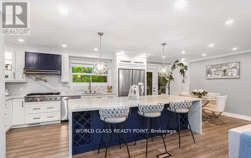 Cross Streets: Royal York & Eglinton. ** Directions: Eglington and Royal York. Welcome to 149 Allanhurst Drive, a beautifully renovated bungalow situated on a generous 48 x 123 ft lot in one of Etobicoke's most family-friendly neighborhoods-Richview. With over $200,000 spent in high-quality renovations, this move-in ready home offers modern comfort, income potential, and fantastic outdoor living. Main Level Features: 3 spacious bedrooms and 2 full bathrooms. Bright, open-concept layout with smooth ceilings and pot lights. Stunning custom kitchen featuring a 10-ft quartz island, gas stove, and premium stainless steel appliances. Walkout from kitchen to a large deck-perfect for entertaining and indoor-outdoor living hardwood flooring and elegant finishes throughout. Features: Separate entrance to fully finished lower level. 2 additional bedrooms, full kitchen, and 3rd full bathroom. Large rec/living area ideal for extended family, guests, or income potential. Outdoor Living: Private backyard with walk-out deck from the kitchen. Mature trees and landscaping for privacy and charm. Recent Upgrades: New roof (2021), new furnace(2022) and New AC 2025). Fully renovated throughout the home. EV charger in the garage and gas outlet for the BBQ on the deck. (id:27476)