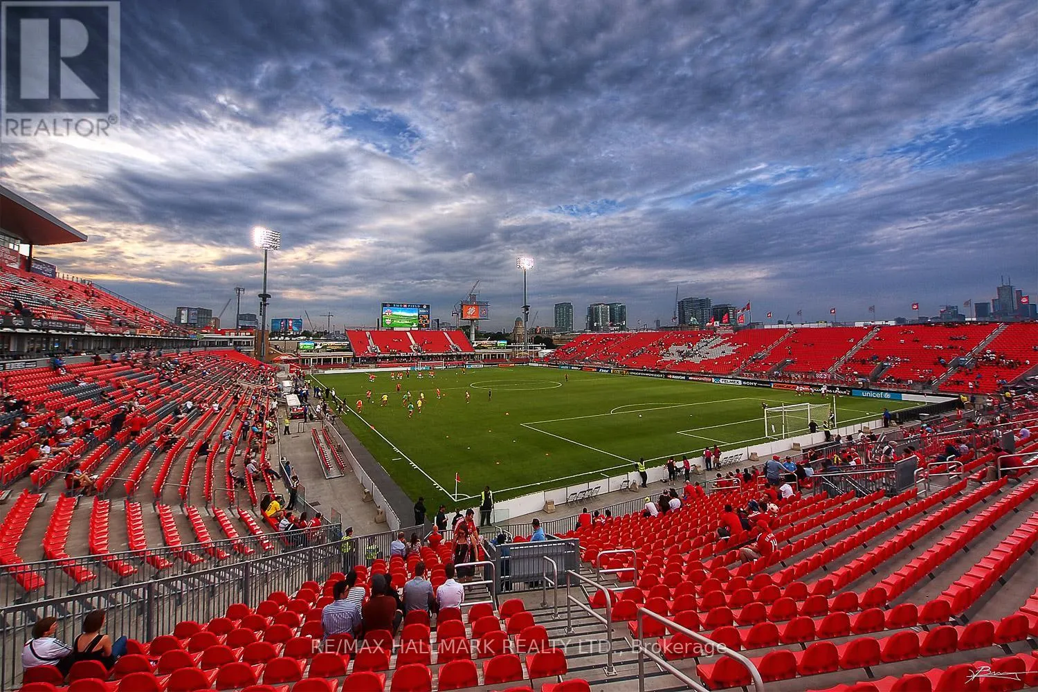 East Liberty St & Strachan Ave Welcome to Liberty Village, one of Toronto's most vibrant and sought-after neighbourhoods. This oversized 1-bedroom condo offers the perfect balance of space, comfort, and lifestyle. From the moment you walk in, you'll be impressed by the bright, open layout and breathtaking lake views that fill the suite with natural light.The generously sized bedroom easily accommodates a king-sized bed and features a large walk-in closet, providing ample storage for all your needs. The spacious living and dining area is ideal for entertaining or simply relaxing at home, while the oversized windows create a seamless connection between your living space and the view beyond.Step outside and experience everything Liberty Village has to offer. Just moments away you'll find BMO Field, the CNE, and Exhibition Place-perfect for sports fans and event-goers. Trendy pubs, cafes, and restaurants line the streets, offering endless dining and nightlife options right at your doorstep, as well as grocery stores and the LCBO. Nature lovers will enjoy the many nearby parks, trails, and waterfront paths, perfect for morning jogs, weekend strolls, or cycling adventures.Convenience is key, with steps to transit and easy access to the Gardiner Expressway and QEW, making your commute effortless whether you're heading downtown or out of the city.Living in Liberty Village is more than just owning a home-it's embracing a lifestyle filled with energy, community, and convenience. (id:27476)