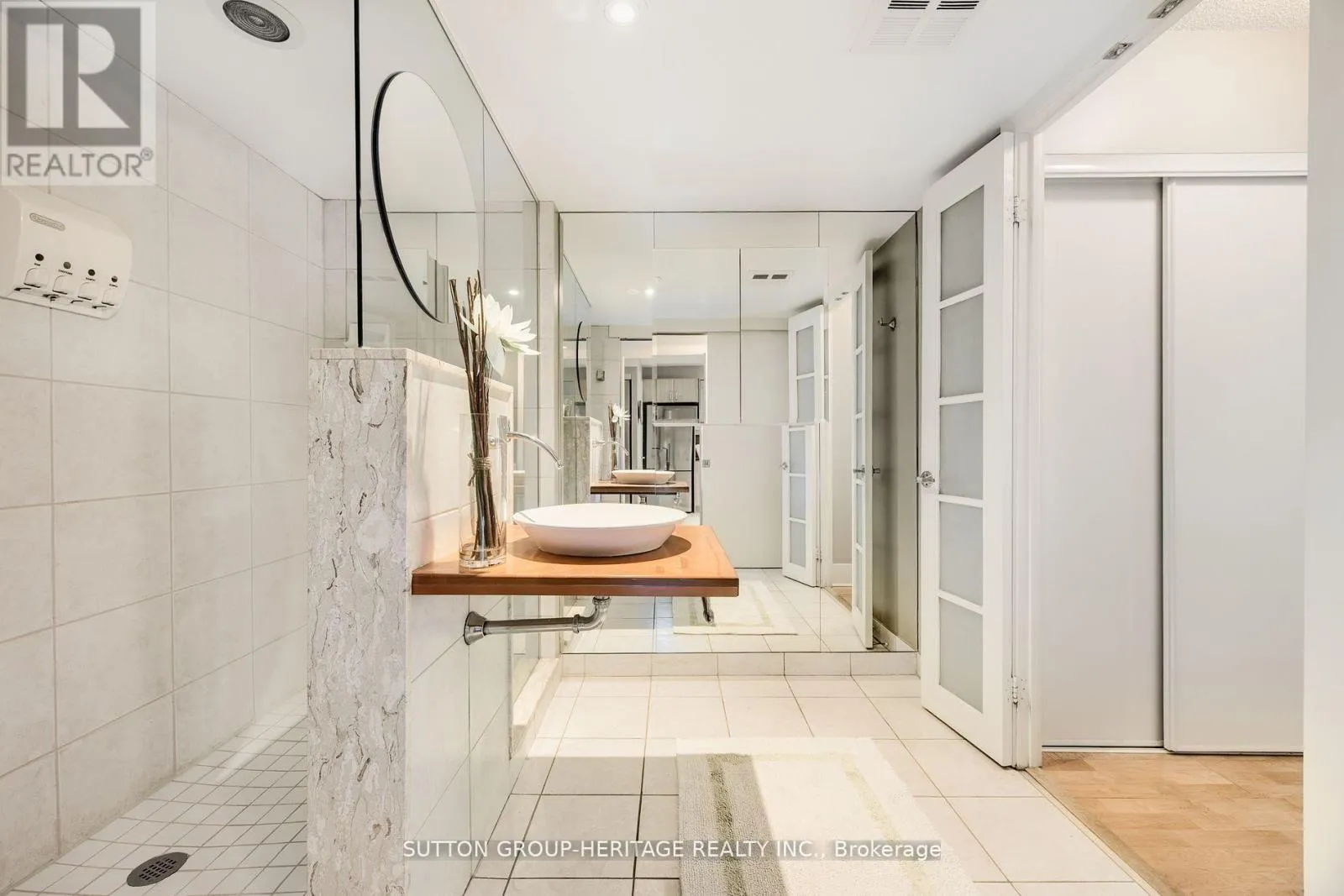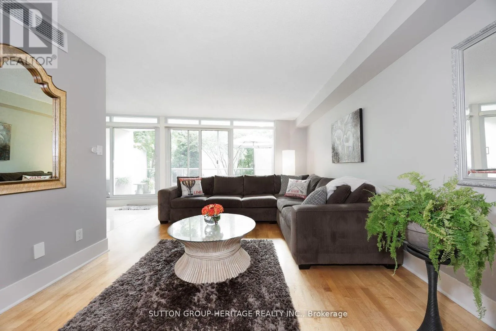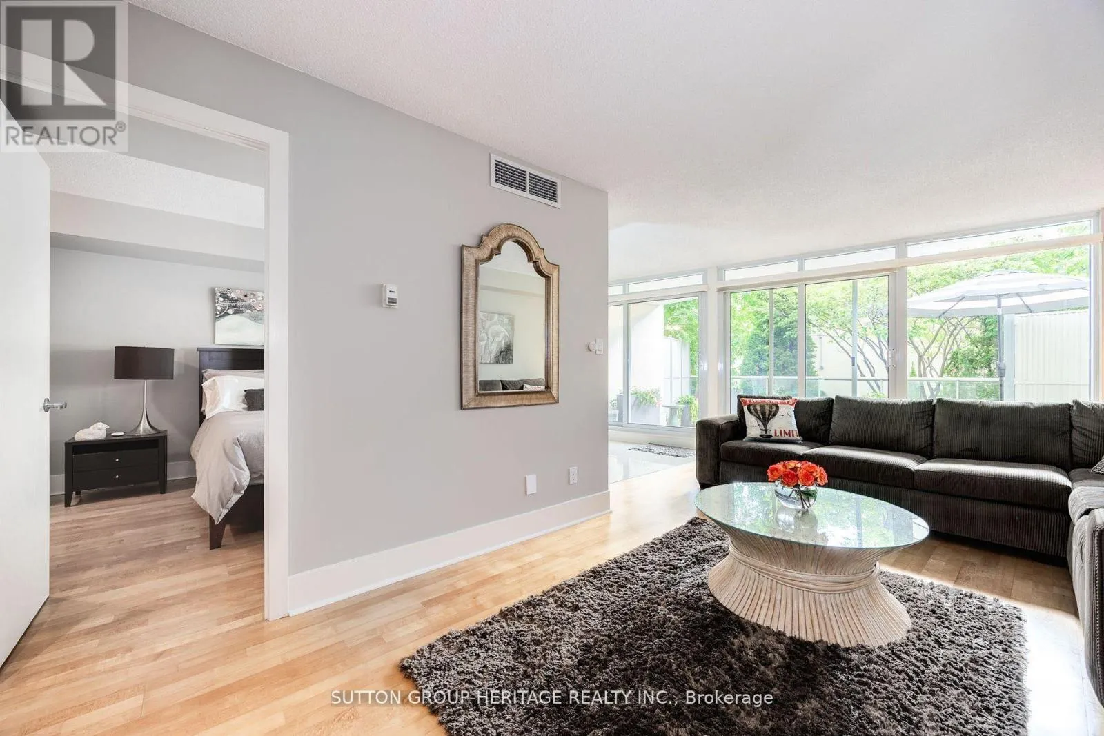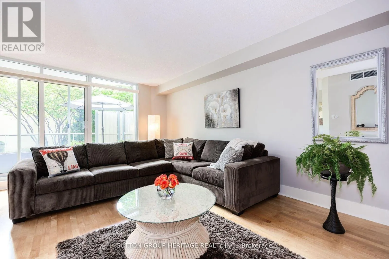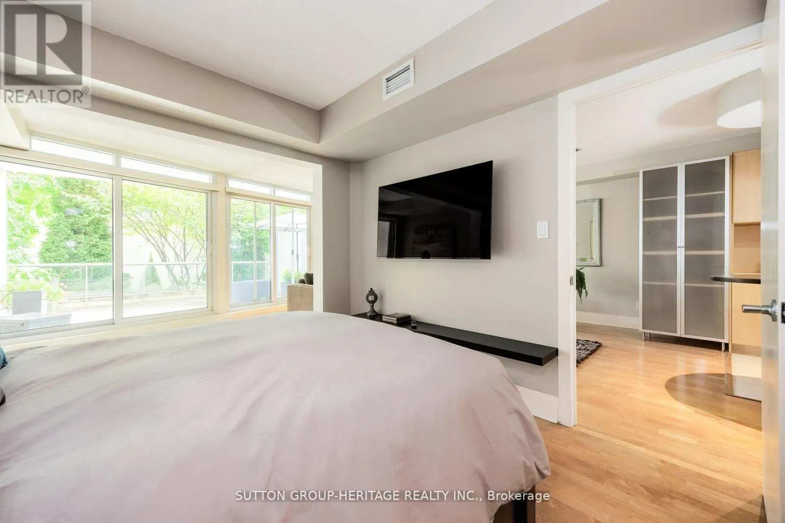 Bathurst St & Queens Quay W ***Rare To Market Ground Floor Unit with HUGE 310sqft Terrace*** Step Into This Beautifully Updated Modern Waterfront Condo Unit In One Of The Most Desirable Buildings On The Queens Quay. Take In The Peaceful Tranquility of your Morning Coffee Outside on Your Huge Garden Terrace. This Bright And Spacious Open Concept One Bedroom Plus Den Boasts 812 Sqft Of Living Space And Has Many Upgrades! The Chef will Love the Open Concept Kitchen Complete with a New Fridge and Stainless Steel Appliances and a Large Pantry Cabinet. Spacious Open Concept Living/Family Room with Floor To Ceiling Windows Featuring Professionally Installed Hunter Douglas Electric Blinds. Enjoy a Spa Like Newly Renovated Luxurious Bath - You Won't Want To Leave! Spacious Bedroom With Walk-In Closet, 2nd Closet And Entrance To Bath. Separate 2 Piece Bath Can Be Closed Off For Guests. Handy Multifunctional Den Space with Walk Out to Terrace. Ensuite Washer & Dryer With Additional Storage. This Unit Includes 1 Parking Space & 1 Locker Located Directly Across the Hallway. Roof Top Terrace W/Bbqs, 24Hr Concierge, Visitor Parking, Guest Suite (only $150 a night!), Party Room, Gym & Sauna. Steps To Transit, Waterfront Trails, Marina, Toronto Music Garden. Close To Billy Bishop Airport, Scotiabank Arena, Rogers Centre, Restaurants & Shopping and More! (id:27476)