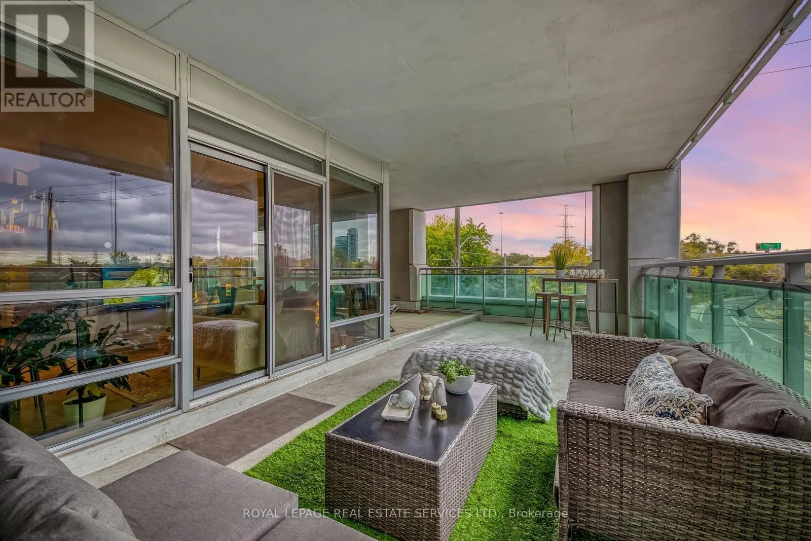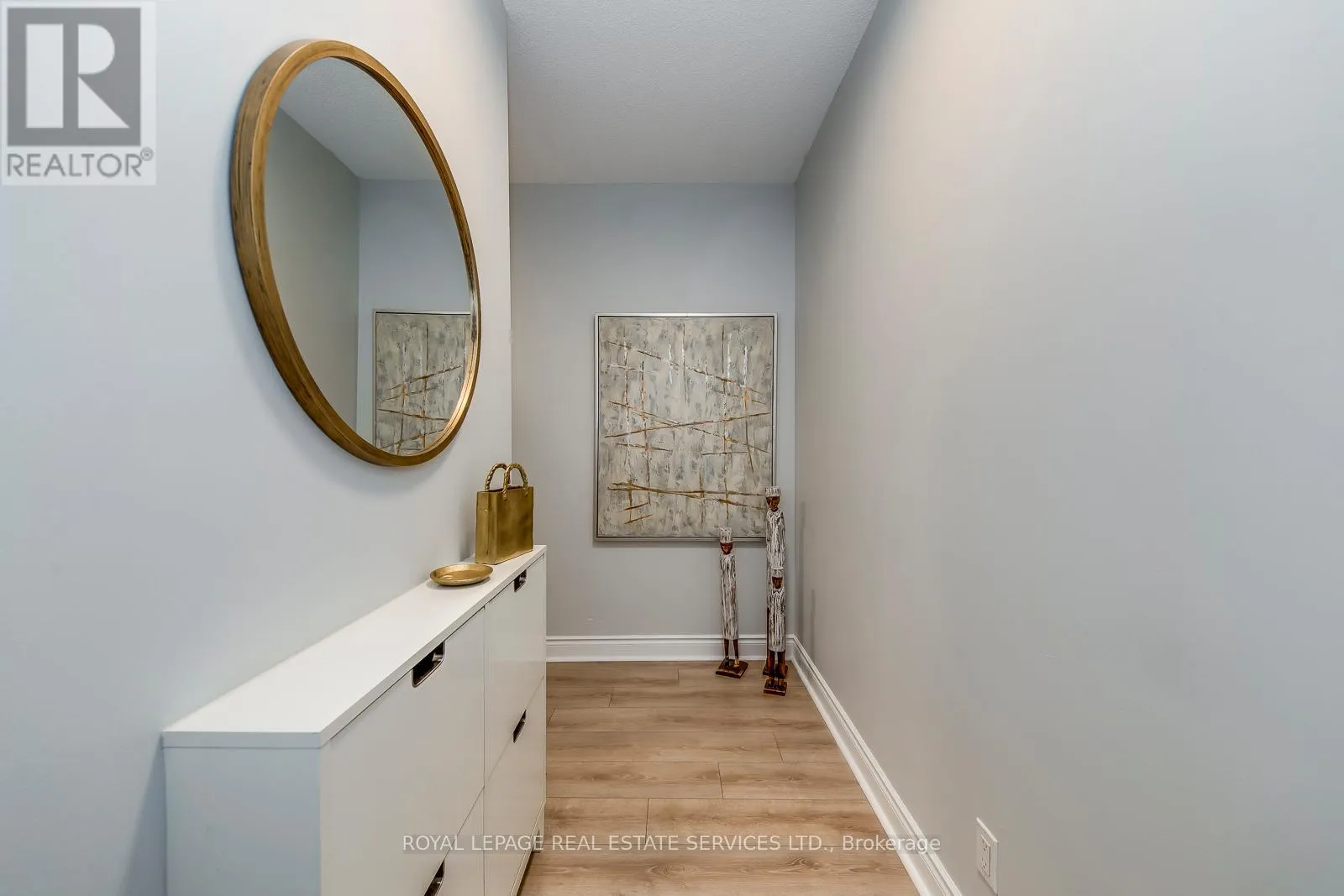 Lake shore Bvd and Brookers Ln Exquisite Corner Unit 'Nautilus' in the heart of Humber Bay ! This beautifully appointed 624 sqft corner unit boasts a massive wrap-around 700 Sqft terrace accessible from both the bedroom and living room, offering serene views of lush trees and the lake from the side. With floor-to-ceiling windows, natural light fills every room, creating a bright and airy atmosphere. Enjoy the luxury of a freshly painted interior and brand-new flooring, ready for you to move in and make it your own. World-class building amenities include: 24-hour concierge, Indoor pool, sauna, and spa areas, Fully equipped fitness centre with cardio, yoga, and aerobic space, Party room, theatre, cyberlounge, and sports lounge with billiards, and an amazing outdoors for your summer parties. Locker and parking includedPerfectly situated for convenience-steps from shopping, dining, and transit this is corner-unit living at its finest with panoramic terrace views and full lifestyle amenities. (id:27476)