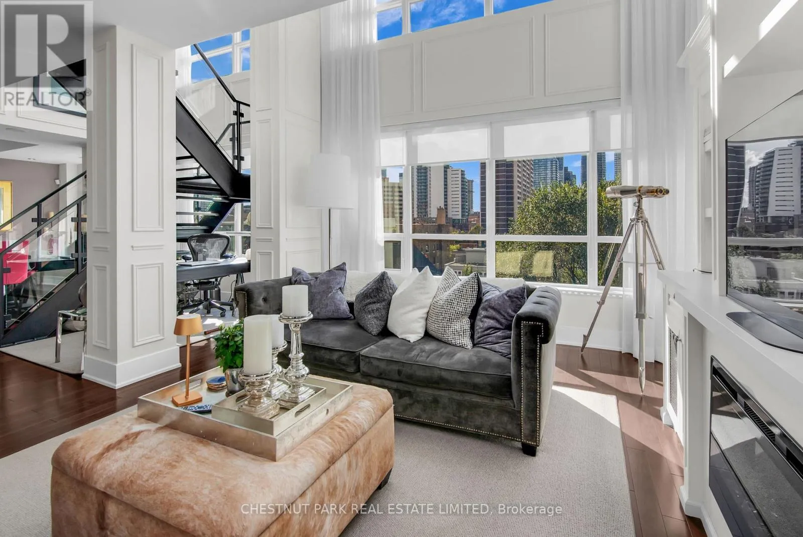 Cross Streets: Wellesley / Sherbourne. ** Directions: Jarvis, east on Wellesley to Homewood. The Verve by Tridel is an award-winning LEED-certified residence that redefines sophisticated urban living in downtown Toronto. This rare two-storey, 2 bedroom loft spans 1,541 sq. ft. of meticulously designed space, complemented by a 75 sq. ft. west-facing terrace where you can enjoy radiant sunsets & effortless outdoor entertaining with a built-in gas connection. Upon entry, the double-height ceilings & striking wall of floor-to-ceiling windows immediately set the tone for a home defined by light, volume, & modern elegance. The open-concept layout seamlessly connects living, dining, & kitchen spaces, creating an inviting atmosphere ideal for both refined entertaining & everyday comfort. The chef-inspired kitchen features quartz countertops, premium stainless steel appliances, a breakfast bar, + a built-in Miele coffee machine designed to elevate each morning ritual. Rich hardwood flooring extends throughout, enhancing the sense of warmth & sophistication. The floating industrial-style staircase ascends to the private upper level, where 2 generously proportioned bedrooms each offer a tranquil retreat. The primary suite impresses with dual walk-in closets + a serene, spa-inspired five-piece ensuite designed for relaxation & restoration. The second bedroom, complete with its own three-piece ensuite, provides the perfect balance of comfort & privacy. Residents of The Verve enjoy an exceptional lifestyle experience, with premium amenities including a resort-style outdoor pool & sun deck, party room, media lounge, billiards area, & a fully equipped fitness centre. Perfectly situated, this address offers the best of downtown living-steps from parks, boutique shopping, fine dining, & convenient transit, with the subway less than ten minutes away. Quick access to major highways ensures seamless connectivity across the city. Suite 617 at 120 Homewood Avenue is a home of presence & polish-where design, comfort, & urban vibrancy meet in perfect harmony. (id:27476)