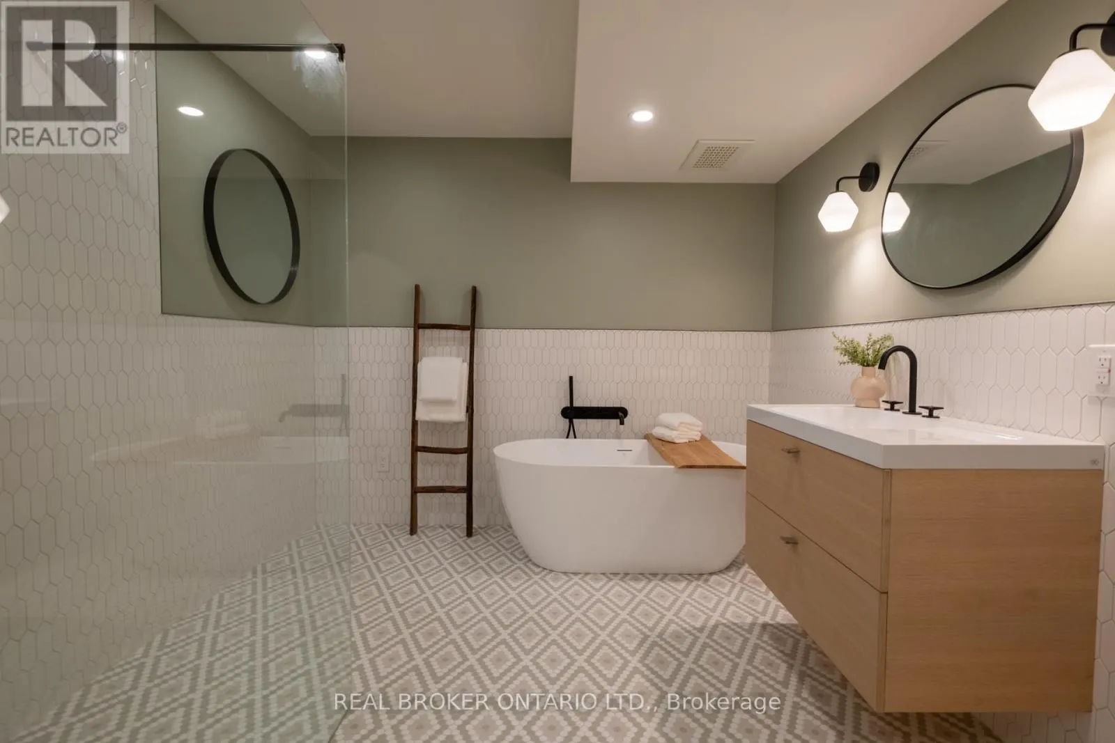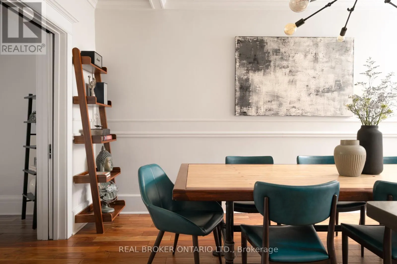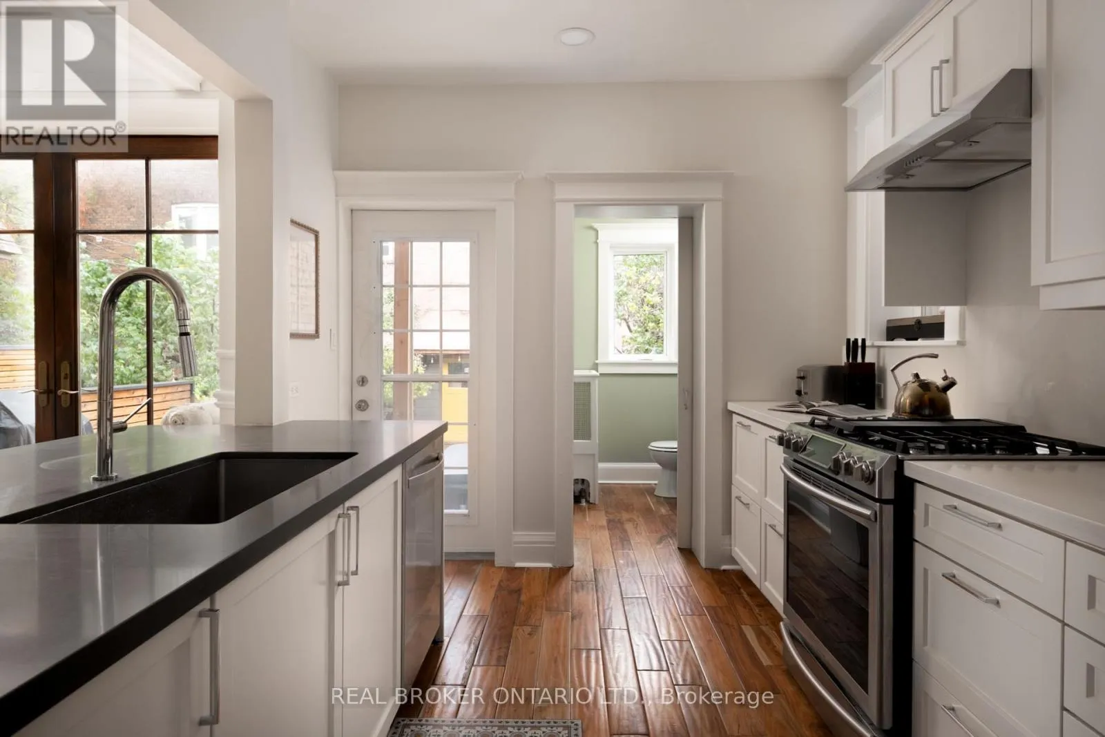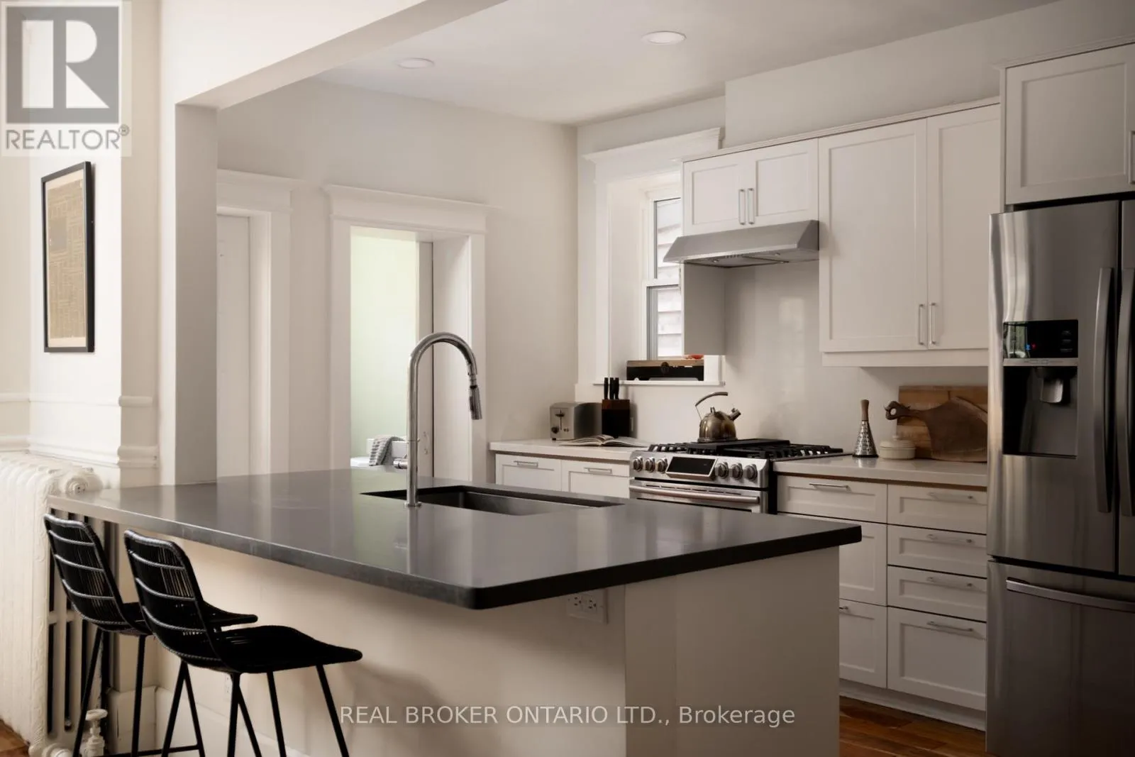 Cross Streets: Roncesvalles and Queen. ** Directions: Off Roncesvalles. An artistic blend of vintage and modern living in the heart of Roncesvalles. A Roncesvalles dream, thoughtfully reimagined for modern living. This 3 storey detached offers five bedrooms and three bathrooms - it's equal parts charm and sophistication.From the moment you step into the large entryway, the original stained glass catches your eye - a nod to the home's history, now beautifully renewed from top to bottom.With warm wood floors, pocket French doors, and a gas fireplace, the main floor balances charm with natural flow into the open dining and kitchen space. Updates include a polished stone breakfast island and large dining area ideal for entertaining and everyday living.Swing open the beautiful oversized glass and wood doors into the private backyard, panelled by cedar fencing around the new deck. The result is an outdoor urban space you'll use each day, year round.Upstairs 3 generous bedrooms and a custom full bath set the tone for family life. On the top floor, 2 additional bedrooms offer flexibility for guests, work, or growing families.Downstairs a fully renovated dug down lower level boasts heated terrazzo floors, a custom white oak floating staircase, 8.5 foot ceilings, a large designer bath with soaker tub, walk in shower and timeless vintage tiles, modern vanity, and oak accent panels. A studio, theatre room, extended family space, or income suite, the possibilities are endless.The wide mature tree lined one way street tributes to Roncesvalles Ave and its parade of boutique shops, cafes, great restaurants, enumerable amenities, and artisanal markets.Calm and quiet in the heart of Roncesvalles, with ample street parking, doesn't get better than this. Come and experience your family's future home and make the dream a reality. (id:27476)