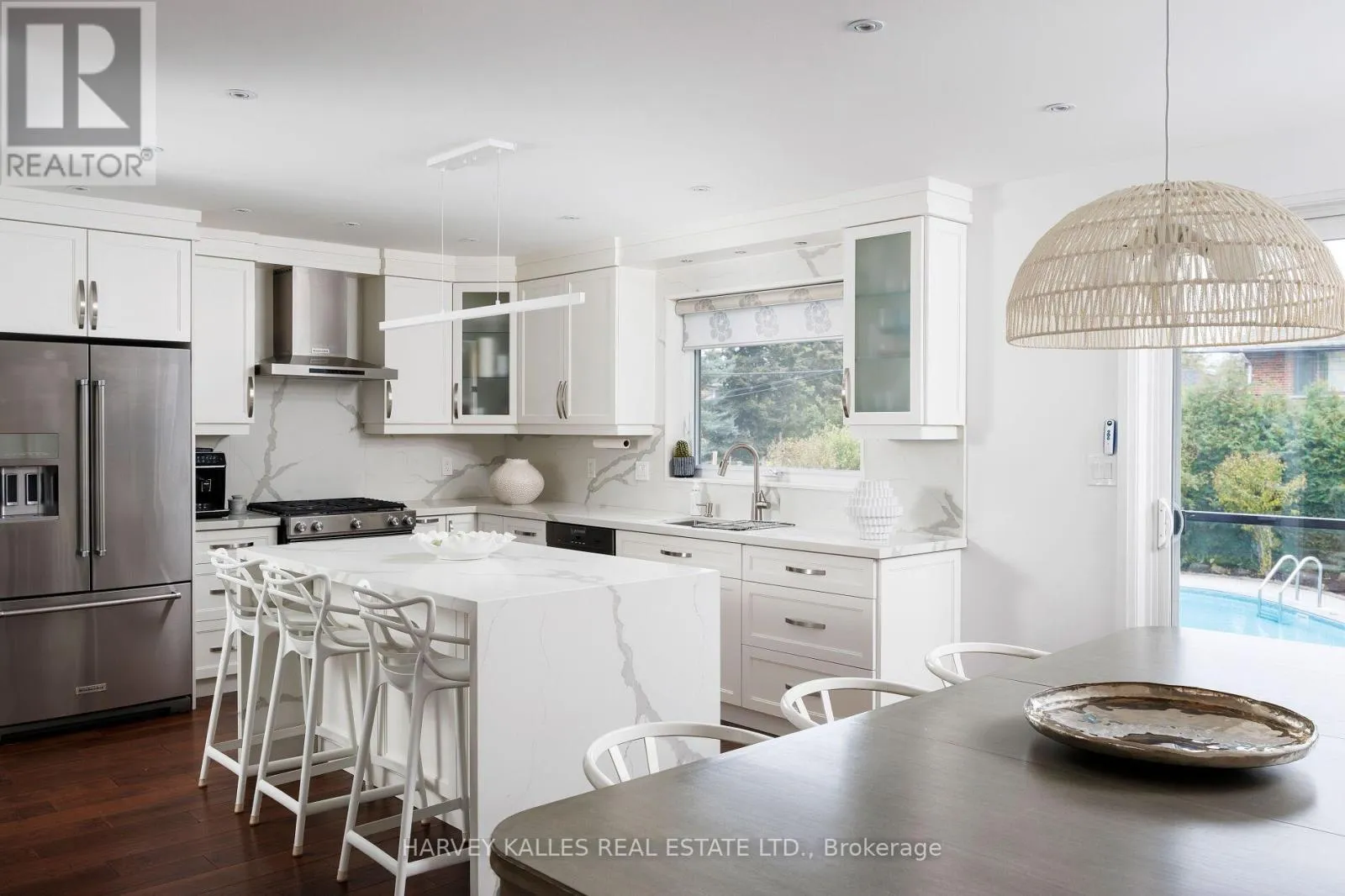 Cross Streets: Royal York/Summitcrest Dr. ** Directions: Eglinton Ave & Royal York Rd. Coming home has never felt so good as rolling up the massive driveway at 73 Summitcrest Drive. Everything is just where it should be in this showstopping 4-level side-split with three bedrooms and three baths located in the highly desirable Royal York Gardens community. A few words may spring to mind when you see the spacious, wide-open floor plan on the main level: "Sophisticated." "Unique." "Breathtaking." To name a few. Then, when you see the walkout to the brand-new deck and lush backyard complete with absolute privacy and an in-ground swimming pool, you will be left absolutely speechless. Inside, all bathrooms have been fully remodelled to provide a spa-like experience without ever leaving the house. The upper level boasts three bedrooms, and the primary features a 3-piece ensuite and a walk-in closet that will inspire even the most dedicated fashionista.The family room is on the main level, with a walkout to the backyard oasis, ensuring a flood of sunshine and fresh air when spending time with your loved ones. Laundry facilities are conveniently located on the lower level, and a double-car garage and driveway provide plenty of parking, a rare plus in Toronto. (id:27476)