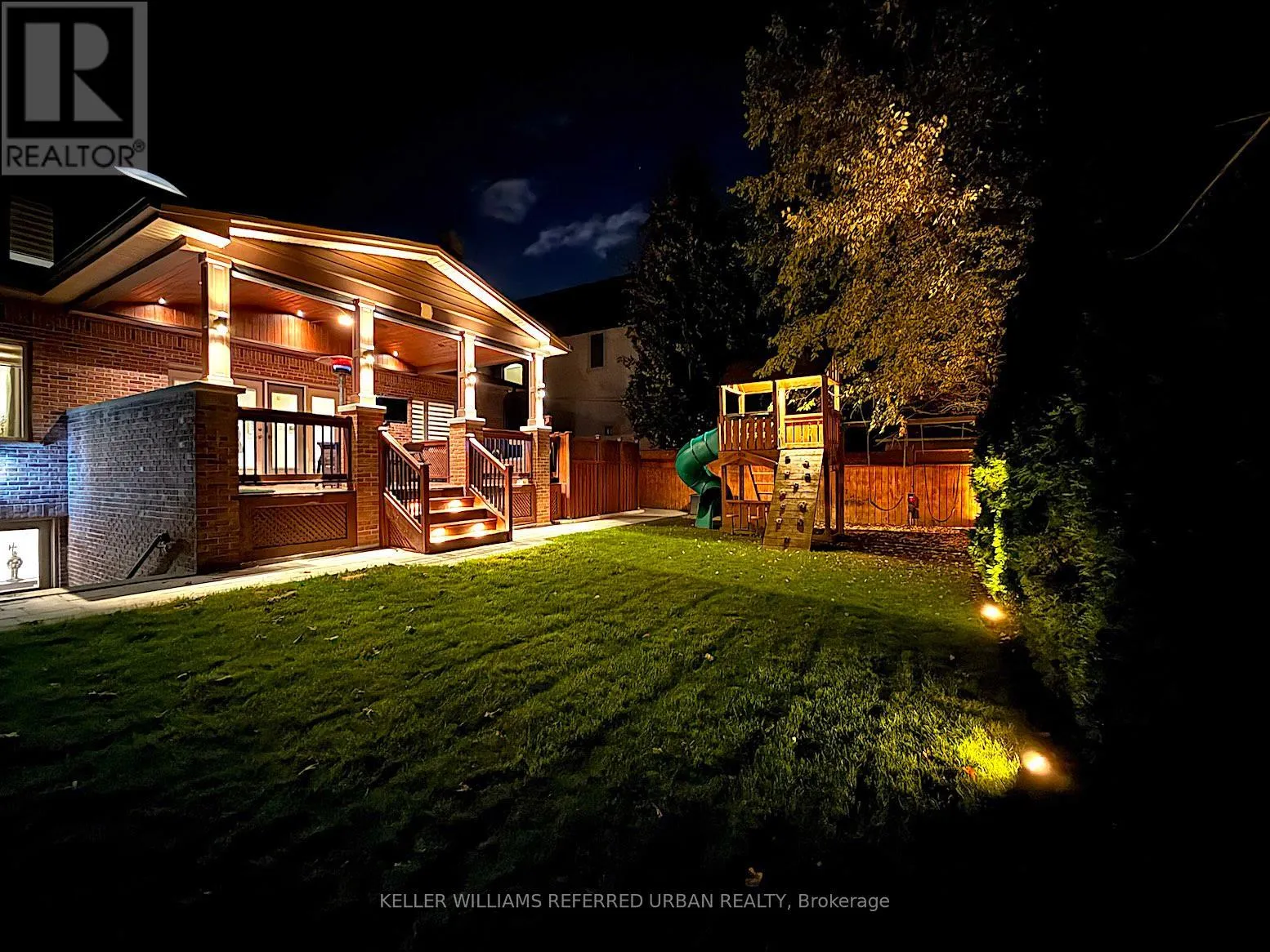 Bloor/Laurel Welcome to 72 Laurel Avenue , where timeless craftsmanship meets modern comfort on one of Etobicoke's most desirable family streets. From the grand foyer with soaring vaulted ceilings, discreet lighting, and handcrafted trims, every detail in this custom-built home radiates warmth and elegance. The main floor flows effortlessly through a family room with custom built-ins and a new gas fireplace, to a sophisticated dining area and a chef-inspired kitchen featuring quartz counters, marble backsplash, 48" Thor gas stove with 2 ovens, 6 burners +flat-top, Bosch built-ins, Samsung appliances, and an oversized Elica hood. Upstairs, the primary suite feels like a private retreat with a custom walk-through closet, spa-inspired ensuite with Jacuzzi, and designer lighting. The fully finished lower level offers a large rec room, a movie theatre with 7.1.1 surround sound & built-ins, a wet bar with quartz counters, and a separate entrance - ideal for a nanny or in-law suite. Step outside to an entertainer's dream: a professionally landscaped backyard with a Napoleon 42" built-in BBQ, outdoor TV, motorized blinds, Sonos speakers, mini heated pool, and illuminated playground. Additional features include custom iron railings, new pot lights throughout, smart security & camera system, and premium walnut hardwood. This is more than a home - it's a statement of taste, comfort, and family living in the heart of Etobicoke, minutes to The Kingsway, top-rated schools, parks, and shops. (id:27476)
