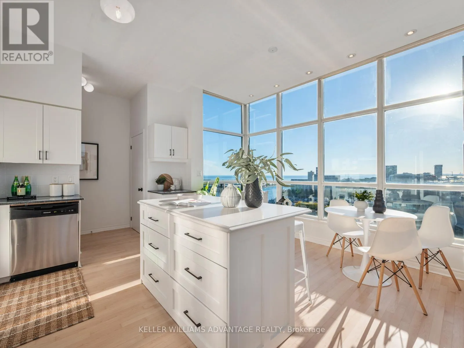 Queens Quay W & Lower Spadina Ave Breath taking views! The kind of condo that as soon as you open the door a whole new world appears and a quiet WOW escapes from your lips. Sparkling Interior in this exquisite Corner Penthouse Suite. You can enjoy unparalleled panoramic views of Lake Ontario, the Marina, Island Airport and Toronto's iconic skyline from every angle. Upon entering, you are greeted by expansive, light-filled spaces highlighted by soaring 10 foot high ceilings and floor-to-ceiling windows framing breathtaking lake vistas. The gorgeous light real hardwood floors recently refinished set the stage for a tranquil home in the sky. The open floor plan seamlessly integrates a cozy breakfast area and quiet reading area boasting serene marina and lake views, with a modern kitchen outfitted with stainless steel appliances and stone counters. Included in the maintenance fee are all utilities, ensuring hassle-free living. Residents of Aqua Condominiums enjoy access to world-class amenities, including recently renovated rooftop sundeck lounge perfect for entertaining against the backdrop of Toronto's horizon, and a state-of-the-art gym that overlooks the water and island airport. Working out has never been so inviting . Additional features include dedicated parking, 24-hour concierge service, guest parking, and on-site property management, offers unparalleled convenience and security. Embrace this rare opportunity to own a corner penthouse unit in Aqua Condominiums, where luxury meets lifestyle in Toronto's vibrant waterfront community. Experience urban sophistication in one of the city's most coveted locations. Extraordinary property steps to Rogers Center, CN tower, restaurants, Toronto Island Airport, and all the Toronto Waterfront has to offer. You may never want to leave. (id:27476)