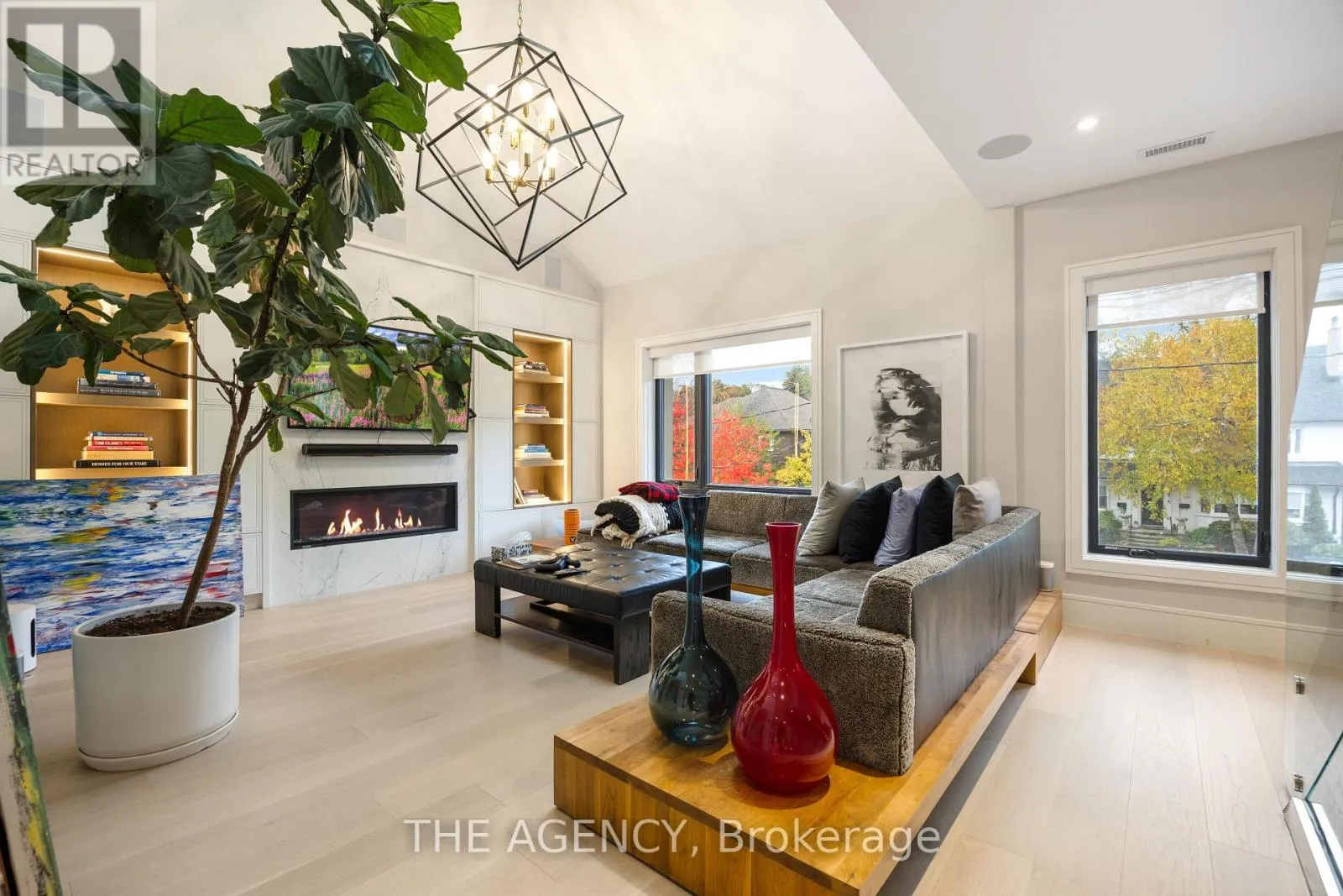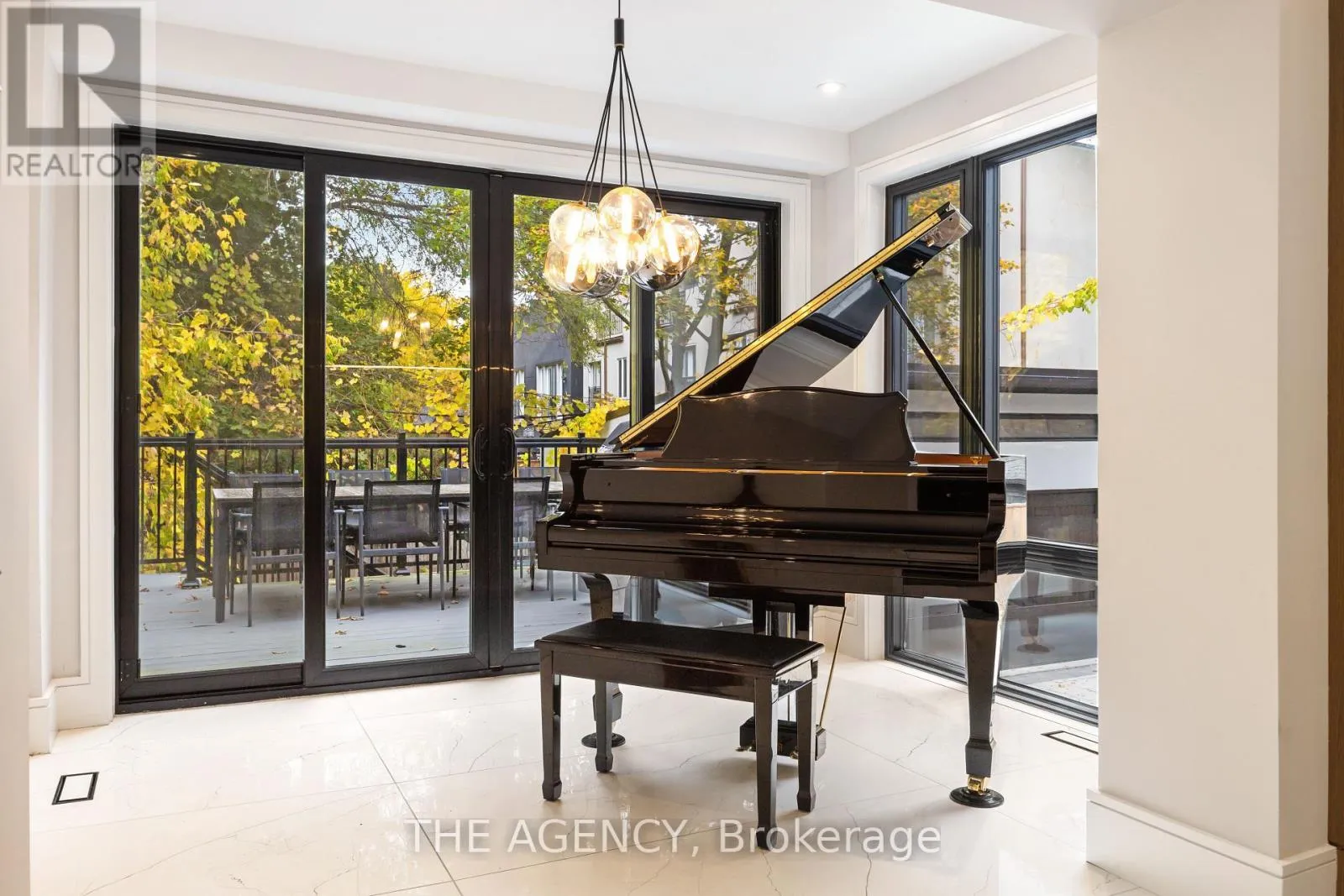 Avenue/Hillholm There's something about this home that feels different the moment you arrive. Tucked away on a quiet street in Forest Hill South, it doesn't try to impress - it simply does. The circular driveway curves gently toward a modern façade where glass and stone meet with quiet confidence. Inside, the warmth is immediate - radiant floors underfoot, sunlight streaming through tall windows, and a sense of calm that lingers in every corner. The main level flows with ease. A private office sits near the entrance, perfect for focused mornings, while the open living and dining areas invite connection. At the heart of it all, the kitchen is both refined and welcoming - twin islands, a striking wine wall, and space that seems designed for lingering conversations as much as cooking. Every inch feels intentional, every finish chosen to be both beautiful and lasting. Upstairs, the family room opens under soaring ceilings, its built-in sound system setting the stage for movie nights and quiet Sundays alike. The primary suite feels like a personal retreat, complete with a walk-in dressing room and spa-like ensuite. Each additional bedroom has its own bathroom, giving everyone space and privacy. The third floor brings a softer energy - a bright den framed by a skylight and balcony walkout, perfect for reading, working, or simply enjoying a quiet moment in the sun. Below it all, the lower level transforms into a place of balance and recreation: a fully equipped gym, sauna, wet bar, spacious lounge, and a private suite ideal for guests or a live-in nanny. Thoughtful touches like dual laundry rooms add everyday ease. Surrounded by the best of Forest Hill Village, from UCC and BSS to local trails and shops, this home offers a rare balance - elegant yet easy, sophisticated yet deeply livable. It's not just a place to stay, but a place to belong. A full list of inclusions and exclusions is available upon request. (id:27476)