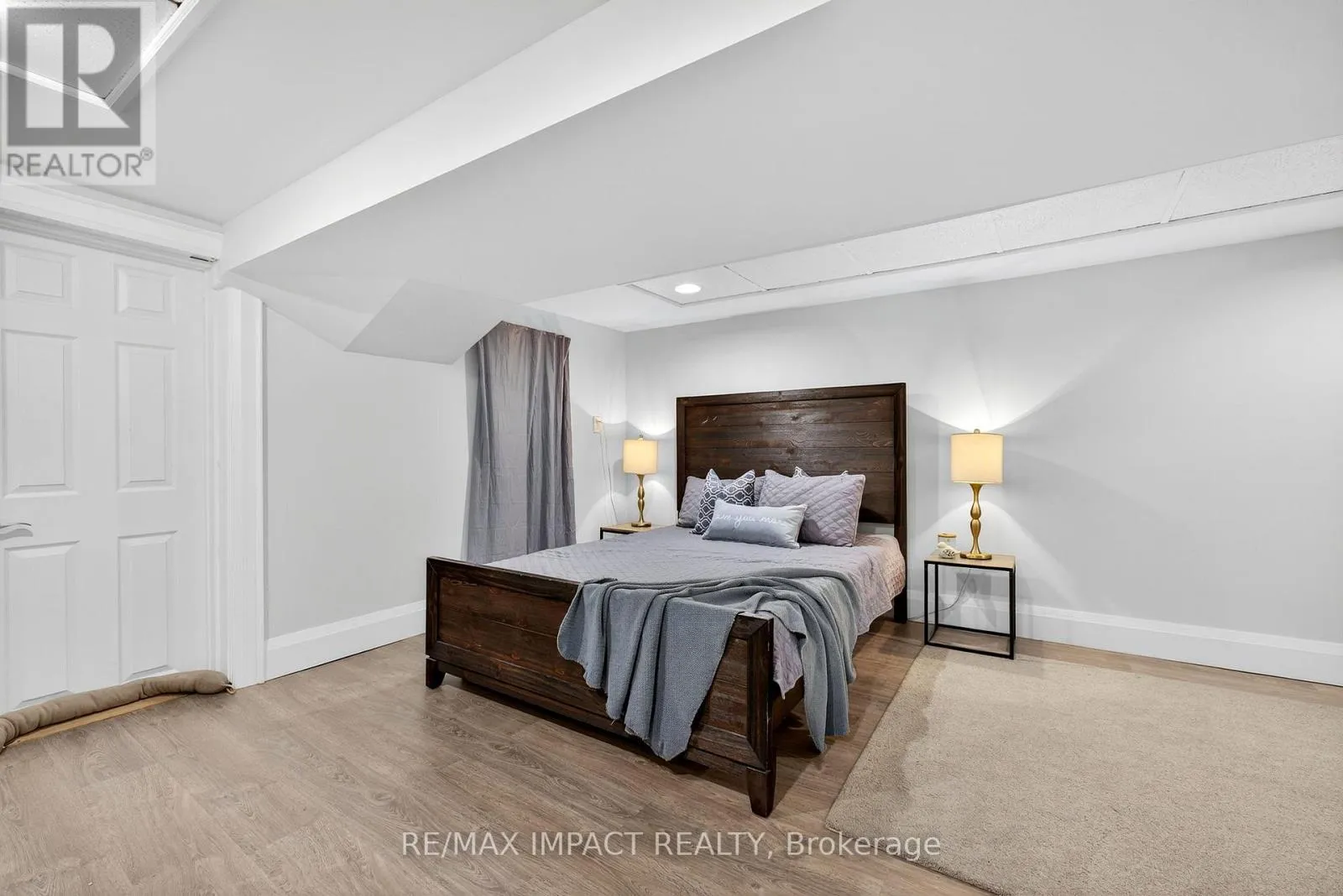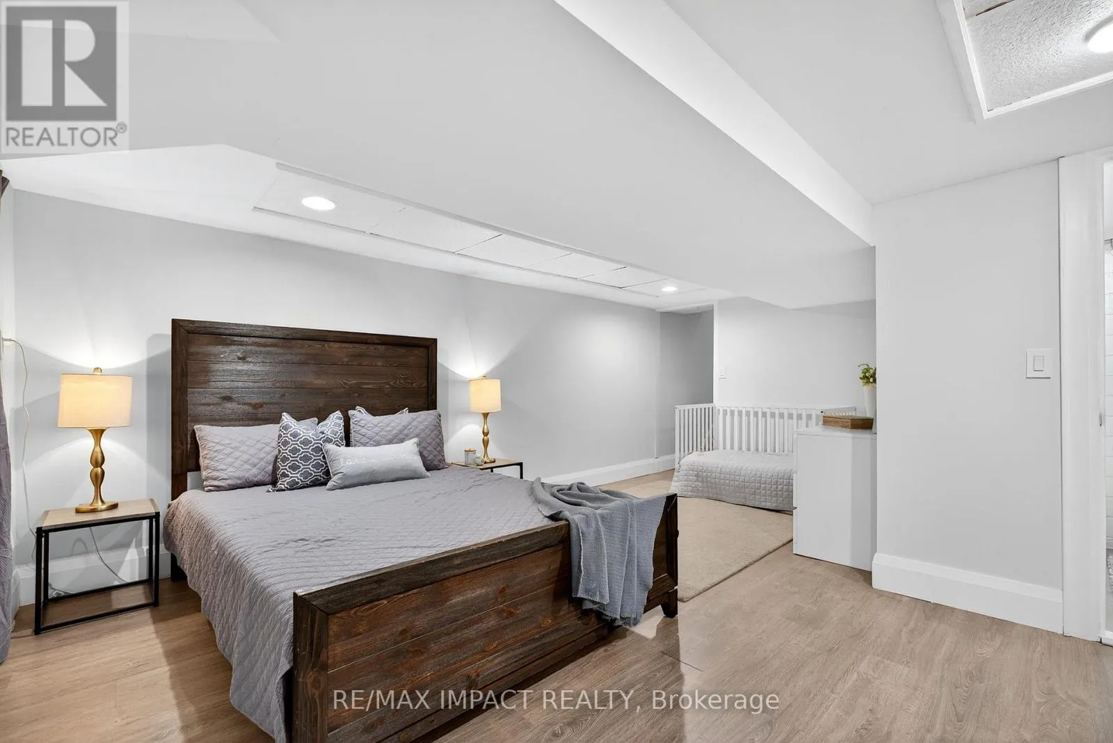 Danforth and Warden Welcome to this charming and beautifully upgraded bungalow tucked away on a quiet dead-end street - no through traffic, just local neighbours, offering a peaceful and private setting in a family-friendly neighbourhood. The bright, open-concept main floor features a Juliet balcony overlooking the fenced backyard, providing a lovely view and plenty of natural light. With no carpet throughout, pot lights, and large windows, the home feels warm, modern, and inviting. The white contemporary kitchen includes a skylight, stylish backsplash, and built-in stainless steel appliances - gas stove, dishwasher, fridge, and range hood - combining elegance with everyday functionality. The finished lower level offers a spacious bedroom with a walk-in closet and ensuite bathroom, plus a laundry area and extra storage space - perfect for comfortable living or a private retreat. Step outside to a private backyard with a garden shed, ideal for relaxing, gardening, or entertaining outdoors. A truly charming, move-in-ready home filled with natural light and thoughtful upgrades - ideally located close to schools, parks, shopping, and transit! (id:27476)