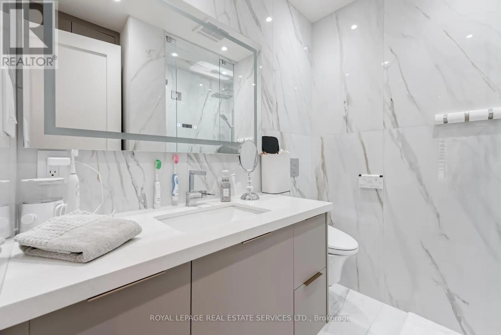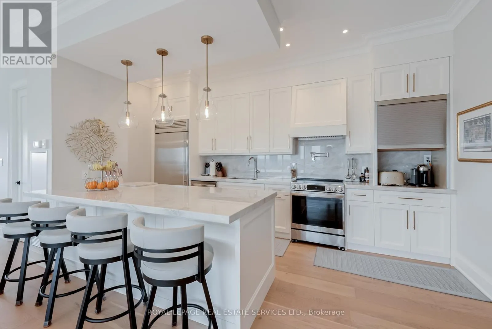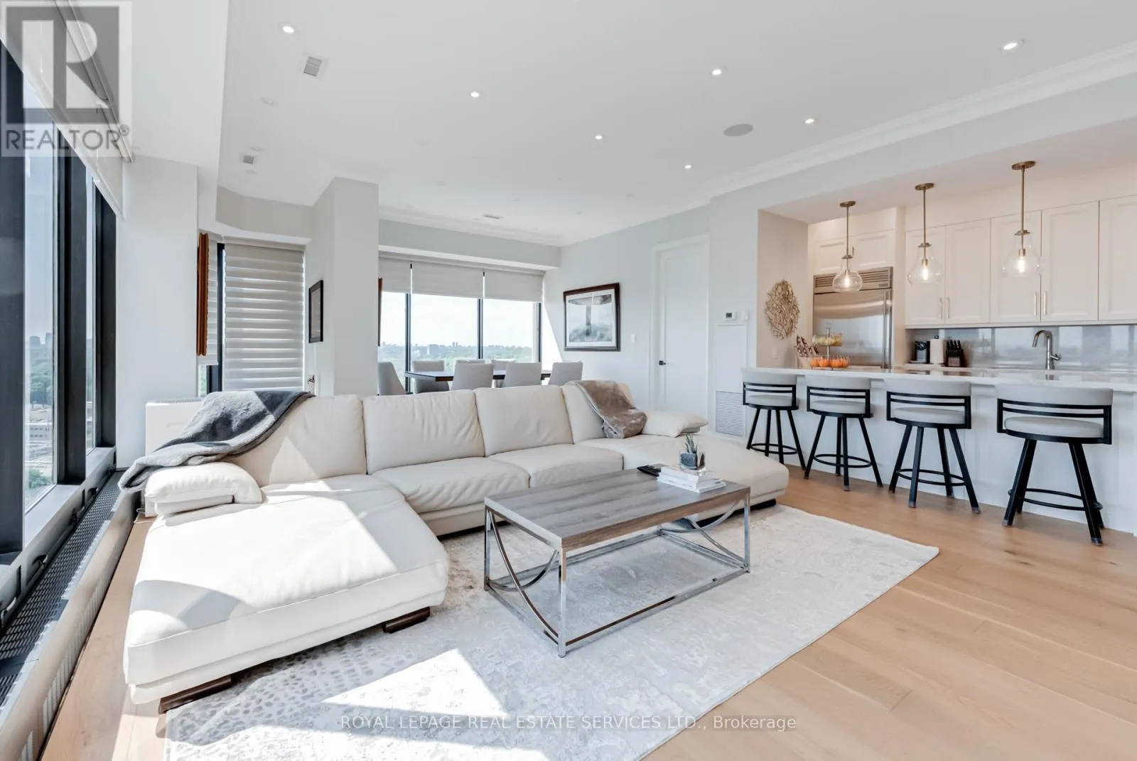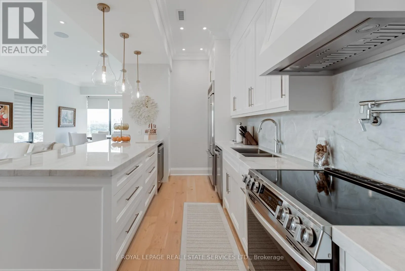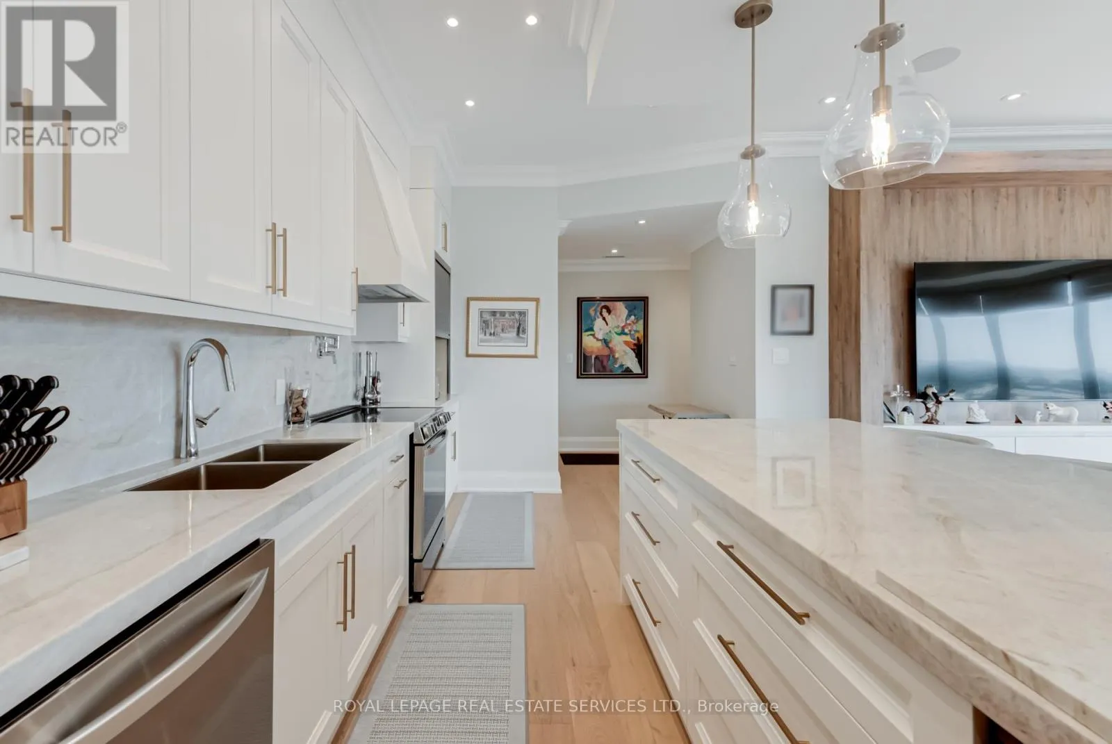 Lake Shore and Park Lawn This suite has everything you're looking for. From the dramatic gallery entry, lined with ceiling LEDs, with its stunning cream porcelain flooring, to the ten foot ceilings, eight foot doors, the craftsmanship is superb. Five inch baseboards and crown moulding, are only a few of the special finishes that sets this suite apart. Spacious Living room , dining room combination, with walls of floor to ceiling glass, brings in excellent light. Floors are rich 8" bleached white oak plank hardwood, easy to care for. Surround sound adds to the features of this elegant, yet comfortable space. Electric blinds on all windows. The office/flex space off the dining room is ample and completely private. Kitchen workspace is functionally designed and the anchor is the 8'5" island of misty white granite with overhead bowl lighting. Five S/S appliances, wine fridge, double sinks, Swan faucet, and every chefs dream, a pot filler over your stove! Loads of cupboards, and a built in coffee bar, makes this the perfect kitchen. A walk-in pantry with shelving for extra storage is a plus. Primary bedroom is serene and spacious with a walk-in closet. Ensuite, four piece, glassed rain shower, lighted makeup mirror, and shelving. The second bedroom is bright with double mirrored closets and adjacent to the second bathroom with walk-in shower. This is a one of a kind suite. Quality, space, upgrades; it has it all. To add to all this, the sunsets are awesome and the view of the bay is an added bonus. (id:27476)