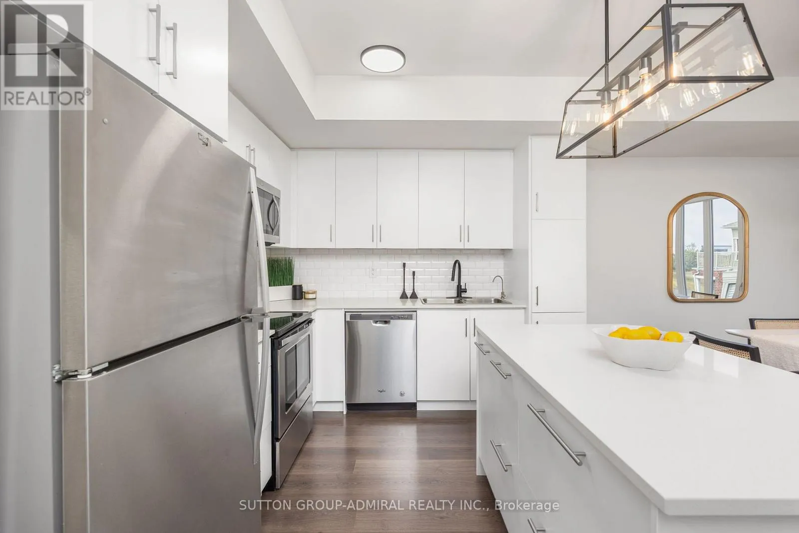 Cross Streets: Lake Shore Blvd & Long Branch Ave. ** Directions: From Lake Shore Blvd, head north onto Long Branch Ave. Coveted Long Branch Townhome Built by Minto, among the lowest maintenance fees in the complex! This bright and spacious 2-bedroom, 3-bathroom home features 9' ceilings, hardwood floors on the main level, and an open-concept living/dining/kitchen area with popcorn ceilings removed for a sleek, modern look. Freshly painted, the home showcases large windows with custom silhouette blinds that flood the space with natural light. The modern kitchen is equipped with quartz countertops, a breakfast bar, a contemporary backsplash, and stainless steel Whirlpool appliances. In the primary bedroom, a walk-in closet and custom built-in closet system add convenience and organization. Enjoy outdoor living on the rooftop terrace, complete with a natural gas BBQ line and sweeping sunset views. Additional highlights include: Reverse osmosis water system (built into kitchen countertop), owned tankless hot water heater, newly installed Air Conditioner and 1042 GeneralAire Humidifier, upgraded Ecobee 3 Lite thermostat and Arlo video doorbell. Prime location, nestled just minutes from Long Branch GO Station and transit, parks, cafes, restaurants, and trendy shops. (id:27476)