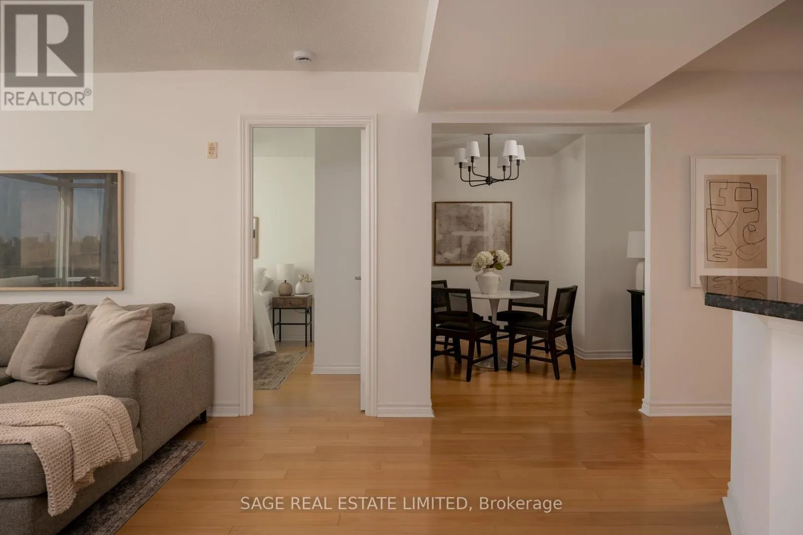 Bathurst & Wilson Welcome to Suite 606 at the VIVA, a bright and spacious 2 bedroom plus den condo offering 918 SF of open-concept living with treetop views and a private balcony. The split-bedroom layout provides privacy, with the primary bedroom featuring a 4-piece ensuite and walk-in closet. The versatile den works as a home office, dining area, or guest space. The kitchen includes stainless steel appliances, granite counters, ample storage, and a breakfast bar. Updates include hardwood floors, fresh paint, a new microwave and new light fixtures. Residents enjoy exceptional amenities including a 24-hour concierge, renovated fitness centre, sauna, party and billiards room & visitor parking. One parking and locker included. Located in Clanton Park &steps to shops, dining, transit, and minutes to Highway 401. Enjoy the perfect blend of comfort, convenience, and sophisticated urban living. (id:27476)
