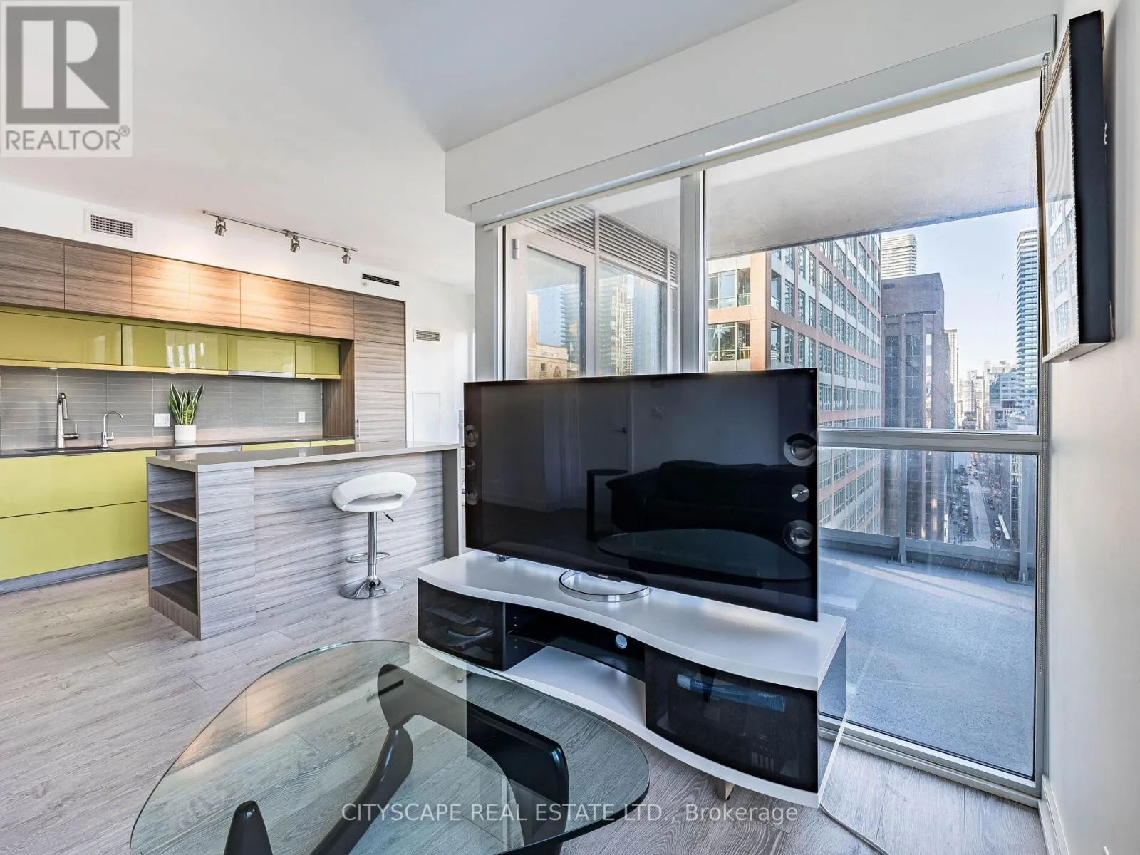 Yonge/Wellington Experience the best of urban living in this luxurious two-bedroom, two-bathroom condo located in the heart of downtown Toronto. This contemporary unit offers a perfect blend of style, comfort, and convenience, ideal for professionals, couples, or small families. Spacious open-concept living and dining area with large windows for natural light. High ceilings create a sense of openness and elegance. Contemporary finishes and a neutral color palette. Sleek and modern cabinetry in kitchen with a functional island that offers extra storage space. Master Bedroom features a 3 pc washroom and a big walk-in closet. Large windows bring in a lot of natural light and brightness. The private balcony offers stunning views of the Toronto skyline. Walking distance to Union Station. (id:27476)