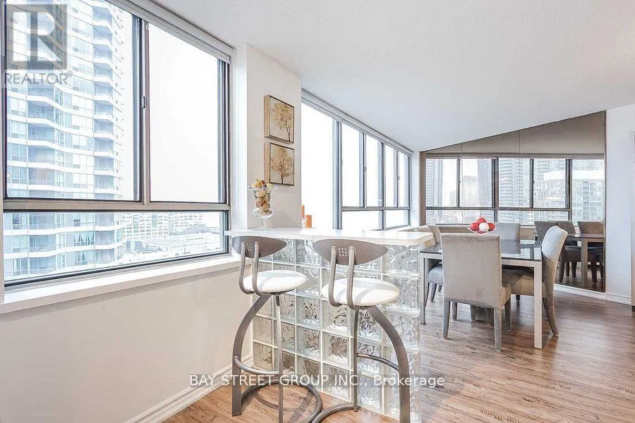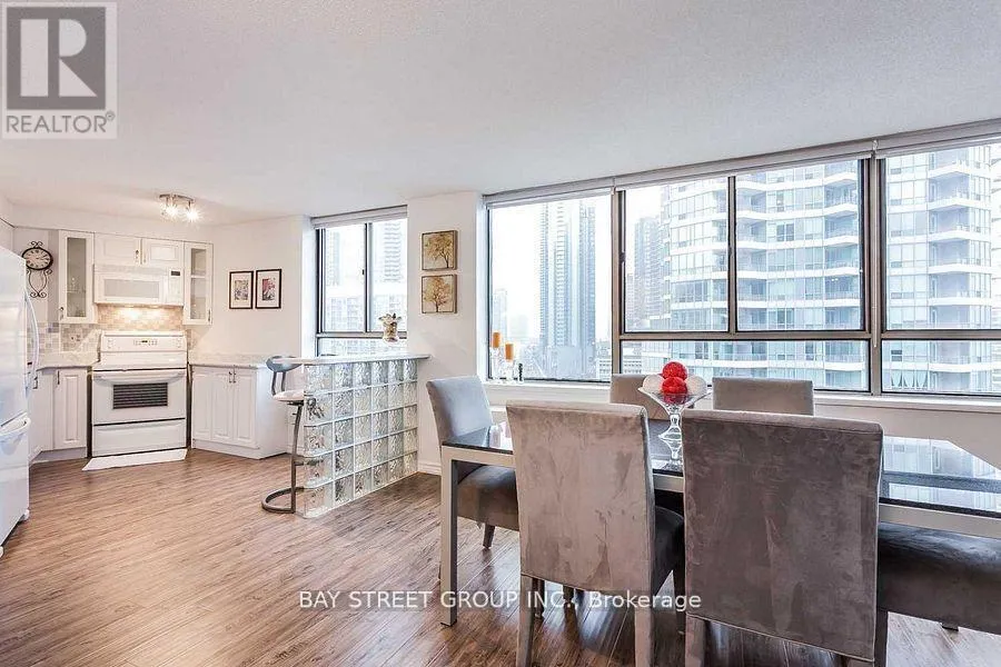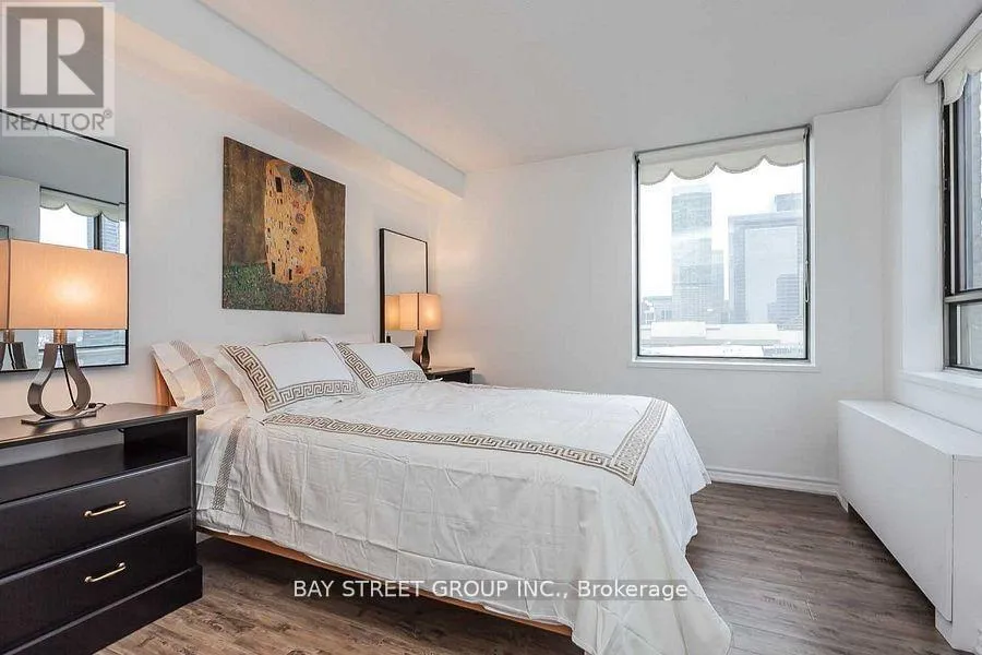 Cross Streets: Queens Quay Way & York Blvd. ** Directions: North of Queens Quay Way. Located in the heart of Toronto's vibrant Harborfront, this beautifully renovated and fully furnished 2-bedroom, 1-bathroom suite offers an unbeatable combination of style, comfort, and convenience. Featuring an open-concept layout with expansive windows, the unit is filled with natural light and showcases stunning, unobstructed views of both the city skyline and Lake Ontario. Just steps from the Financial District, waterfront trails, parks, and major attractions, it's also perfectly positioned near Billy Bishop Airport and the Union Pearson Express for easy travel. Thoughtfully decorated with modern executive finishes and surrounded by transit, restaurants, cafes, shops, and more, this is city living at its finest. Featuring all new flooring, brand new PTAC heat pump units in both the primary and second bedrooms, a sleek new Samsung dishwasher, premium Moen kitchen faucet, and a stylish new Kohler toilet - everything refreshed for modern comfort and efficiency. (id:27476)