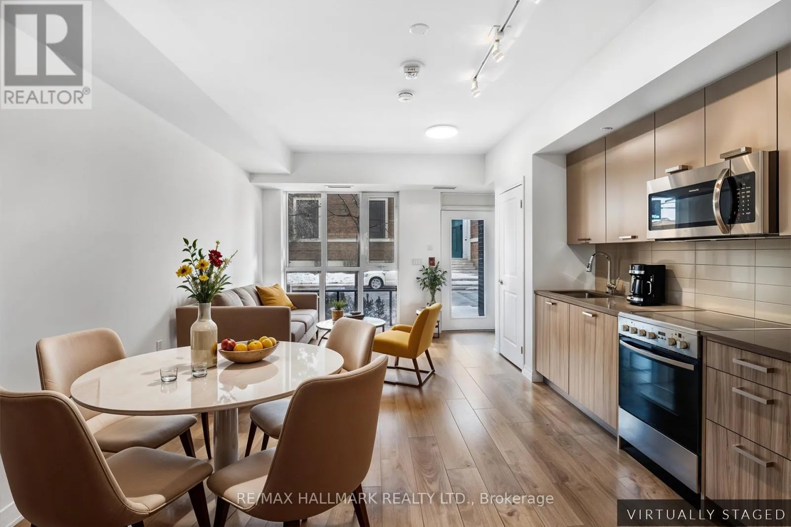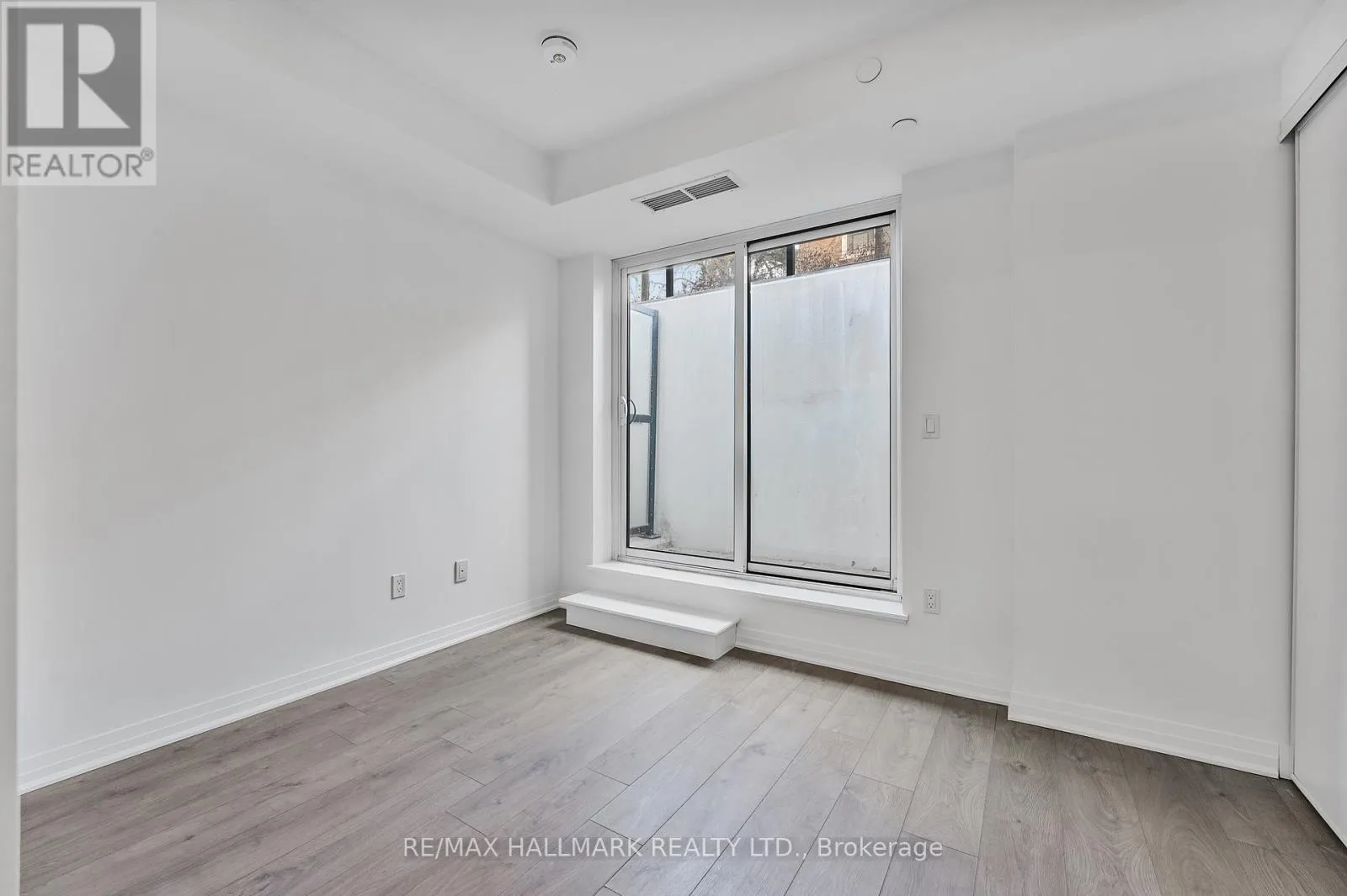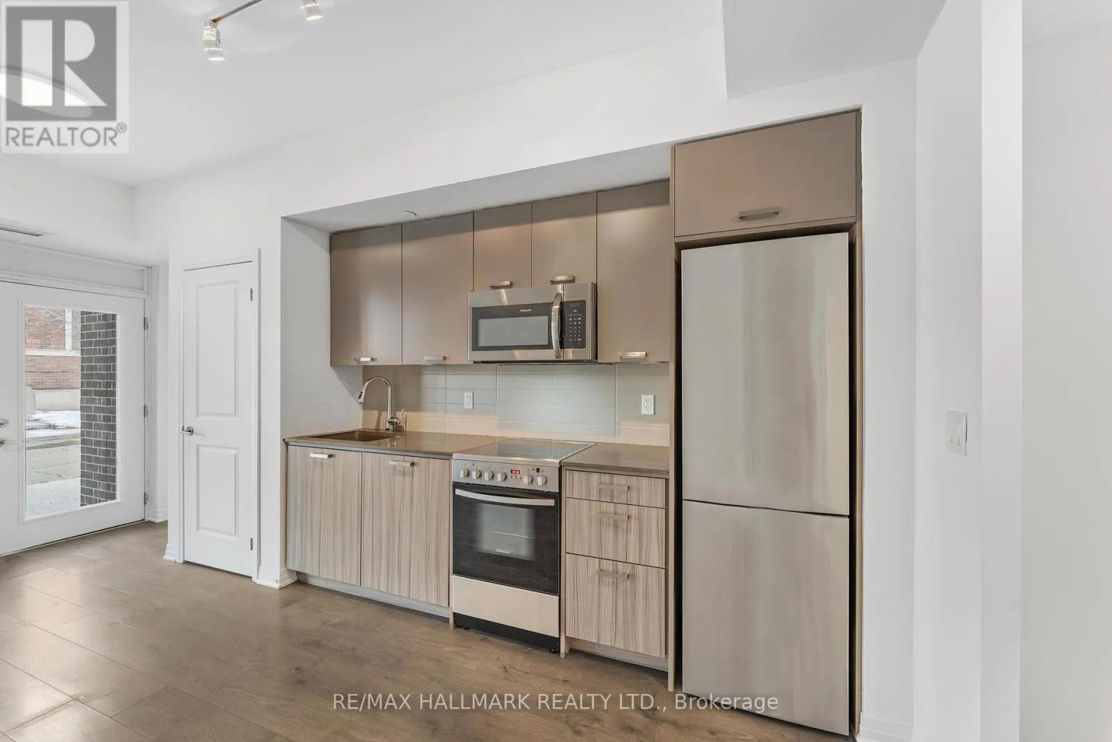 Danforth Ave & Woodbine Rarely offer ground unit condo with direct entry via residential street at Canvas Condos! This 2 level unit feels like a townhome in trendy Danforth Neighborhood. Featuring open concept living/dinning area and powder room on main floor and den plus primary bedroom with 4 piece ensuite on lower level with walk to patio. Building features: fitness center; yoga studio, party room, outdoor rooftop terrace, fire pit, BBQ, with Spectacular Views Of Toronto's Skyline & Lake Ontario. Walk to Main subway station and nearby Danforth GO station offering express service to Union Station. Plus dedicated bike lanes right outside your door! (id:27476)