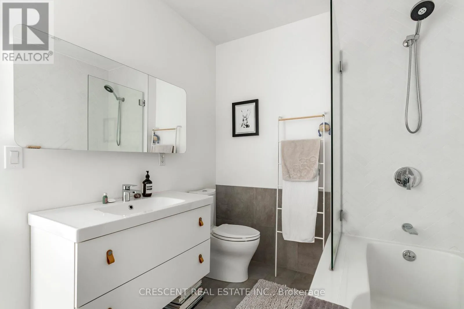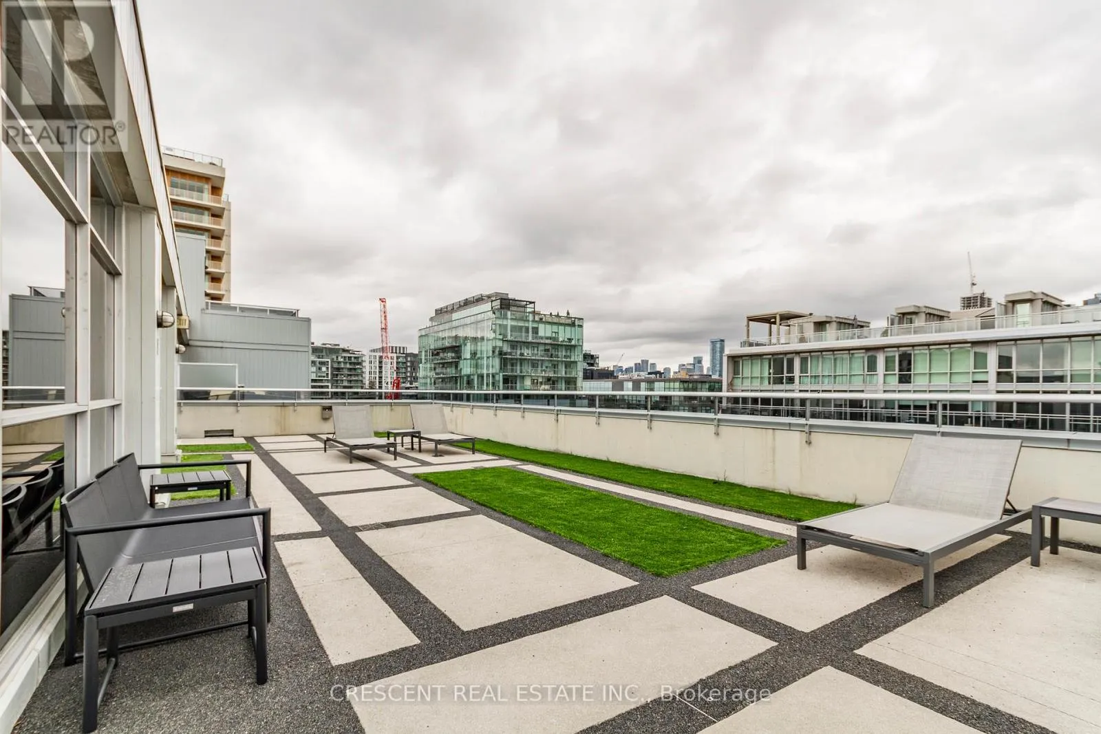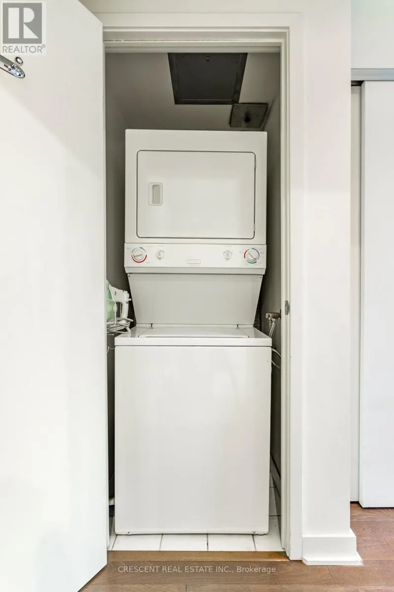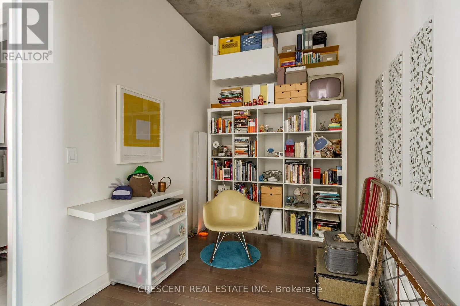 Cross Streets: Bathurst & Front. ** Directions: West of Bathurst off Wellington. * Sophisticated Furnished Loft in the Heart of King West * Experience urban living at its finest in this stunning loft located in an intimate boutique building in Toronto's most coveted King West neighbourhood. This generous 880 sq ft residence features soaring 10-foot ceilings and an intelligently designed layout that includes one spacious bedroom plus a large den - perfect for a home office, guest room, or creative space. The open-concept living, dining, and kitchen area creates an ideal entertaining space flooded with natural light, complemented by a charming Juliet balcony.The unit boasts a newly renovated bathroom and the convenience of in-suite laundry. This turnkey loft comes completely furnished with everything needed for comfortable living, allowing you to simply arrive and settle in. Located on the prime 8th floor with excellent views, you'll be steps away from King West's renowned restaurants, galleries, cafes, and nightlife, with easy access to transit and major highways. Available fully furnished for flexible short-term stays with a minimum lease of 6 months and longer. (id:27476)