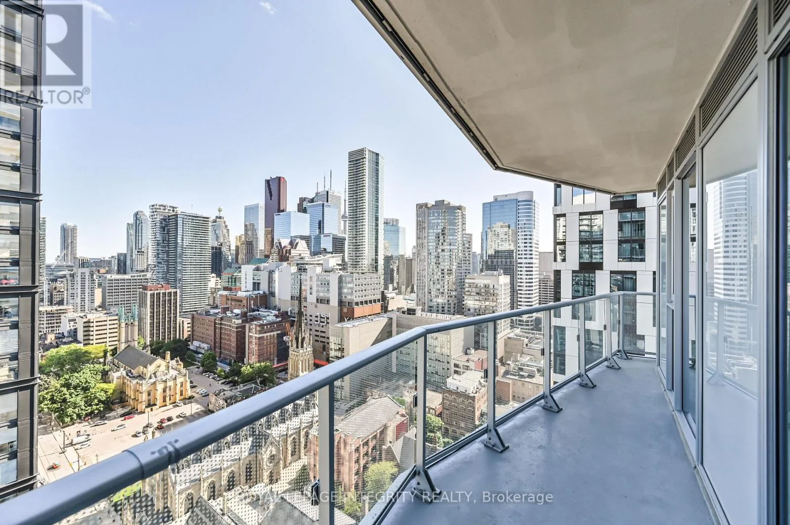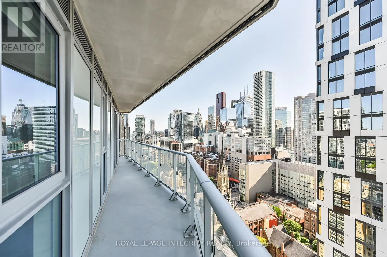 Cross Streets: Church & Dundas. ** Directions: Church/Dundas. Welcome to Social by Pemberton Group - a stunning 52-storey high-rise in the heart of downtown Toronto at the corner of Dundas & Church. Experience luxury living with breathtaking city views and elegant modern finishes.Just steps away from public transit, boutique shops, restaurants, universities, and cinemas, this prime location offers the best of urban convenience and vibrant city life.Enjoy 14,000 sq. ft. of premium indoor and outdoor amenities, including a fitness centre, yoga room, steam room, sauna, party lounge, BBQ area, and more.This spacious 2-bedroom + den, 2-bath unit features 2 private balconies with southwest exposure and comes with a locker. Interior highlights include laminate flooring, stainless steel appliances (fridge, stove, oven, dishwasher, microwave), quartz countertops and window sills, and included internet.Luxury, lifestyle, and location - all in one. The photos were taken before the current tenants moved in. (id:27476)