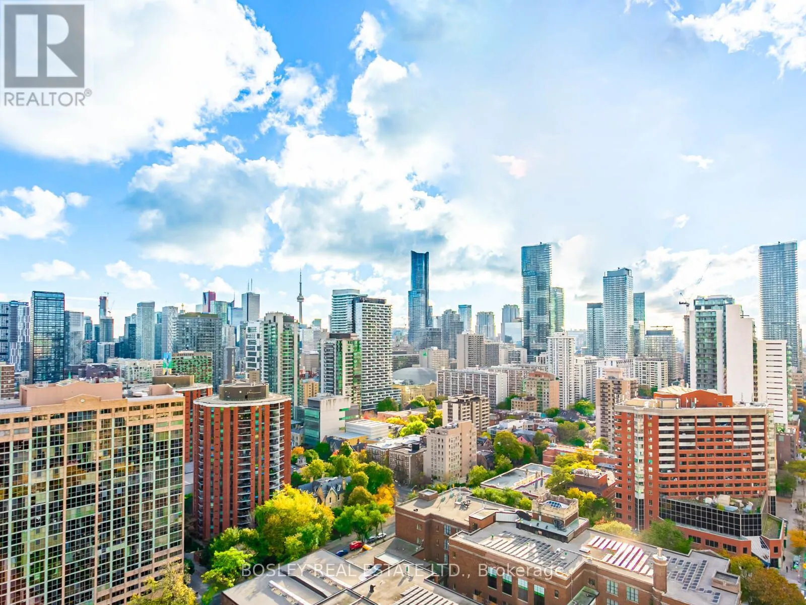 Jarvis and Wellesley Experience urban living at it's finest in this beautifully furnished apartment, featuring a smart, comfortable layout and stunning west-facing views. Perched on the 24th floor of a well-maintained building, this suite offers both style and convenience - with a grocery store right on the main level. Nestled in a vibrant area rich with culture and amenities, you'll be just steps from scenic parks and trails, top-rated restaurants, lively nightlife, the University of Toronto, and multiple transit options. Enjoy access to the Verve's impressive amenities, including a fully equipped gym, elegant part room, and a gorgeous outdoor pool. This thoughtfully renovated unit features an enclosed den - perfect as a guest room with a convertible sofa, a home office, or a creative studio space. The building's 24-hour concierge and security team are known for their friendliness and reliability. Internet is included; utilities are extra; parking is available! Available immediately - book your viewing today! (id:27476)