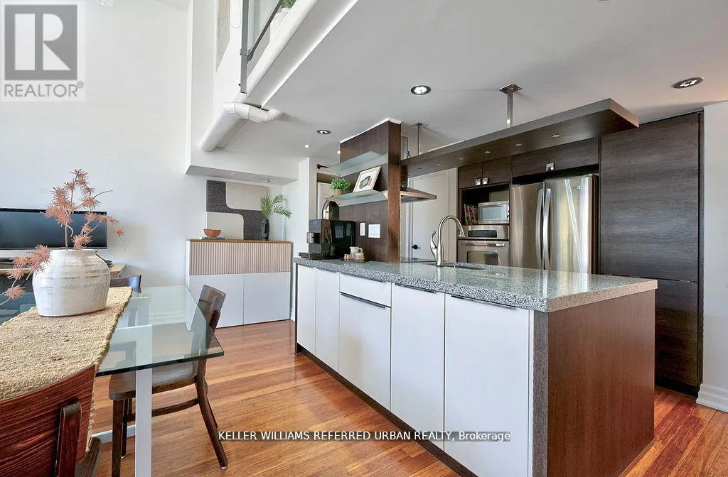 Spadina and College Kensington Market Lofts - A Rare Blend of History, Design & Lasting Value Why settle for another glass tower when you can own a landmark? Unit 209 at the Kensington Market Lofts is a true hard loft in one of Toronto's most storied mid-size conversions - celebrated for its architecture, scale, and enduring appeal.This bright, south-facing residence features soaring ceilings, oversized factory windows, and thoughtful upgrades throughout. A custom Dacor induction kitchen, two bathrooms, bamboo and hardwood floors, premium parking, and locker combine function with refined urban style.Residents also enjoy a landscaped interior courtyard - a private oasis rarely found in downtown living.A Heritage Conversion with Integrity Originally built in 1911 for the Koffler Furniture Company, later home to a public school and George Brown College, the building earned both the Heritage Toronto Award of Excellence (2006) and the City of Toronto Urban Design Award (2007) - testaments to its architectural quality and craftsmanship.Enduring Location, Timeless Value With a perfect Walk and Bike Score of 100, you're steps from Kensington Market, U of T, Queen West, Chinatown, and the AGO - the cultural core that continues to define downtown Toronto's energy and growth.This is more than a home - it's an investment in authentic character and long-term value in one of Toronto's most coveted boutique loft buildings. (id:27476)