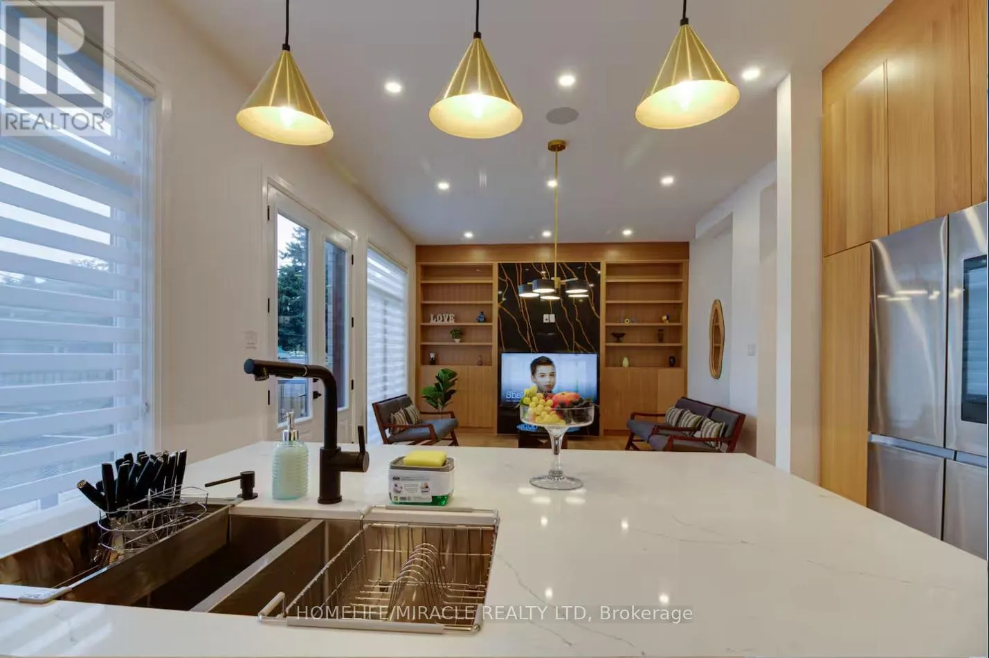 Cross Streets: Victoria Park Ave St and Clair St East. ** Directions: Victoria Park and St Clair. Stunning Custom-Built Luxury Home Bathe in natural sunlight from every direction in this exceptional custom-built residence, where expansive floor-to-ceiling windows fill every room with brightness and warmth. Crafted for modern living, this home showcases a fully integrated Smart Home system, built-in sound, elegant modern chandeliers, sleek glass railings, and an impressive 78 pot lights across all floors, complemented by a skylight for an airy, open ambiance. The chef-inspired kitchen is a true center piece equipped with premium built-in stainless steel appliances, including a six-burner stove, smart four-door refrigerator with internal cameras, pot filler, double sink, ample cabinetry, large center island, and sophisticated ambient lighting. Offering 6 luxurious washrooms, central vacuum, and every comfort thoughtfully considered, the home boasts approximately 3,000 sq. ft. of above-ground living space plus a 1,300 sq. ft. finished basement. Total 4300 Sq feet with Basement) The primary suite offers a spa-like ensuite for the ultimate retreat, while the second bedroom includes its own ensuite, and the third bedroom features private washroom facilities. Built with precision, quality, and exquisite architectural design, this home offers an unrivaled lifestyle whether you choose to enjoy it yourself or use it as an income-generating Airbnb property (approx. $10,000/month).This is a once-in-a-lifetime opportunity. Don't miss your chance come and see the lifestyle that awaits! (id:27476)