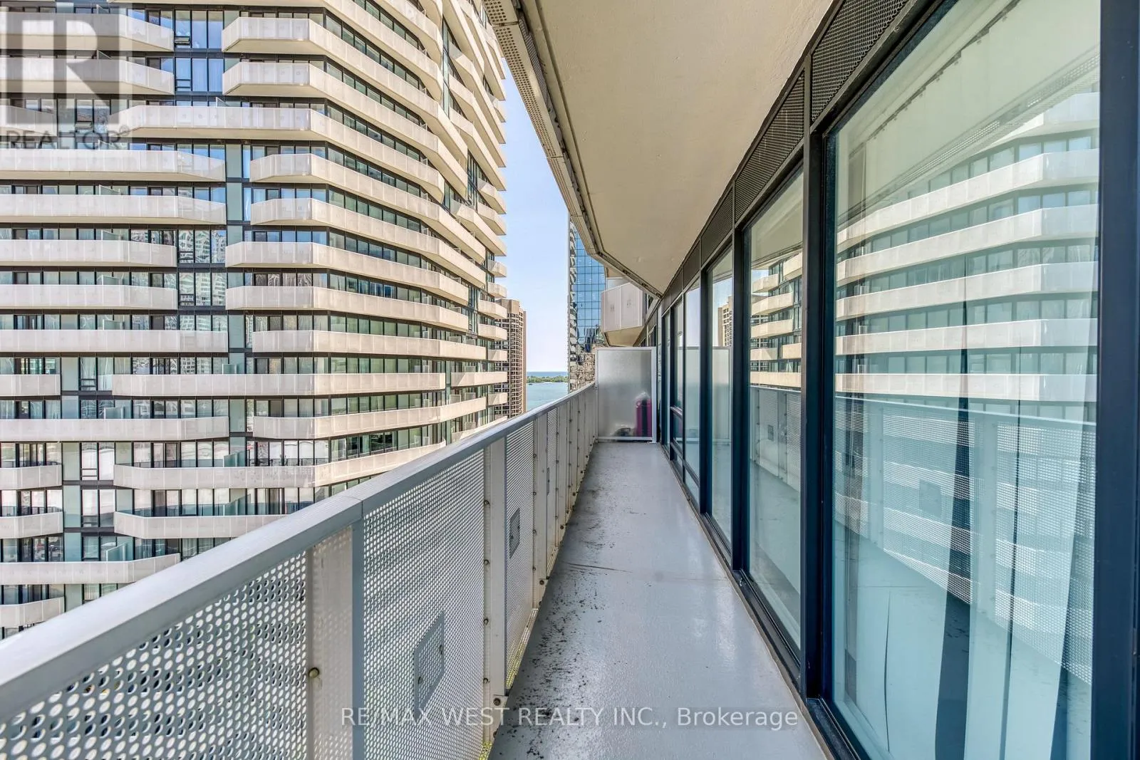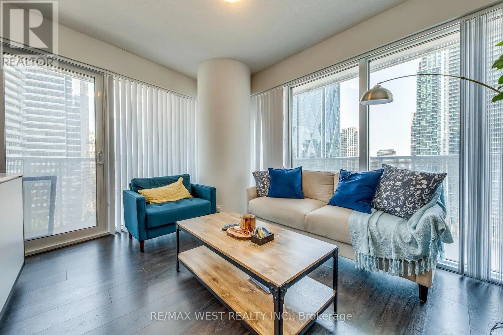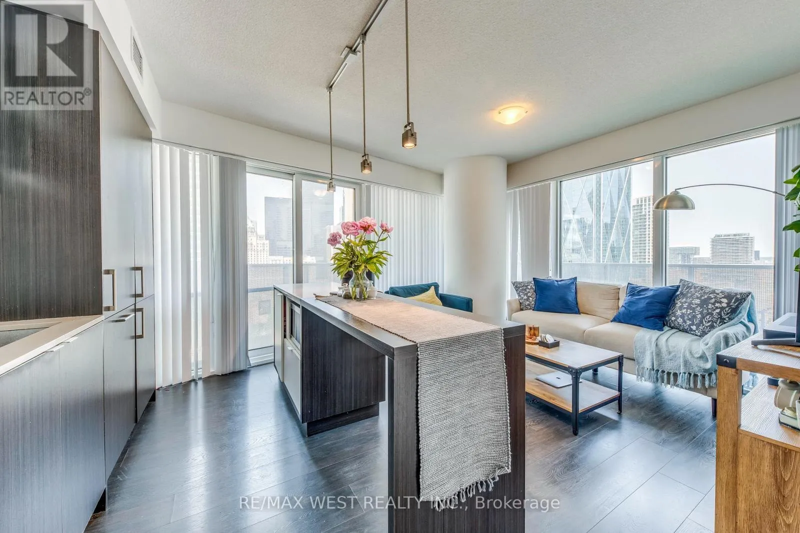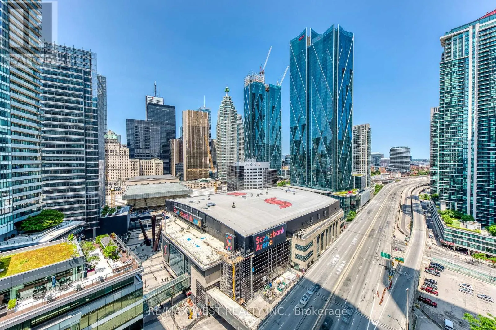 York St/ Harbour St Luxury Living In Harbour Plaza Residences By Menkes. Wake Up Every Morning To The Breathtaking View Of CN Tower, Lake Ontario And Toronto's Iconic Downtown Skyline. Enjoy Your Coffee In The Wrap-Around Terrance With Amazing City and Lake View. This Exquisite 2 Split Bedrooms Corner Suite Is Designed With Attention To Detail And High-Quality Finishes With Upgraded & Customized Throughout. Floor-To-Ceiling Windows Surround And 9 Feet High Level EXCLUSIVE Smooth Celling Creating A Sun Drenched Living Space. Hardwood Flooring Throughout. Modern Kitchen With Integrated Appliances. The Residence Offers Private Access To World Class Amenities Including A 24-Hour Concierge, State Of The Art Wellness & Fitness Facility, Indoor Pool And More. Located In Prime Location And Direct Access To Underground P.A.T.H, Minutes To Union Station, Go Transit, CN Tower, Harbour Front, Scotiabank Arena, Rogers Centre, Shopping Centre And More Without Stepping Outdoor. B/I Fridge, Stove, Dishwasher. Microwave, Washer & Dryer, Window Coverings & Light Fixtures. 2 Pure Fitness Memberships Included In The Maintenance Fee. (id:27476)