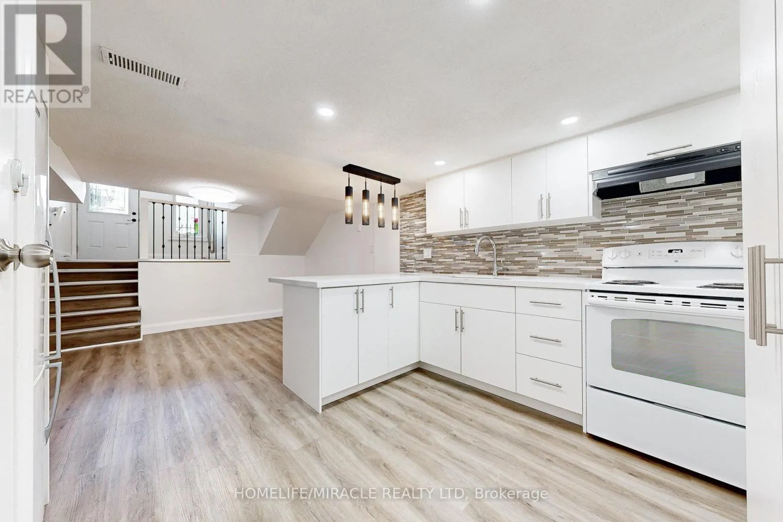 Cross Streets: Danforth/Pape. ** Directions: South of Danforth Road and Jones Avenue. Welcome to this beautifully basement suite featuring a private walkout entrance and an open-concept layout that seamlessly blends living and dining spaces. The upgraded kitchen boasts granite countertops, a sleek black backsplash, and elegant pendant lighting. Enjoy the convenience of in-unit laundry with your own washer and dryer. Freshly painted with new, luminate flooring throughout, this unit also includes a modern 4-piece bathroom. Located just steps from the vibrant heart of Greektown, you're within easy reach of TTC transit, restaurants, and grocery stores. ** This is a linked property.** (id:27476)