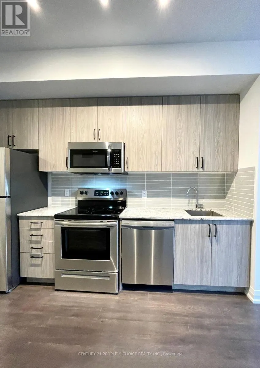 Markham and Ellesmere Welcome to Suite 102 - 10 Meadowglen Place, Toronto Experience modern elegance and urban convenience in this sleek 1-bedroom + den condo - the perfect home for professionals, singles, or small families who value style, comfort, and connectivity.This almost-new residence showcases premium builder upgrades and a sophisticated open-concept design that blends beauty with practicality. The chef-inspired kitchen impresses with a quartz island, matching countertops, designer backsplash, and top-of-the-line stainless steel appliances, including a built-in dishwasher and microwave.The primary bedroom is bright and spacious, while the versatile den doubles perfectly as a home office or guest room. Sunlight pours through the large windows, filling the space with warmth - and the private patio offers unobstructed views, ideal for your morning coffee or evening unwind.Enjoy premium conveniences including one underground parking space, a storage locker, and access to a professionally managed building with 24/7 concierge, secure entry, and luxury amenities - a fully equipped gym, elegant party lounge, and more.Step outside and you'll find TTC access right at your doorstep, including two 24-hour bus routes. You're just minutes from Highway 401, University of Toronto Scarborough, Centennial College, and Scarborough Town Centre. One direct bus connects you effortlessly to STC, Kennedy, Warden, and even the Yonge subway line.Everyday essentials are a short stroll away - Rexall, banks, grocery stores, and restaurants are all within walking distance.Whether you're relocating, simplifying, or upgrading your lifestyle, this home offers the perfect balance of sophistication, convenience, and comfort. Discover urban living at its finest - welcome home to 10 Meadowglen Place. (id:27476)