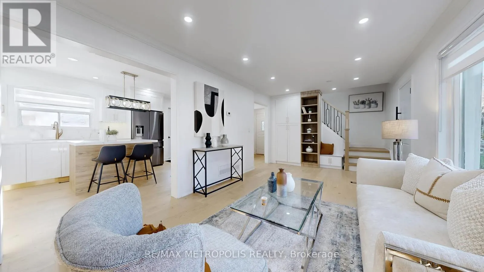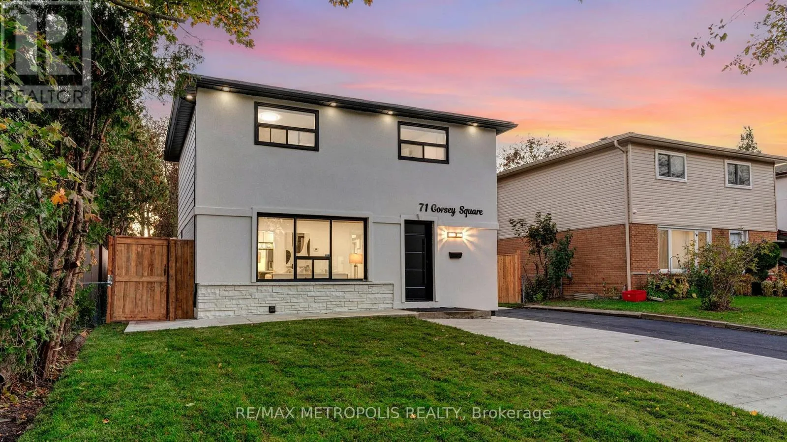 Cross Streets: Neilson Rd & Sheppard Ave. ** Directions: From Neilson Rd, turn onto Berner Trail, then left onto Griffen Dr, and right onto Gorsey Sq. One-of-a-kind, fully renovated 2-storey detached home featuring 3+2 spacious bedrooms and 3.5 washrooms, including a beautiful primary bedroom with a private ensuite. Designed with bright ambient lighting throughout and large windows that fill every room with natural light, this luxurious home offers an open-concept layout with hardwood floors, a modern kitchen with quartz countertops, pot lights, and elegant finishes. Enjoy convenient laundry on both levels, a separate side entrance to a fully finished basement ideal for rental income or in-law suite, and extensive exterior upgrades including new stucco, concrete work, fencing, and fresh landscaping. The property boasts a large driveway, huge front and backyard perfect for gardening or entertaining, and is ideally located just minutes from TTC, Centennial College, Hwy 401, Scarborough Town Centre, grocery stores, and banks. (id:27476)