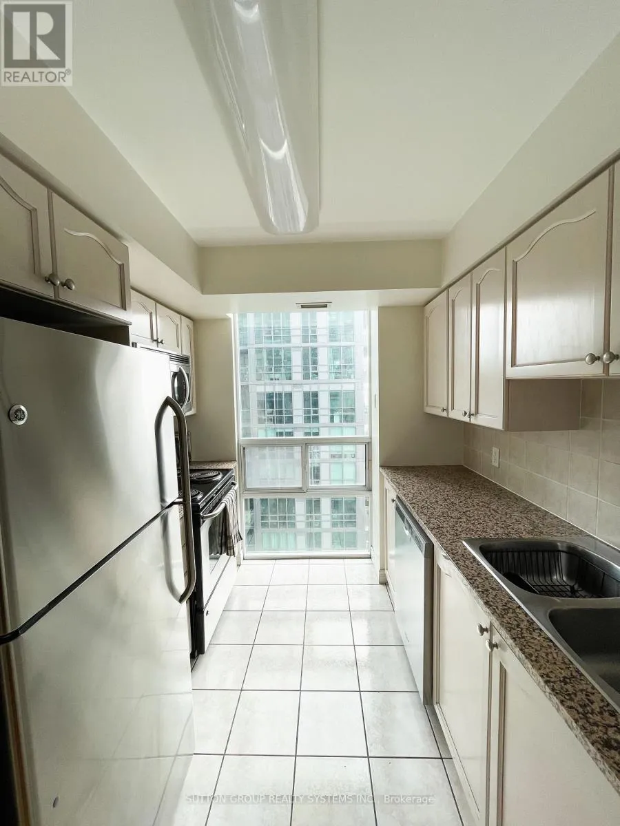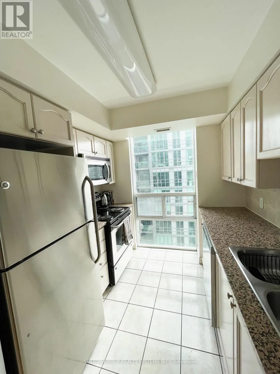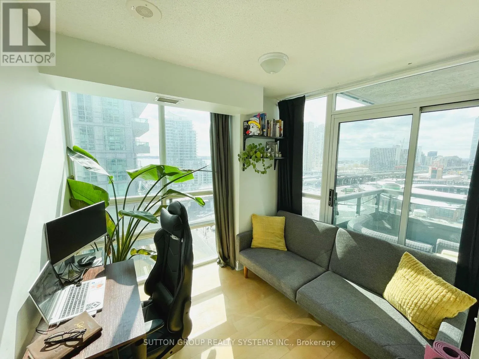 Cross Streets: Lakeshore/Lower Simcoe St. ** Directions: Lakeshore/ Lower Simcoe St. Luxurious corner suite at the prestigious Infinity Condos, located in the heart of downtown Toronto. This bright and spacious 2 bedroom plus den residence offers 2 full bathrooms, one underground parking space, and a locker. Enjoy unobstructed southwest views of the city skyline and Lake Ontario from the large private balcony. The open-concept living and dining area is ideal for entertaining, complemented by a modern kitchen featuring stainless steel appliances, granite countertops, and a window providing natural light. The primary bedroom includes a walk-in closet and ensuite bath, while the second bedroom offers generous space and storage. The den, complete with a window, can easily serve as a third bedroom or home office. Engineered hardwood flooring runs throughout, and the suite includes convenient ensuite laundry. Infinity Condos offers residents a full range of premium amenities, including an indoor pool, sauna, fully equipped fitness centre, party and meeting room, guest suites, and 24-hour concierge service. Unbeatable downtown location-steps to Union Station, Scotiabank Arena, Rogers Centre, the Financial District, waterfront, restaurant, shopping, and entertainment. Ideal for professionals, families, or investors seeking a refined urban lifestyle in one of Toronto's most desirable communities. (id:27476)