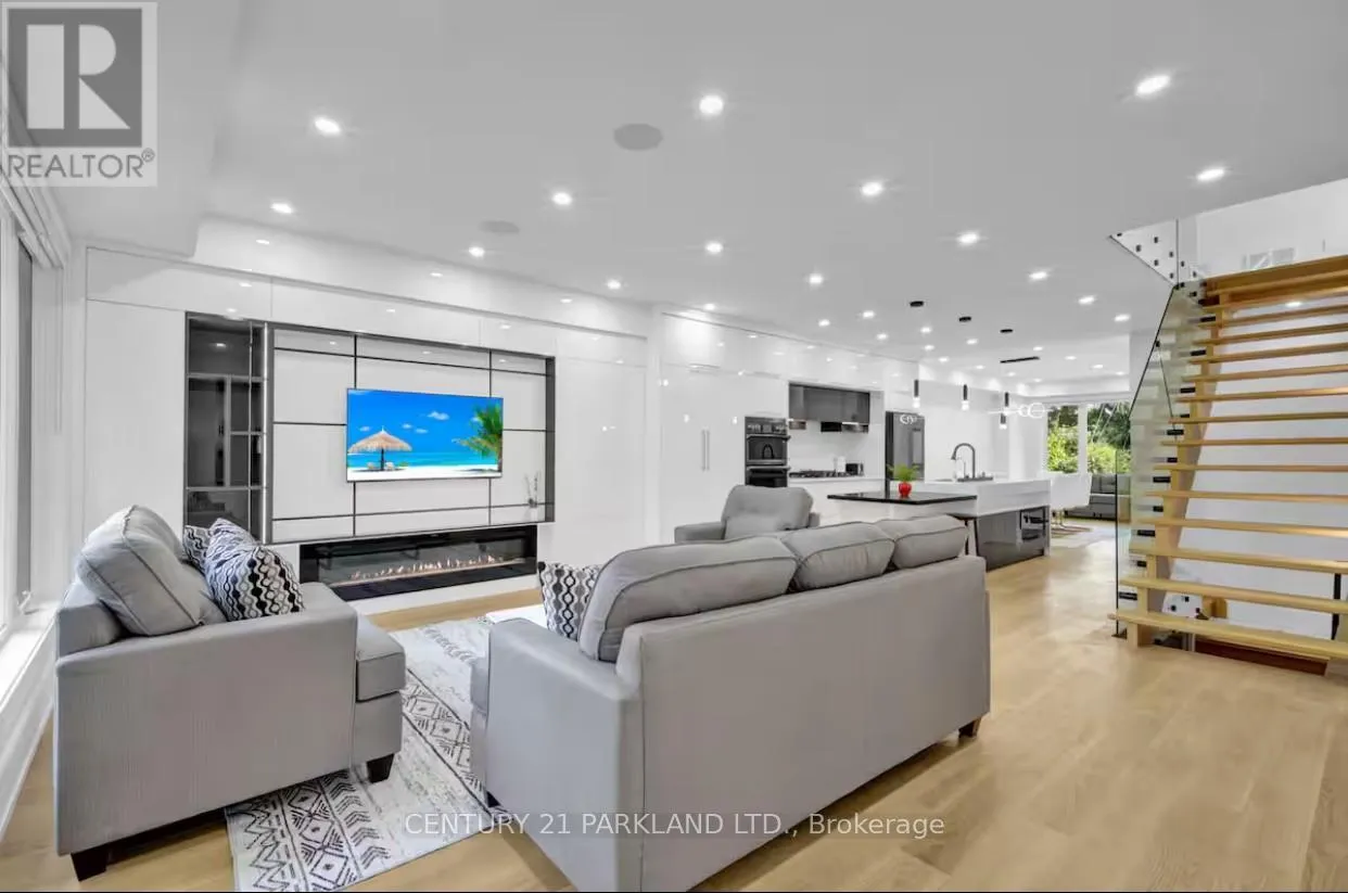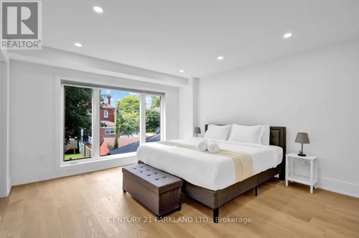 Cross Streets: Carlaw & Mortimer. ** Directions: Carlaw/Mortimer. Welcome to this Ultra-Modern Home at prime East York (Greek town) location. 4bedroom home w Exterior Composite & Fluted Panels & Glass Railing. Open Concept Large Kitchen W center island, High End WIFI Controlled S/S Appliances, Quartz Counter Tops, Centre Island W Book Shelve. Stairs w/Glass Railings. Lots Of Sunlight. Voice Cont Smart Home. Central Sound System. Main Floor W large family room about (16x18ft) built in fireplace and wallunit. All Bedrooms w walkin closets, lots of storage space. Large Master bedroom with 7pc ensuit w both side large windows & walkout to balcony. Balconies at the front and back. Theatre In Basement w/Attached Wet Bar & Built In Wine Cooler. Sep Office & Nanny's Room w/4pc Ensuite. Front Yard Legal Parking. Smart Front Door Lock Controlled By Phone, App Fob code & key. Walking distance to new ontario line. **Rough In Kitchen & Laundry in Bsmt** Seller is willing to negotiate walkout entrance if requested. (id:27476)