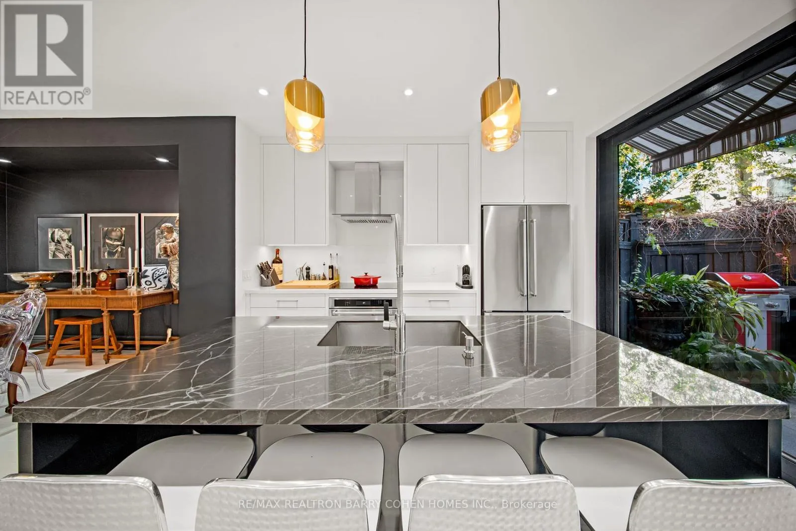 Cross Streets: Davenport/Avenue Rd. ** Directions: East of Avenue Rd. Welcome to 42 Berryman Street, a rare designer's residence built in 2003 and fully renovated in 2020, tucked away in the heart of Yorkville right off of Hazelton Ave. This fully customized home combines timeless Victorian architecture with contemporary European elegance, offering an unparalleled lifestyle for the most discerning buyer. The main floor is defined by a dramatic open-concept layout with soaring ceilings, a marble-slab feature wall with linear fireplace, and bespoke wrought-iron staircase detailing. Natural light pours through expansive windows and skylights, illuminating every refined finish. At the heart of the home, the chef's kitchen showcases full-height custom cabinetry, premium appliances, and a bold quartz waterfall island. Sleek pendant lighting and direct walkout access to a private courtyard make this space ideal for both everyday living and sophisticated entertaining. Upstairs, the vaulted primary suite offers a serene retreat with custom built-ins and a spa-inspired ensuite featuring a floating double vanity, dramatic marble shower. Additional bedrooms provide comfort and versatility, complemented by elegant baths finished with curated stone and designer fixtures. The fully finished lower level extends the living space with a flexible family room, private office, or gym complete with custom built-ins and a linear fireplace. Outdoors, a landscaped, maintenance-free courtyard offers a true urban sanctuary with granite tiling, privacy fencing, gas BBQ station-perfect for alfresco gatherings. Every detail at 42 Berryman has been carefully curated to deliver a residence of exceptional style, comfort, and sophistication. Seller is willing to arrange and cover the cost of one (1) rental parking space at Hazelton Lanes for 12 months, for the buyer's exclusive use. (id:27476)