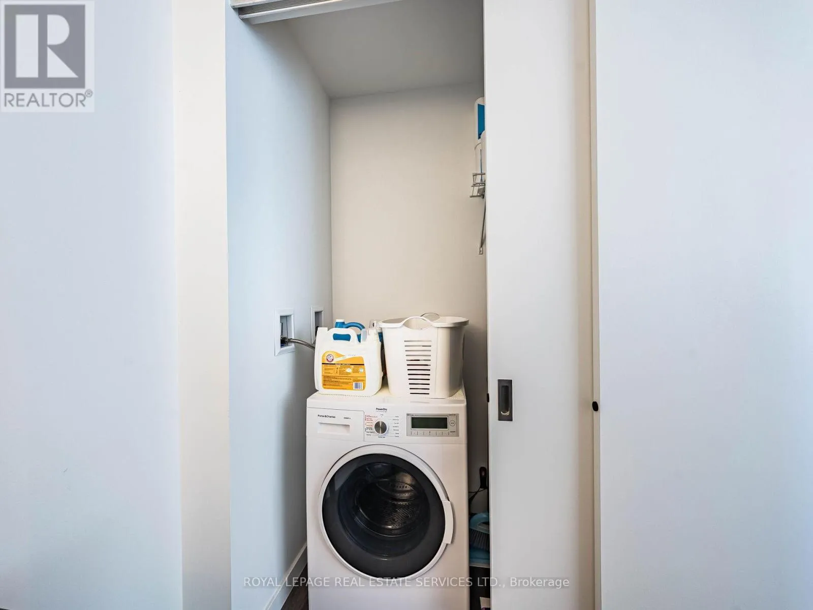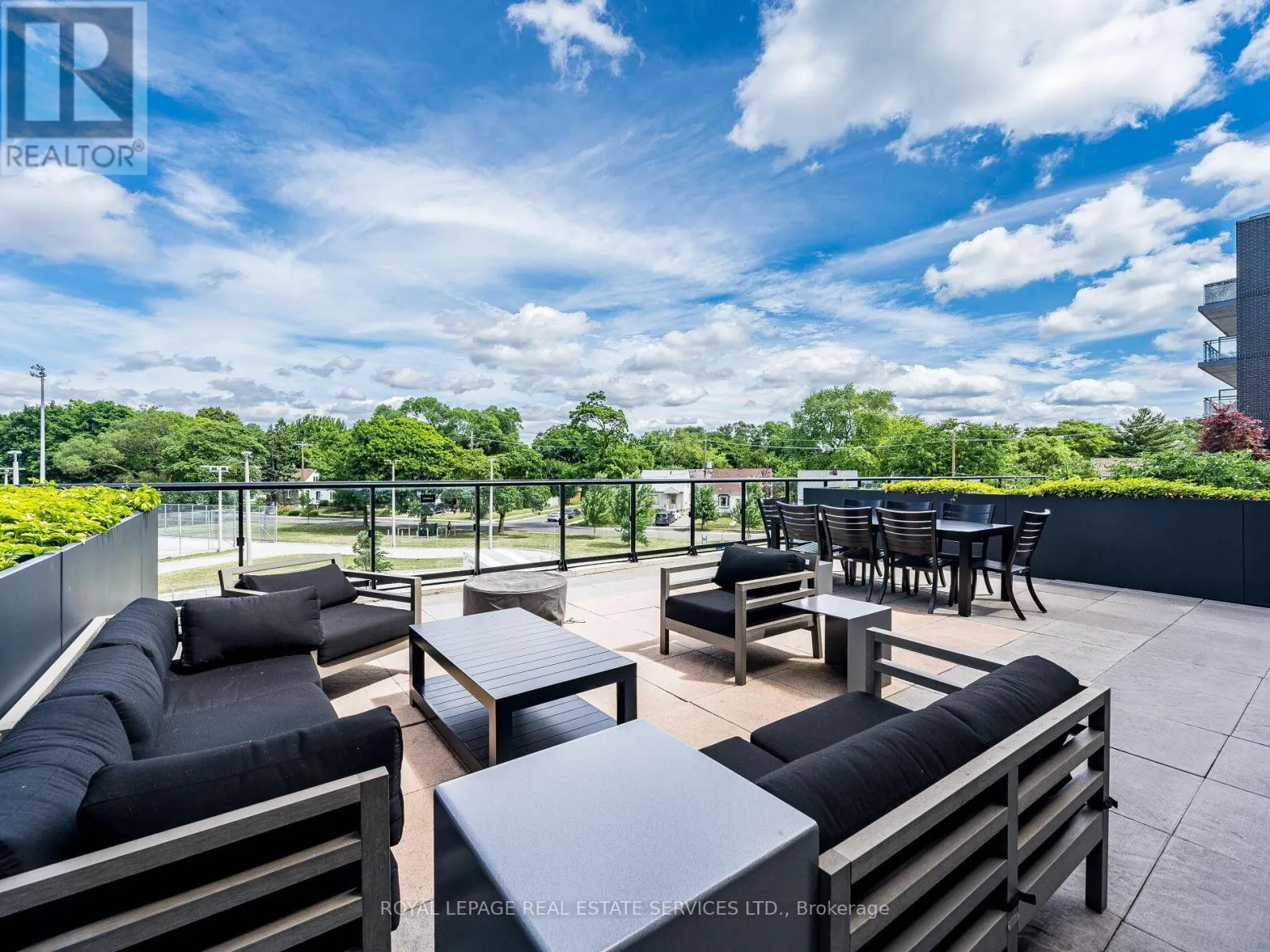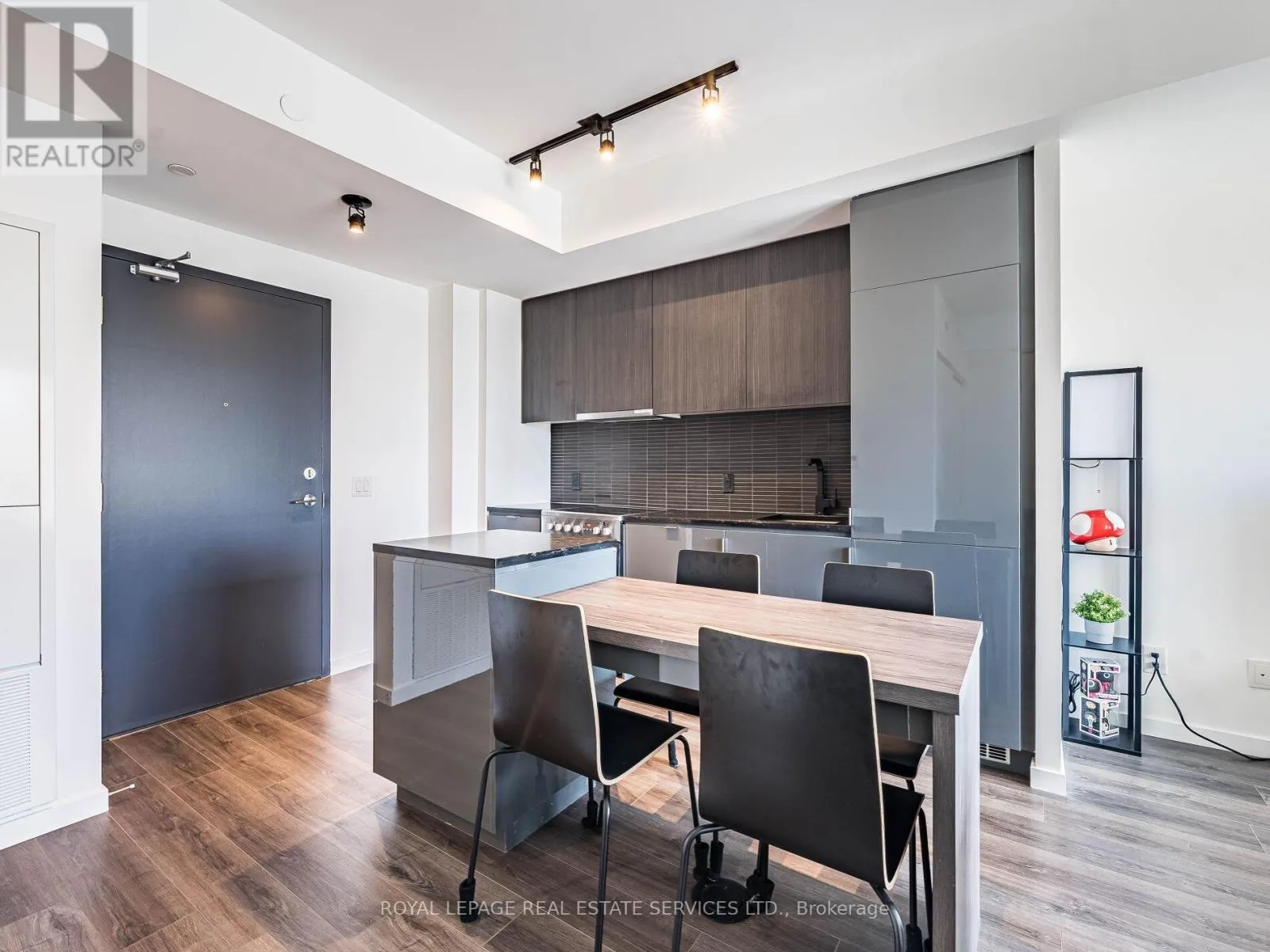 Cross Streets: Royal York and Queensway. ** Directions: East of Royal York North side of Queensway. This upgraded sun-filled 1 bedroom and den condo at Queensway Park Condos offers a functional open concept layout. With a walk score of 91 everything you need is steps away. (restaurants, shopping, parks). With easy access to Mimico GO station, 1 bus to Royal York subway station, and easy access to downtown Toronto so you can keep your car parked in your own parking space. Rarely offered in a 1 bedroom+den unit is aa storage locker. The inside of this condo suite offers a functional and practical layout, the kitchen with ample cupboard space, upgraded island offers additional storage and a dining area for 4. Open concept living space with walkout to private south facing balcony. Bedroom has a wall to wall closet. Complimenting the suite is the oversized den with closet, upgraded laminate floors throughout, blackout blinds, smooth finished ceiling, euro inspired appliances and an upgraded 4-piece bath. (id:27476)