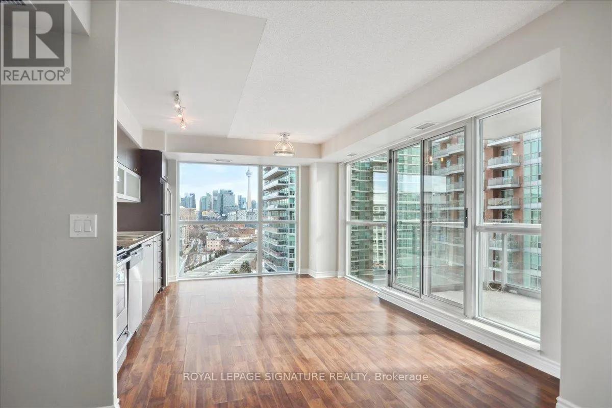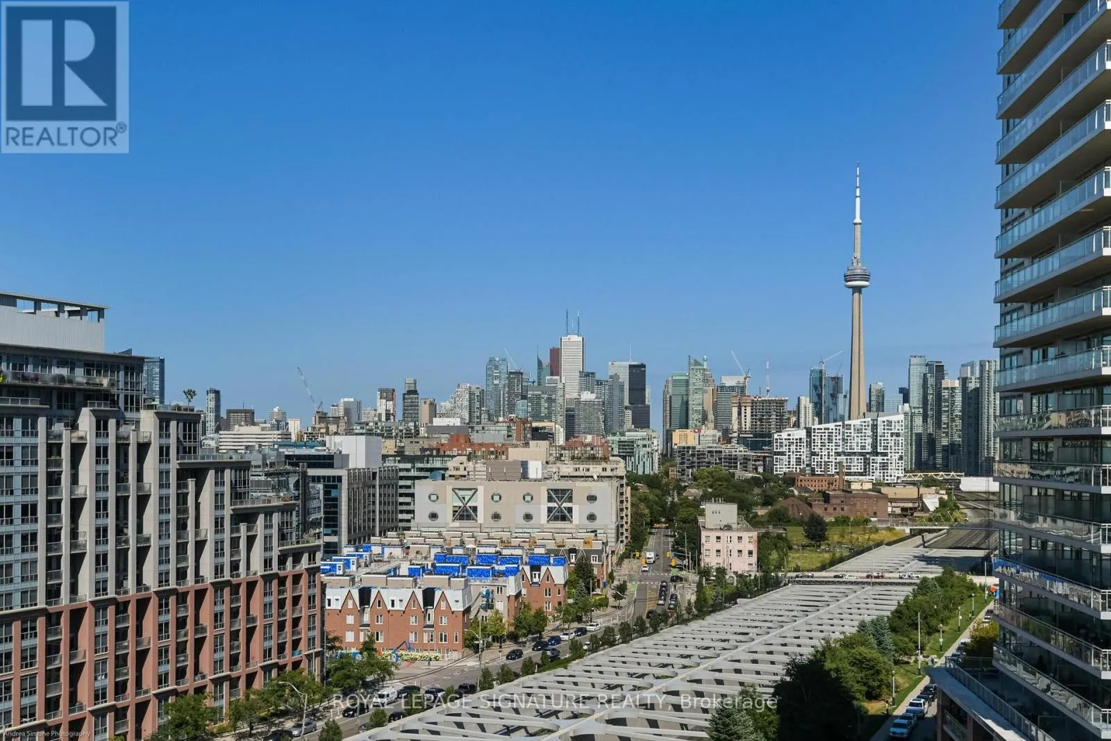 Cross Streets: East Liberty/Strachan. ** Directions: Waze. Incredible value for a true 2 bed suite! Prepare to be captivated by breathtaking, postcard-worthy views of both Lake Ontario and the iconic CN Tower from not one, but two expansive balconies, an exceptional feature that sets this corner unit apart. Inside, the thoughtfully designed split two-bedroom layout maximizes space with zero wasted square footage, offering both functionality and style. Each well-appointed bedroom boasts generous closet space and direct balcony access, creating a seamless blend of indoor-outdoor living. This residence also includes the added convenience of a storage locker, all nestled in the vibrant heart of Liberty Village. Floor-to-ceiling windows frame panoramic skyline vistas, flooding the living space with natural light and showcasing Toronto's dynamic cityscape. Smart Layout: The split-bedroom design ensures privacy and comfort, with both bedrooms featuring walk-outs to the balconies perfect for morning coffee or evening relaxation. Impeccable attention to detail is evident throughout, with high-end finishes that enhance the suite's modern aesthetic. Situated in the lively Liberty Village, you'll have premier access to trendy cafes, restaurants, boutiques, and green spaces, with the best of Toronto just steps from your door.This remarkable suite offers the perfect balance of cosmopolitan living and serene retreat. Don't miss the opportunity to call it your own. Enjoy World-Class Building Amenities: Indoor Pool, Fitness Centre, Guest Suites, Visitor Parking, Party Room, Terrace w/ BBQs & Much More. Convenient Pedestrian Bridge To King St West steps from the building. (id:27476)