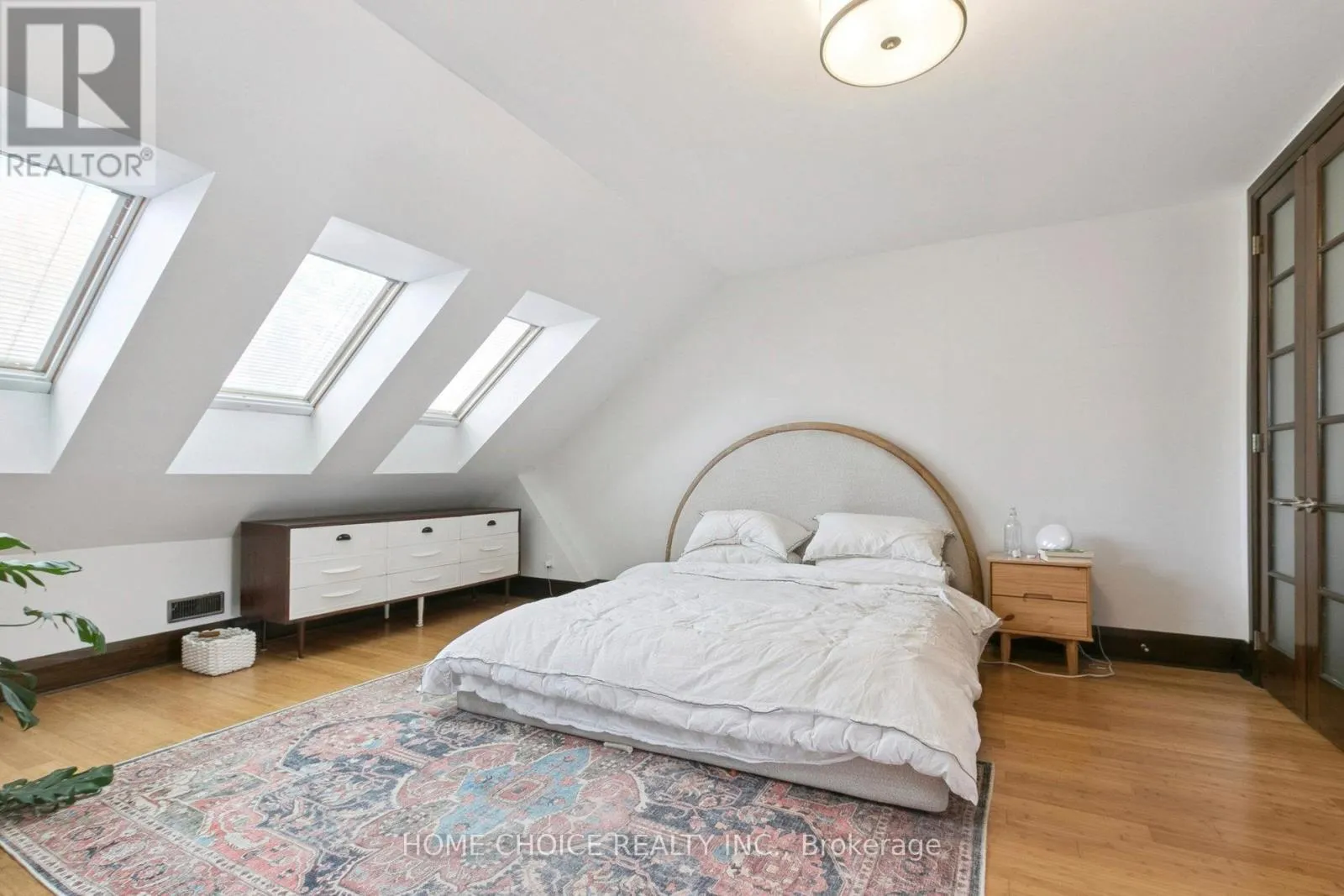 Gerrard and Coxwell Don't miss out on this amazing home with superior quality for the price. Complete infrastructure upgrades-gutted to the brick in 2000-insulated to R20, new vapour barrier, all new wiring, copper plumbing, new stacks, pot lights, real hardwood oak floors, chair height toilets, marble bathrooms, new windows & doors and stone entry steps. All roofs were replaced between 2021 and 2023-2 flat roofs, one sloped roof with new asphalt shingles. 9ft ceilings throughout- all 3 floors. Third floor primary suite with ensuite bathroom, small kitchen bar area with fridge added in 2016 with outdoor patio. Third floor ductless A/C added in 2017 for your comfort. New in 2000-14 floot high insulated double garage-protect your cars indoor for the winter or convert to an in-law suite, rental suite or your own studio or workspace with it's own 60 amp service already installed and still have 3 outdoor parking spots. Highly desirable neighbourhood-walk two blocks to groceries, drugstore, and multitudes of highly rated restaurants, bars and coffee shops. TTC at your door for an easy downtown commute. (id:27476)