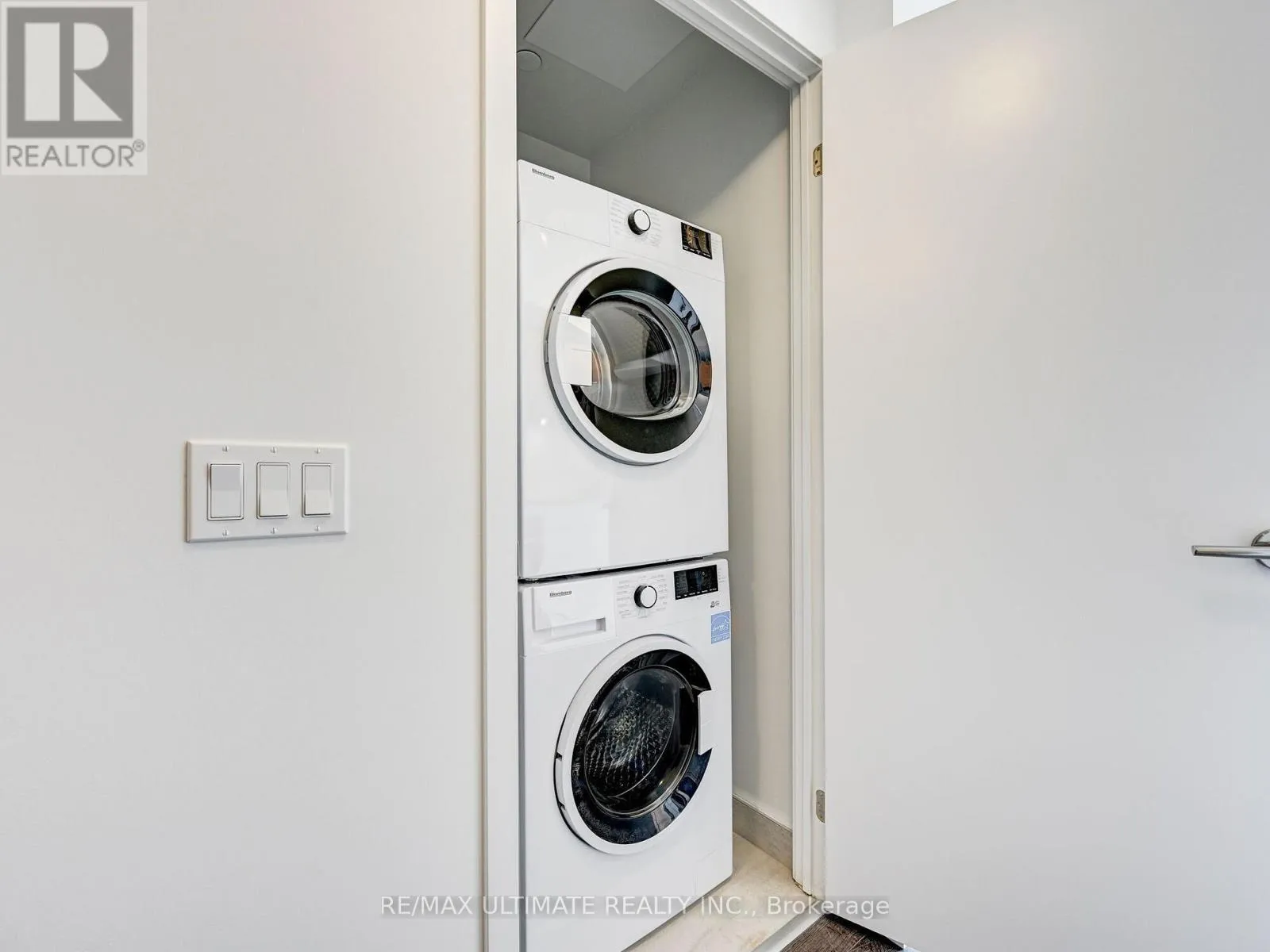 Don Mills & Lawrence COMMENTSREMARKS FOR CLIENTS (2000 characters)Amazing location at The Shops at Don Mills. This Gorgeous 1-bedroom plus Den with 1 Bath. is less than 2 years old !!! Modern kitchen with Miele appliances. Laminate flooring throughout this unit. Balcony off the living room and primary bedroom. East exposure. Stunning architecture by the renowned firm of Harin Pontarini and stylish interiors by award-winning Alessandro Munge set this residence apart as an inspiring landmark in the Don Mills community. Great shopping, restaurants, schools, parks, libraries, and community centers. The TTC is at your. doorstep with easy access to DVP and downtown Toronto. One Parking, one Locker included. (id:27476)