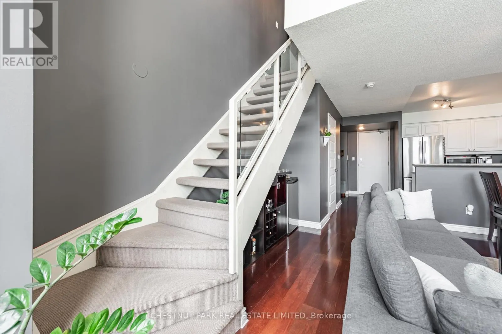 Cross Streets: Parklawn and Lakeshore. ** Directions: South of Gardiner. Check out this stunning 2-story loft available for rent, perfectly situated by the water. This unique space features an impressive open-concept living area with soaring 17-foot ceilings and a wall of expansive windows, flooding the room with natural light and offering panoramic views. A cozy gas fireplace enhances the ambiance. The floating staircase leads to a lofted master bedroom, complete with a 4-piece ensuite bathroom and a spacious walk-in closet. From the primary bedroom, you can look down on the grand living area below.This property comes with excellent amenities, including not one but two rooftop patios equipped with BBQ areas, perfect for entertaining and enjoying the outdoors. Additional features include a party room with a full kitchen, a games room, a well-equipped exercise room, a sauna, and a squash court. This exceptional loft is a fantastic living space in a prime location, ideal for those seeking a blend of luxury and convenience. (id:27476)