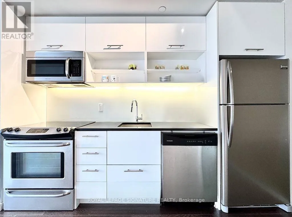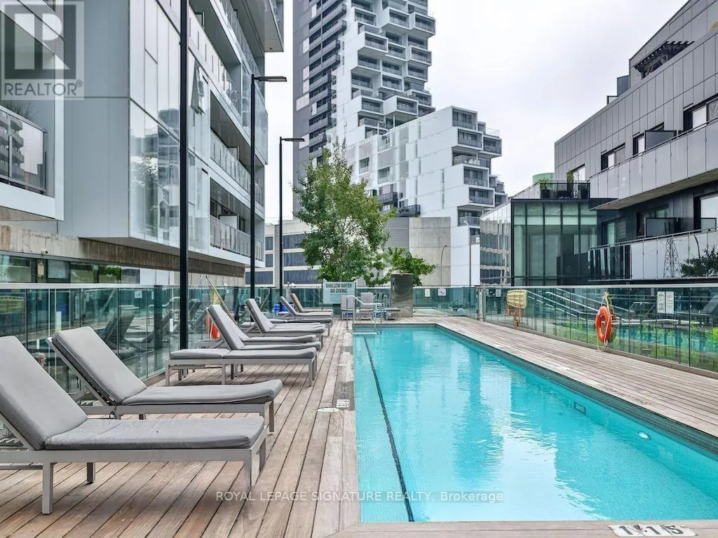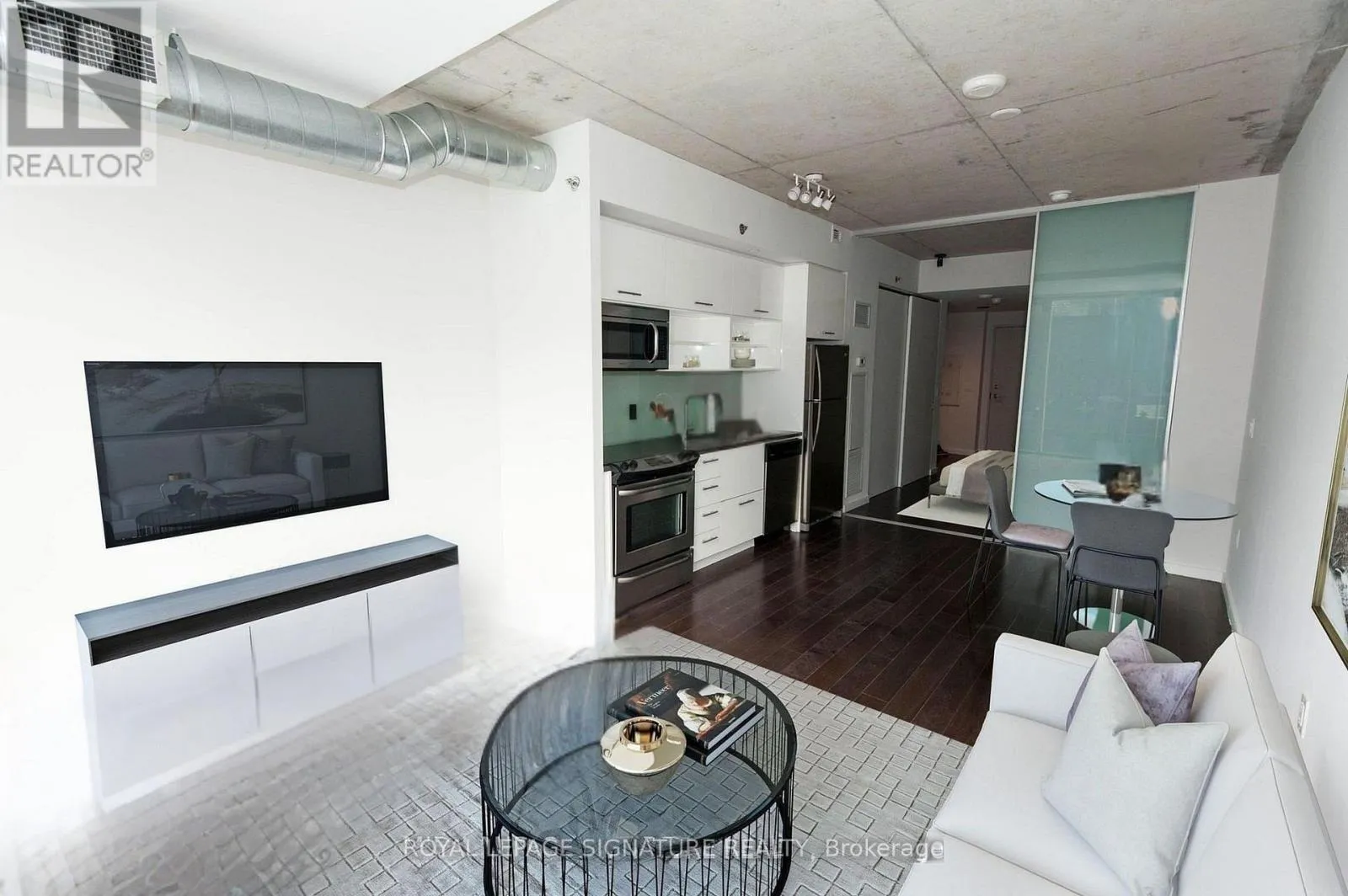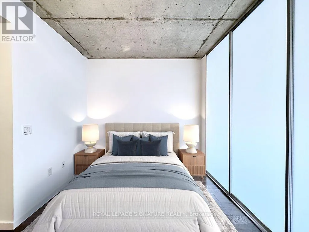 Cross Streets: King And River. ** Directions: West. This bright sun soaked open concept unit features 9ft exposed concrete ceilings, floor to ceiling windows with modern kitchen.The bedroom impresses with spacious generous closet, and convenient ensuite laundry. Recent building enhancements include a revitalized party room, updated hallways, and a brand-new sauna. Additional state-of-the-art amenities include an outdoor pool, gym, theatre, and 24-hour concierge service. Step outside, and you're moments from grocers, restaurants, cafes, boutique shops, and 24-hour transit with multiple TTC options at your doorstep. Stroll through the lively Distillery District, St. Lawrence Market, and the serene Corktown Common Park with its scenic riverfront trails: Martin Goodman Trail, Don Valley Trail and the Lower Don Trail. This unbeatable location masterfully blends urban vibrancy with rejuvenating green spaces. Welcome home. (id:27476)