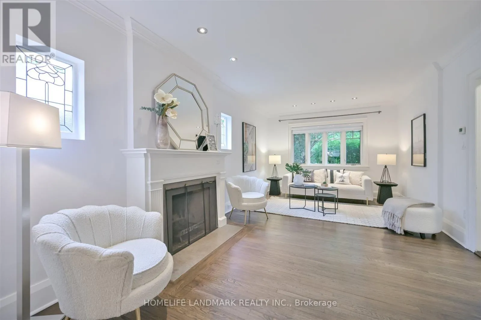Yonge & Eglinton Welcome to this fabulous family home in prime Allenby, perfectly situated between Avenue Road and Yonge Street. Offering over 2,300 sq. ft. of total living space, this residence combines timeless character with modern updates for todays lifestyle. A slate-stone entrance ensures easy upkeep, while fresh paint, solid oak hardwood floors (2024), and new casement windows create a warm and cohesive aesthetic throughout. The sun-filled living room is highlighted by four large casement windows and an original wood-burning fireplace. The elegant dining room features crown moulding and three pendant light fixtures, with an original exterior window preserved to draw natural light into the family room addition. The family room is a true sanctuary, designed with two skylights and expansive sliding Andersen doors that open seamlessly to a large deck an inviting extension of the living space in spring, summer, and fall. The lower patio, surrounded by mature trees and a full privacy fence, provides a secluded retreat with plenty of room for outdoor entertaining. The updated kitchen showcases custom cabinetry, new quartz countertops (2024), quartz backsplash (2024), and premium stainless steel appliances. Upstairs, the spacious primary bedroom offers a charming bay window overlooking the front garden. The lower level features a versatile recreation/media room or home office, complemented by a newly renovated 3-piece bathroom (2024).Birdsall Avenue is a quiet residential street with minimal traffic and ample street parking. Enjoy easy access to shops along Avenue Road and Yonge Street, tranquil strolls in nearby Lytton Sunken Gardens, and top-rated schools including Allenby Jr. PS, Glenview Sr. PS, and St. Clements School. Blending charm, functionality, and an unbeatable location, this Allenby gem is the perfect place to call home. (id:27476)
