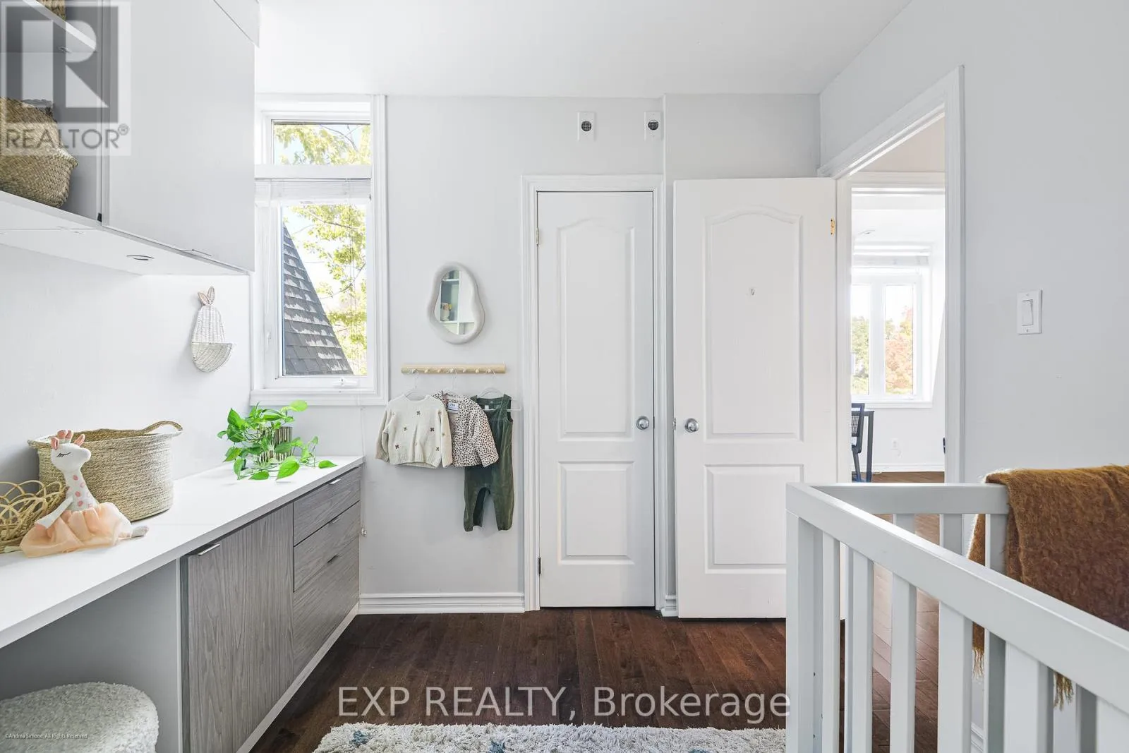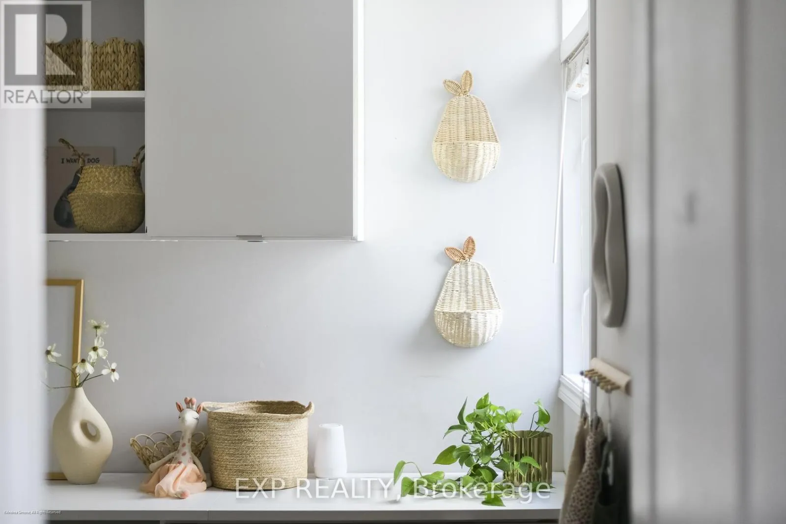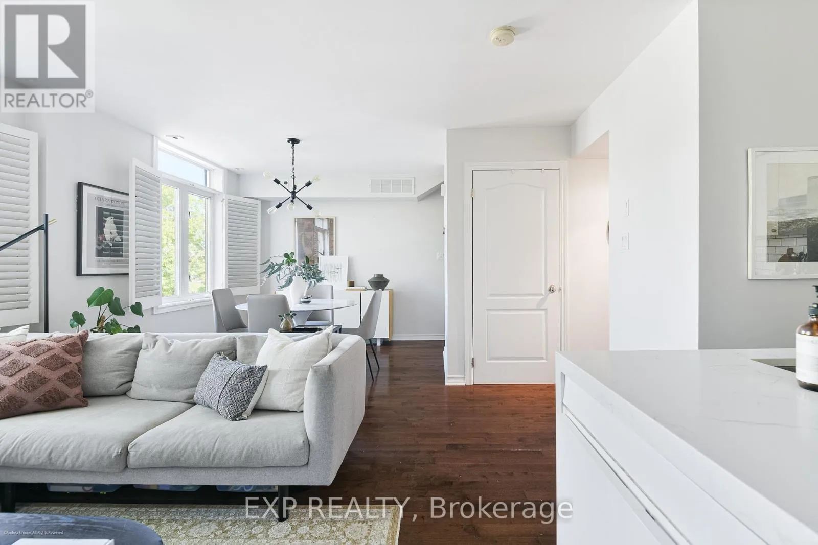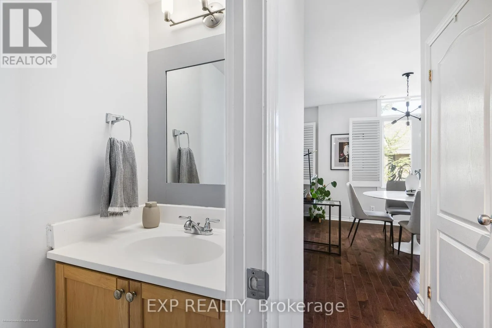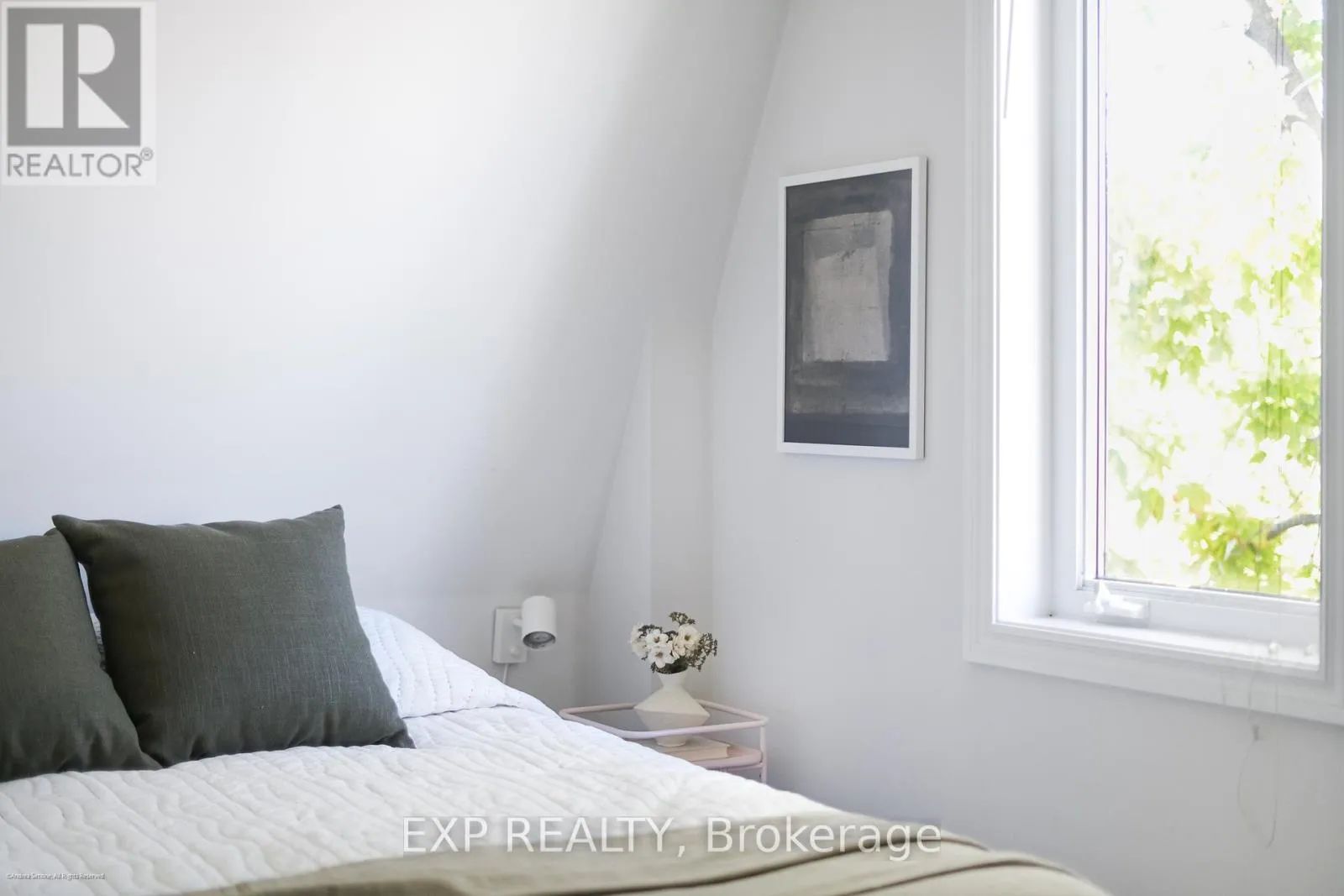 King & Strachan Tucked along a quiet, tree-lined street just steps from Trinity Bellwoods and Queen West one of Toronto's most vibrant and coveted corridors this beautifully designed two-bedroom condo townhome delivers an effortless blend of comfort, style, and ease. Behind its classic red-brick facade lies a space that feels more like a home than a condo. Thoughtfully laid out across multiple levels, its perfect for a couple or first-time buyer seeking room to grow. The main floor offers open-concept living, dining, and kitchen areas with a convenient powder room ideal for entertaining or unwinding. Oversized windows bathe the space in natural light, while the kitchens two-tone cabinetry (white uppers and deep blue lowers), Caesarstone countertops, and subway tile backsplash lend a touch of modern refinement. Upstairs, you'll find a bright four-piece bath and two generous bedrooms. The second bedroom, currently a charming nursery with built-ins, could easily serve as a guest room or home office. The primary suite offers ample closet space and a peaceful, sunlit retreat. On the top floor, a spacious rooftop terrace provides a rare urban escape expansive enough for lounging, dining, or simply enjoying sunset cocktails under the stars, surrounded by treetop views. Just moments from Trinity Bellwoods Park and some of the city's most celebrated cafes, restaurants, and shops, yet quietly tucked within a family-friendly pocket, this home strikes a perfect balance between urban energy and neighbourhood calm. A rare offering of scale, character, and setting city living, beautifully composed. (id:27476)