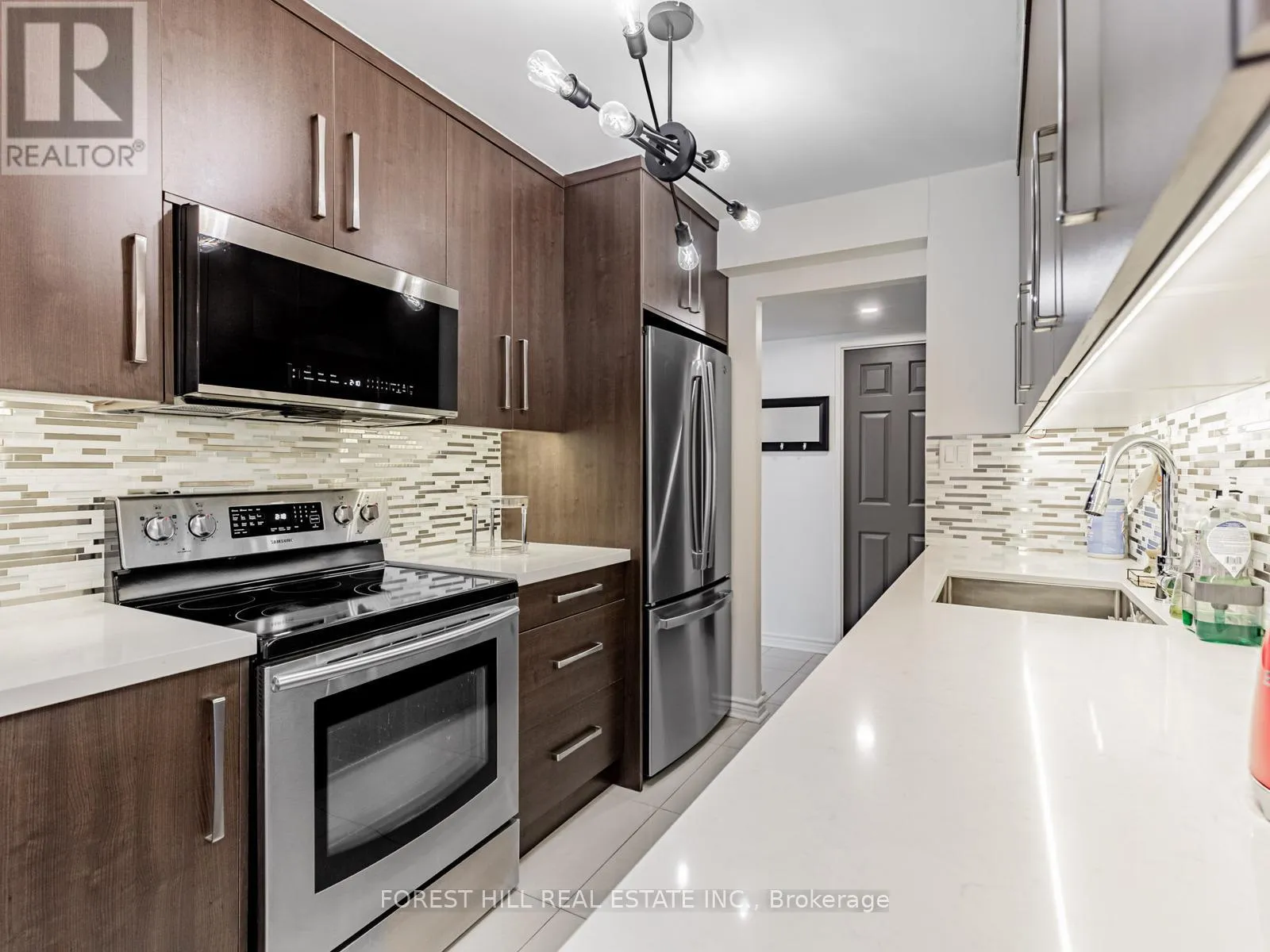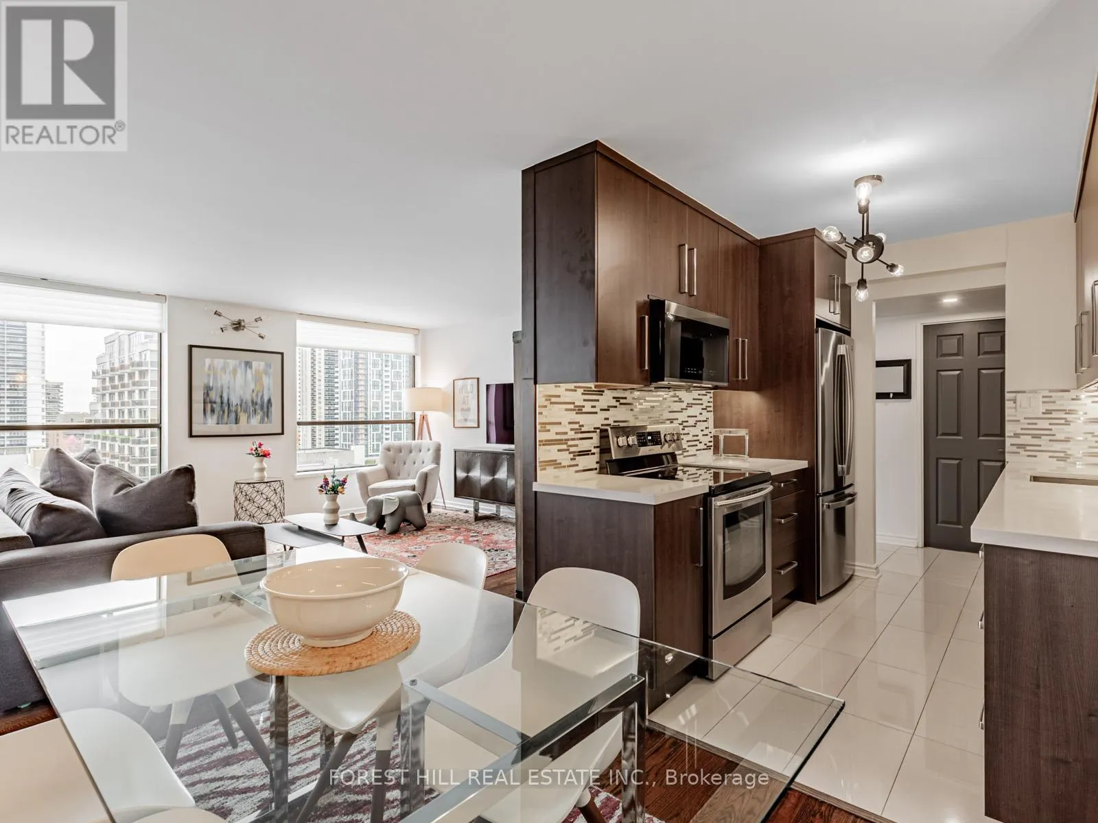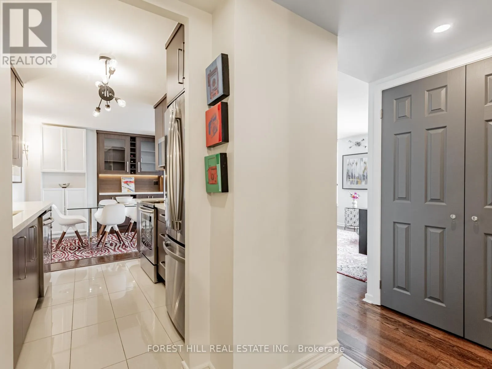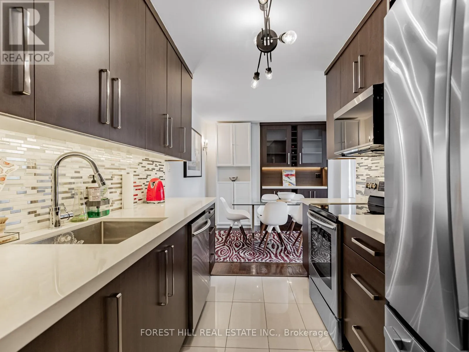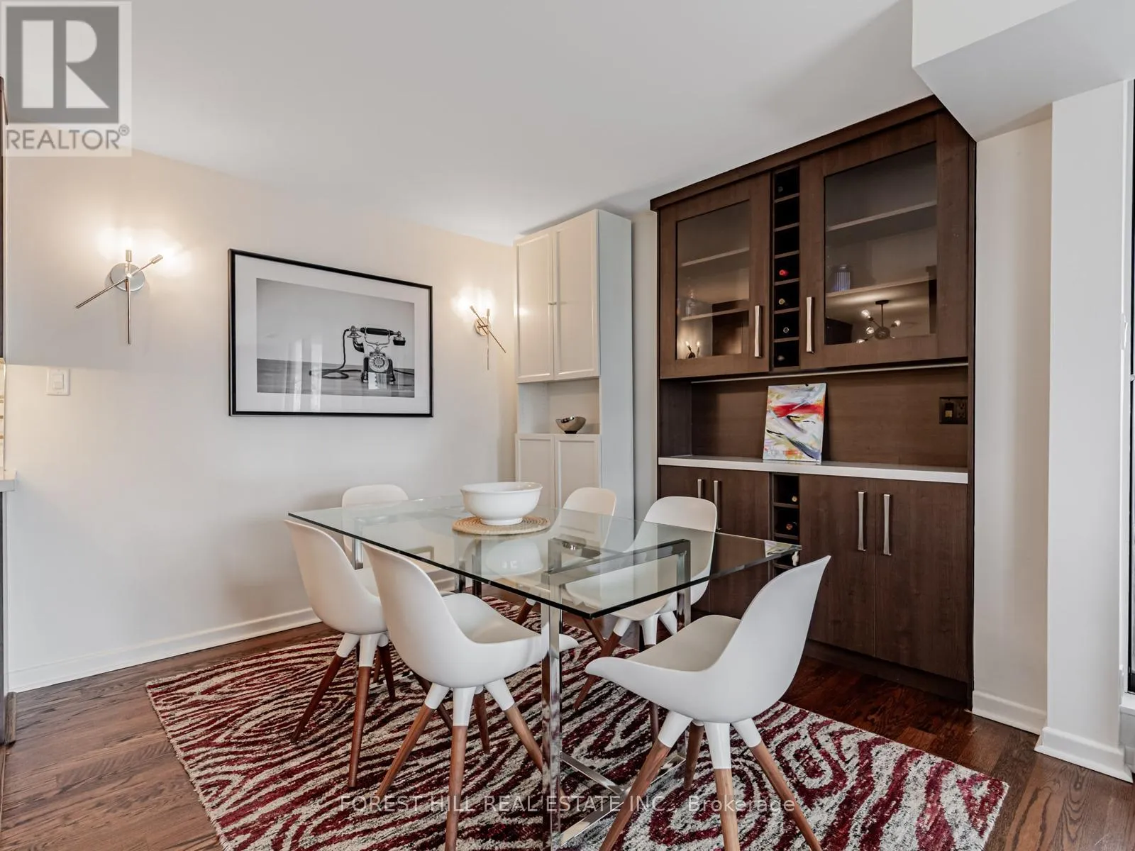 Cross Streets: Yonge St/St Clair Ave W. ** Directions: South side of St. Clair Parking on driveway at building on west side. Experience luxury urban living in this beautifully renovated approximately 1000 sq.ft. condo, perfectly situated in one of Toronto's most desirable neighbourhoods at Yonge and St Clair West. This spacious suite features an open-concept floor plan with elegant finishes, hardwood flooring, and large windows that flood the space with natural light. The modern chef's kitchen is equipped with Caesarstone countertops, custom cabinetry, and stainless steel appliances, making it both stylish and functional. The generous living and dining areas provide the perfect setting for entertaining or relaxing at home. The primary bedroom offers a peaceful retreat with ample closet space, while the spa-inspired bathroom includes designer fixtures and a sleek, contemporary design. Additional highlights include in-suite laundry, a private balcony, and premium building amenities such as a gym, rooftop terrace, and 24 hour concierge. Located just steps from transit, shops, dining, and parks, this condo offers the perfect balance of comfort and convenience in the heart of the city. Monthly maintenance includes all utilities and parking. (id:27476)
