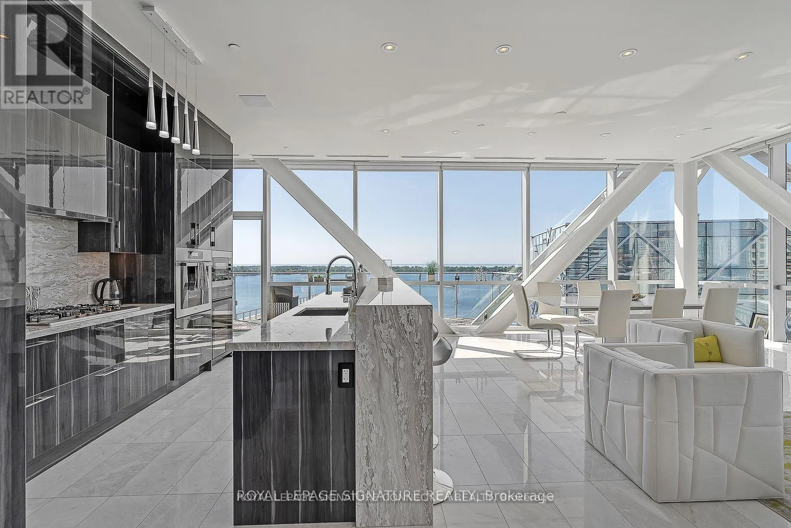 Yonge & Queens Quay East Fully Furnished. Live in Style Where The Pulses of the City Meets the Waterfront. Rare Opportunity to Live on the Bridge At Pier 27 in This Magnificent Corner Penthouse. Wall to Wall Floor to ceiling windows offers a 240 degree view of the Waterfront and City. Perfect floor plan for entertaining. Marble flooring through out, Miele Appliances and custom chef's kitchen. 2 Bedroom Plus Den with 10 Ft. Ceilings. Split floor plan offers tons of privacy with each bedroom equipped with its owner en-suite washroom. Tons of storage and built-Ins through the suite. State of the Art Amenities with an Indoor and outdoor pool, 24 Security, guest suites, gym, party room, Theatre, sauna and steam room and parking. (id:27476)