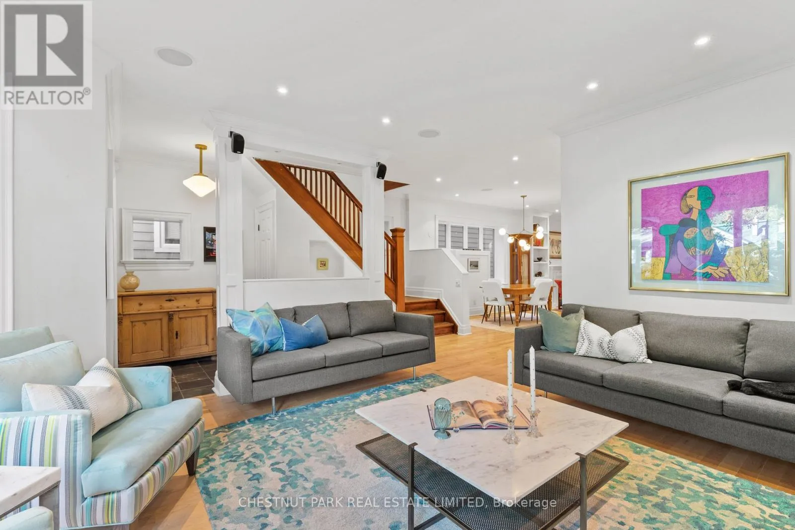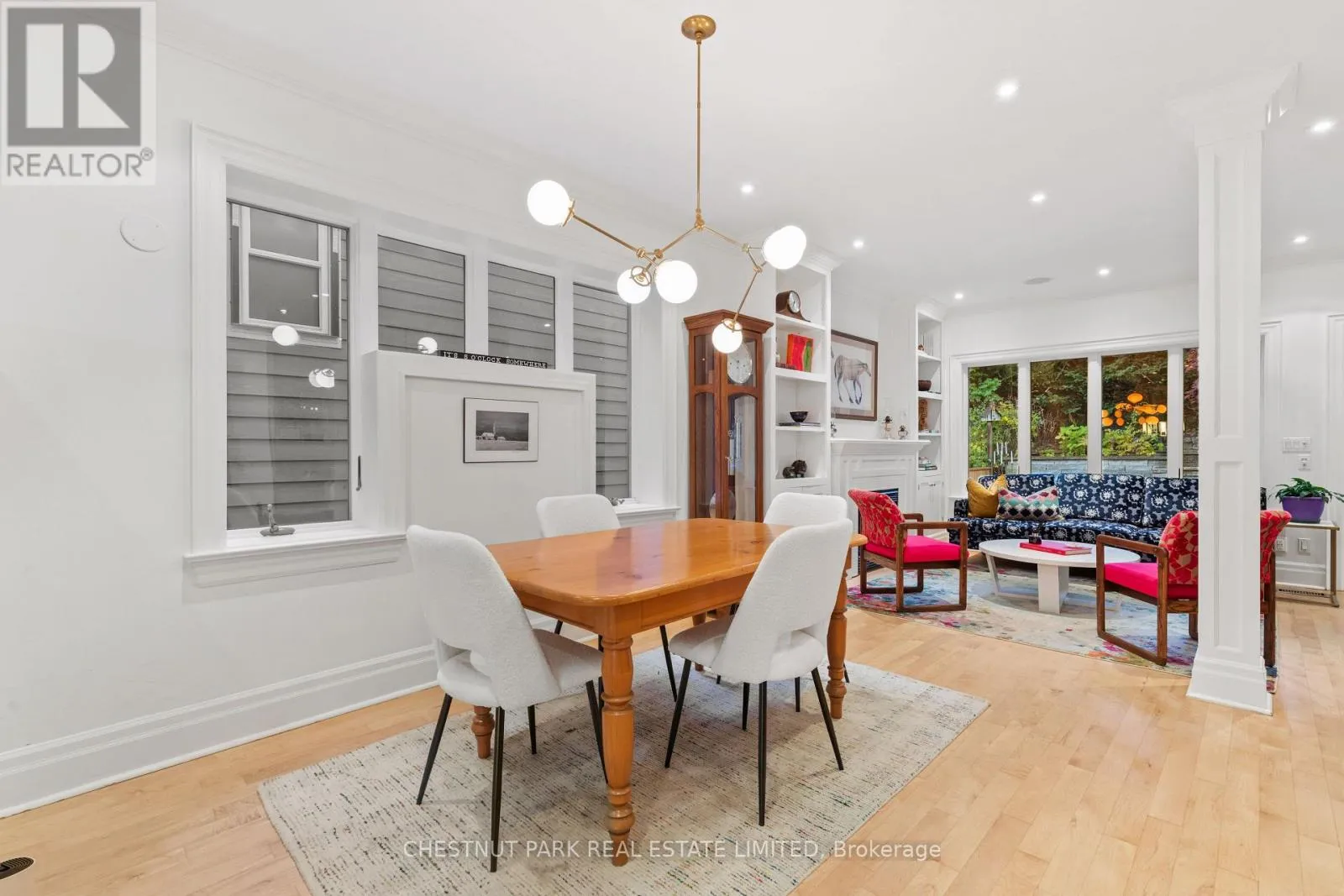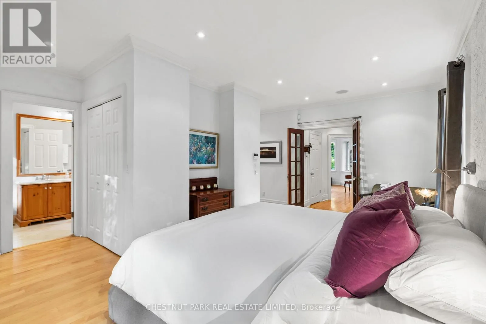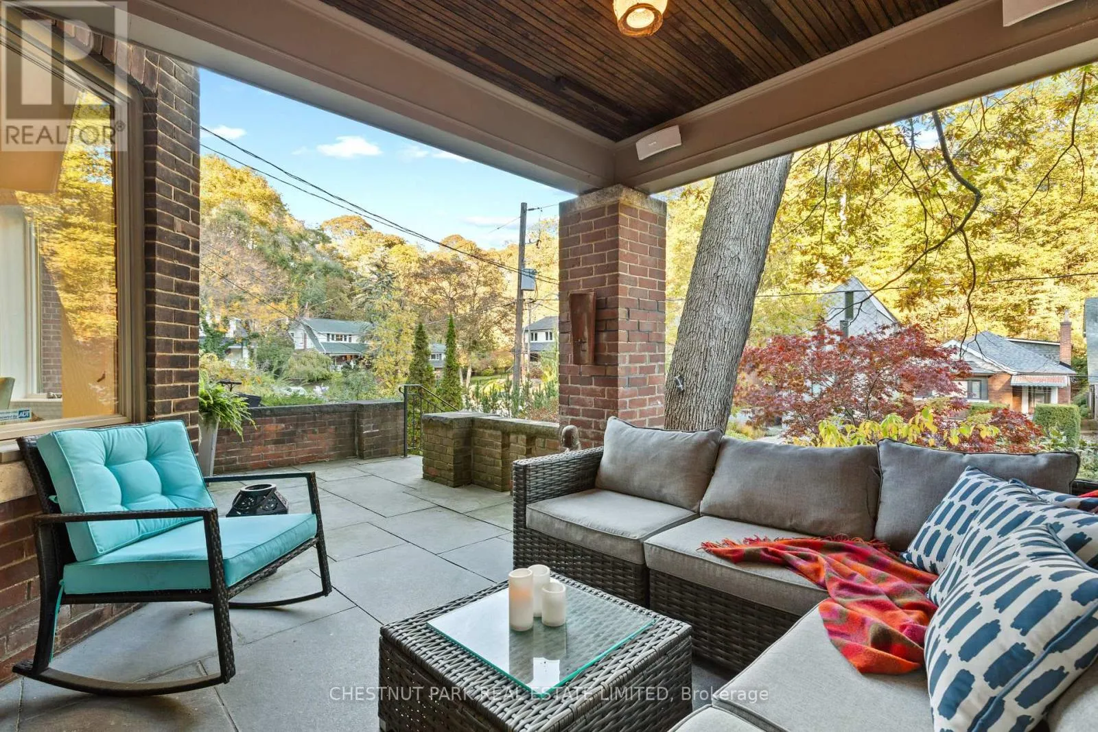 Queen Street East/Neville Park Blvd Perched high among the trees in Toronto's prestigious Beaches neighbourhood, this stunning four bedroom, three bathroom detached residence offers more than 2,648 square feet of beautifully designed living space. Perfectly situated in a serene and private setting, the home is just steps from transit, boutique shops, acclaimed restaurants and the vibrant Balmy Beach Park and Club. Families will appreciate the highly sought-after school catchment, which includes Balmy Beach and St. Denis Elementary Schools, as well as Malvern Collegiate and Neil McNeil High School. Parking is available directly outside the home for added convenience. A charming front porch leads into a bright and inviting interior featuring a formal living room with custom built-ins, a decorative fireplace and expansive windows that bring in abundant natural light. Toward the rear, the open concept kitchen, dining area and family room provide an ideal setting for everyday living and entertaining, opening to a fenced, interlocked private backyard surrounded by lush greenery. Upstairs, the expansive primary suite offers a large walk-in closet, three additional closets, a luxurious five-piece ensuite and a private balcony. A bright second room on this level, perfect as a home office or additional bedroom, features large windows, custom built-in shelving and a decorative fireplace. The third floor includes two generously sized bedrooms connected by a convenient Jack and Jill bathroom. The lower level offers a side entrance and a partially finished area suited for a home gym or recreation space, along with abundant storage including a pantry with wine area, bike storage, a recreational gear room and a dedicated workshop with a personal workbench. This hidden gem blends privacy, functionality and timeless charm, offering a rare leasing opportunity in one of Toronto's most desirable communities. (id:27476)