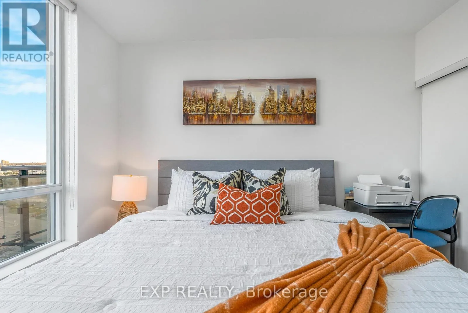 Cross Streets: Highway 27/ Rexdale. ** Directions: Rexdale Blvd/ Queens Plate. Unparalleled panoramic views from the city skyline to the CN Tower await in this 1-bedroom plus den (ideal as a 2nd bedroom or office) suite at the prestigious The Lexington Condominium. With soaring up to 10-foot ceilings, every day is bathed in natural light and features lower-penthouse-style volume. Situated directly across from Woodbine Mall and Woodbine Racetrack and just minutes to Humber College, Etobicoke General Hospital, and Pearson International Airport, the home offers seamless highway access via Hwy 27, 427, 409, 401 & 407. Future transit enhancements add sweet value: the upcoming Finch LRT and a planned GO Station will be steps away. This rare offering includes one parking space, one locker, stainless steel appliances, in-suite laundry, fresh paint, and vinyl flooring, combining for a luxurious lifestyle in an unbeatable location. (id:27476)