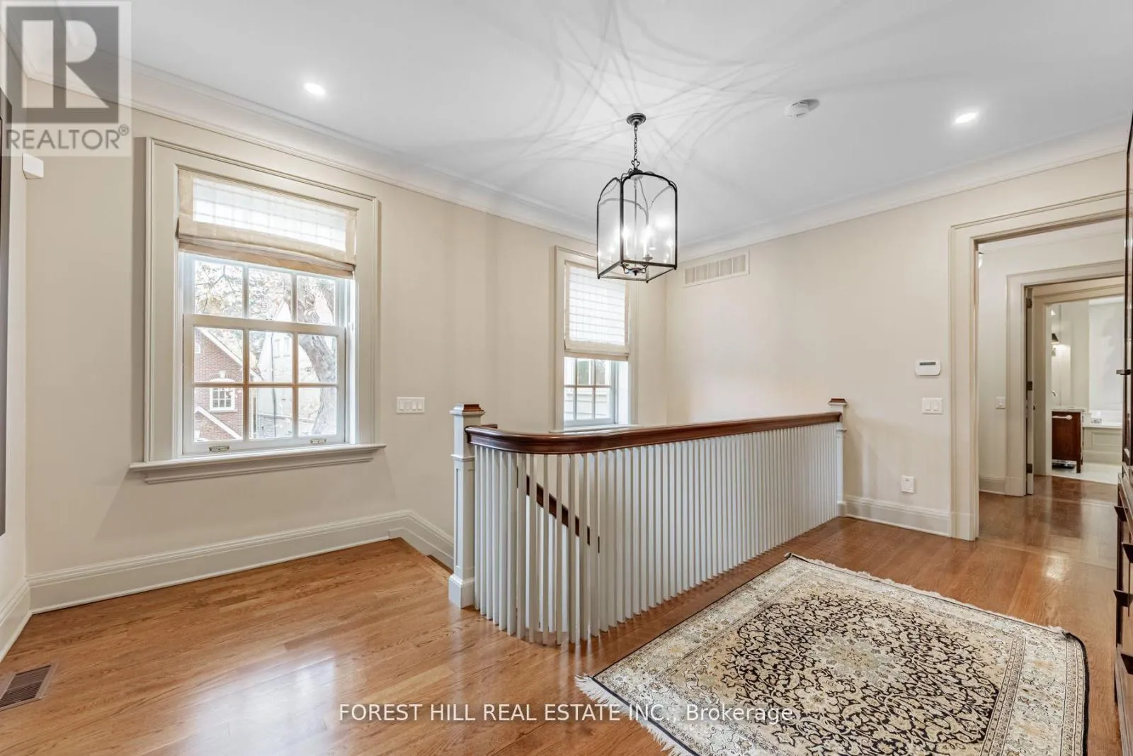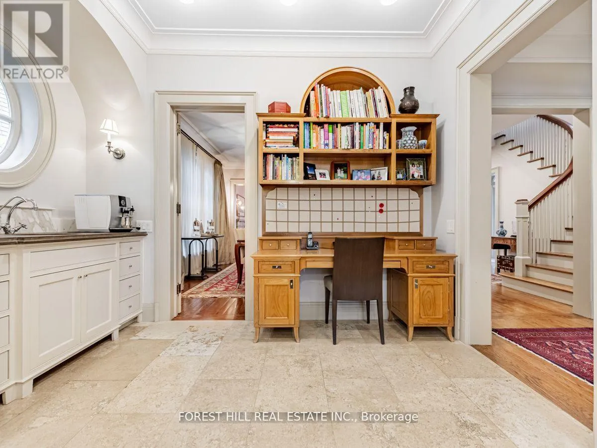 Spadina Rd This exceptional residence, custom-designed in 2000 by the esteemed firm of Katharine Newman and Peter Cebulak, exemplifies luxurious living with the finest materials throughout. Lot pies out to 60 feet in rear. The home begins with a vestibule featuring an armoire closet and a chic two-piece powder room. The expansive layout flows effortlessly from the large foyer into spacious principal rooms, creating an airy and inviting atmosphere. The gourmet kitchen offers a coffee station, built-in desk, oversized island, and a bright breakfast room with French doors opening to an oversized terrace, perfect for al fresco dining or quiet relaxation. The adjacent family room features a fireplace, custom shelving, and walk-out access to the stone terrace. Separate living and dining rooms provide additional versatility. A mudroom with a separate entrance and ample closet space completes the main floor, which boasts 9'6" ceilings. Upstairs, the south-facing primary suite offers a walk-in closet and spa-like ensuite with dual vanities. Three additional generously sized bedrooms with abundant closet space and large windows, along with beautifully appointed bathrooms, complete this level. The lower level features heated floors, a large great room with built-in bookshelves and a wall-mounted TV, a gym/office with built-in desks, and a fifth bedroom with a large closet. A fully-finished laundry room with ample storage, a walk-in wine cellar, and an additional four-piece bath provide exceptional convenience. The spectacular stone terrace leads to professionally landscaped gardens with a stone BBQ area. The detached stone garage, built in 2010, complements the homes exterior and features a heated driveway. Ideally located within walking distance to the best private schools (BSS and UCC, )as well as shops, restaurants, transit, and places of worship. This home offers the perfect blend of luxury, convenience, and style! (id:27476)