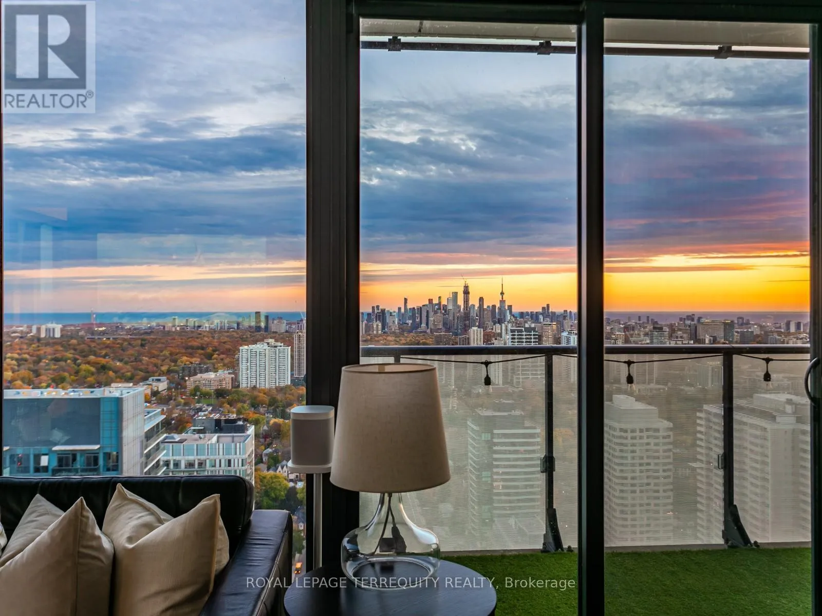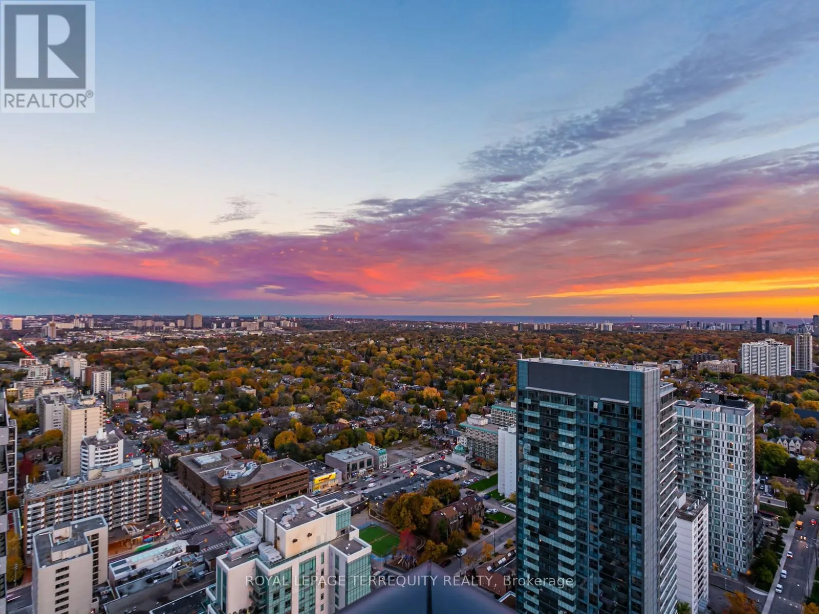 Mt Pleasant/Eglinton Ave E Welcome to this spectacular corner suite, where floor-to-ceiling windows flood the space with natural light and frame unobstructed, panoramic views of the water, city skyline, and unforgettable sunsets. From morning to night, every glance outside feels like a piece of art. This unit has been tastefully finished throughout, offering a seamless blend of modern elegance and comfort. The open-concept layout is perfect for entertaining or relaxing, while the finishes create a sophisticated, move-in-ready atmosphere. Every detail has been thoughtfully curated to maximize space, light, and livability. Set within one of the city's most desirable and amenity-rich buildings, residents enjoy access to an impressive collection of lifestyle features - including a state-of-the-art fitness centre, outdoor pool, hot tub, and a dedicated pet spa. The 8th-floor outdoor patio offers an ideal space to unwind or entertain with friends while taking in the views. "The Cave," a standout feature of the building, provides the ultimate entertainment experience - complete with a billiards lounge, golf simulator, and private bar. Whether you're hosting a night in or looking to relax after a long day, this space truly elevates the meaning of modern condo living. Enjoy luxury, lifestyle, and location - all in one breathtaking corner unit with views that never get old. (id:27476)