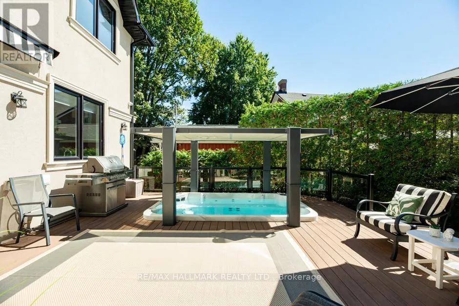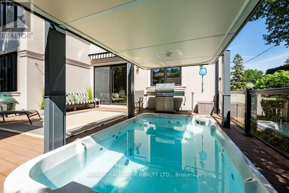 South Of Kingston / Midland Welcome to this breathtaking custom-built residence, featuring a total of 4000 sq ft of living nestled in the scenic Bluffs and designed with timeless elegance and modern comfort in mind. Built in 2017, this 4+1 bedroom, 5-bathroom home offers a unique blend of architectural character and luxurious finishes that make it truly one of a kind. Step inside and be greeted by sun-filled, open-concept living spaces featuring oak hardwood floors, a cozy fireplace, crown moulding, and custom cabinetry throughout. The gourmet kitchen is a chef's dream, complete with high-end appliances, stylish countertops, and a classic backsplash, perfect for preparing meals and creating memories. Upstairs, the spacious primary suite is a light-filled retreat, offering large windows and a serene atmosphere. The spa-inspired 5-piece ensuite is the perfect place to unwind, featuring elegant fixtures and calming finishes. The finished lower level includes a generous recreation room with custom built-ins, a second fireplace, and a wet bar ideal for entertaining. A side entrance leads to an additional bedroom and 3-piece bath, providing privacy and comfort for guests or extended family. Step outside to your own private backyard oasis, beautifully landscaped and designed for year-round enjoyment. The insulated swim spa and tranquil setting create the ultimate space to relax, host gatherings, or simply enjoy the outdoors in peace. Don't miss this rare opportunity to own a truly exceptional home in one of the city's most picturesque neighbourhoods. (id:27476)