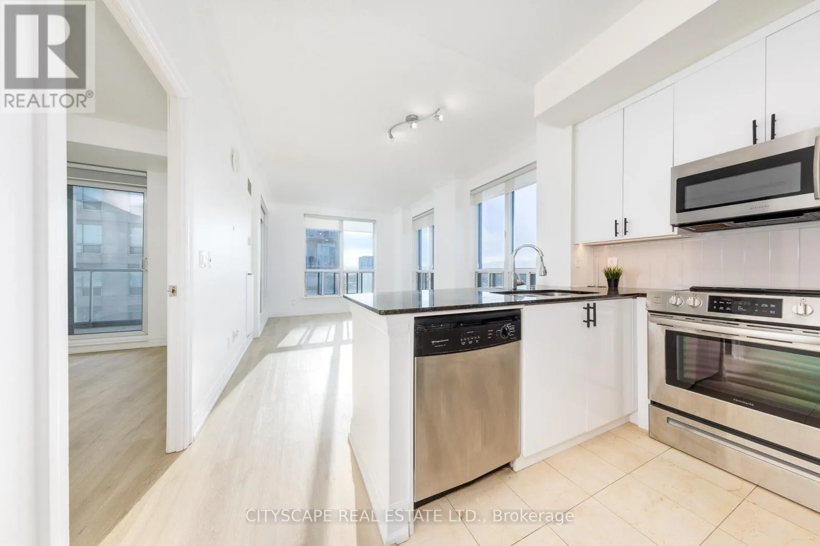 Cross Streets: Lake Shore Blvd / Marine Parade Dr. ** Directions: Lake Shore Blvd / Park Lawn. Welcome to Luxurious Lakeside Living at The Waterford Tower! Just renovated 2-bedroom, 2-bathroom corner suite with stunning Lake Ontario and Toronto skyline views. Features a brand-new modern kitchen with stainless steel appliances and breakfast bar, 9-ft ceilings, and balcony/terrace with gas BBQ hook-up. Only 7 units per floor in this quiet, upscale building. Enjoy indoor pool, gym, rooftop patio, and party room. Prime Humber Bay waterfront location surrounded by parks, trails, cafés, and restaurants. Steps to transit and minutes to downtown. Includes parking and locker. (id:27476)